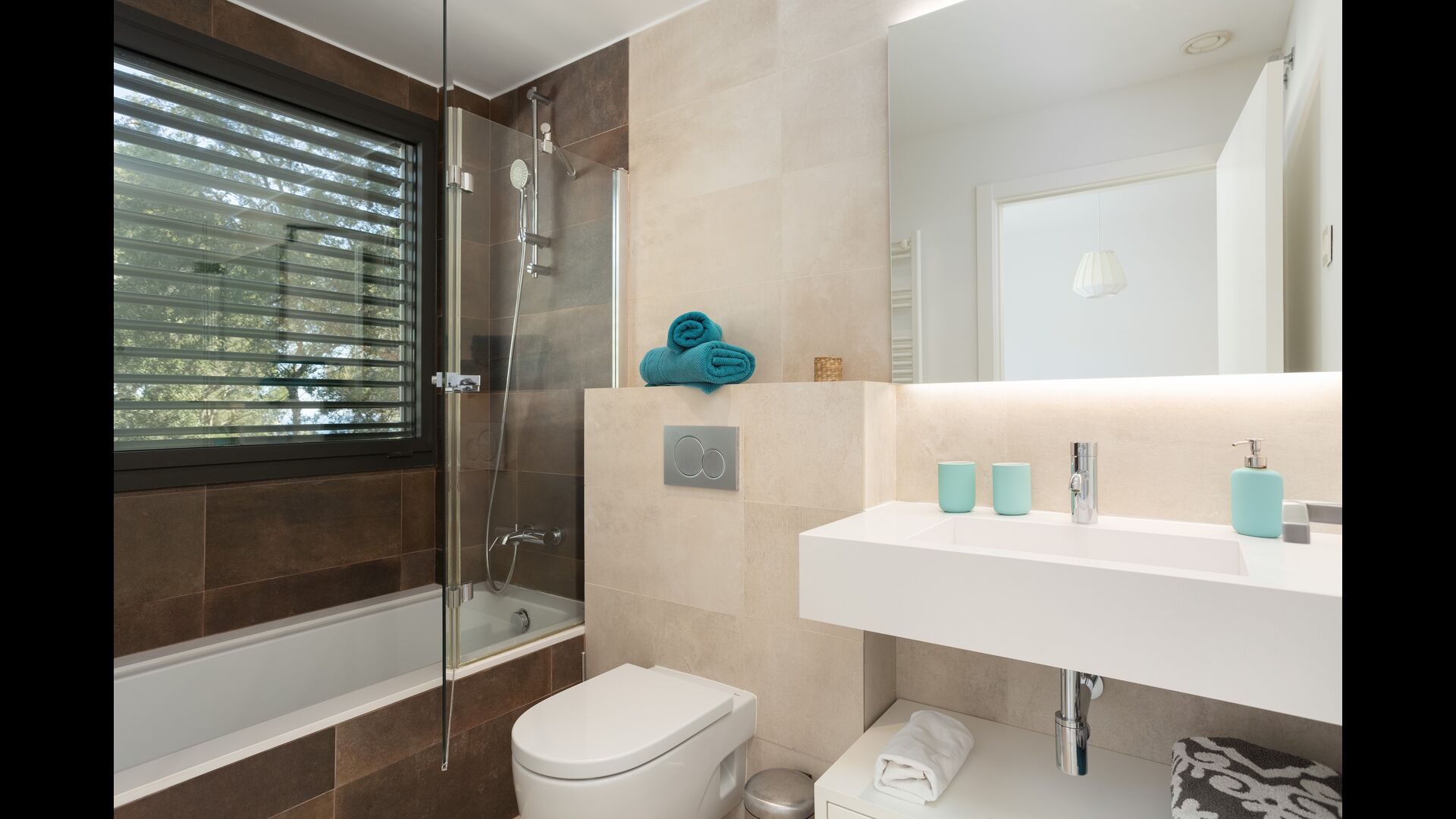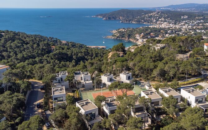 Ce complexe de villas modernes est situé sur les rochers juste au-dessus de Llafranc, et offre en plus un emplacement parfait, une terrasse et un jardin privés ainsi qu'une piscine et un court de tennis partagés (rappelez-vous les raquettes et les balles !!).