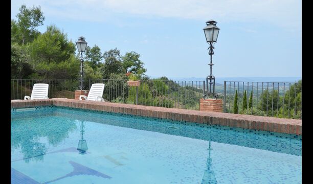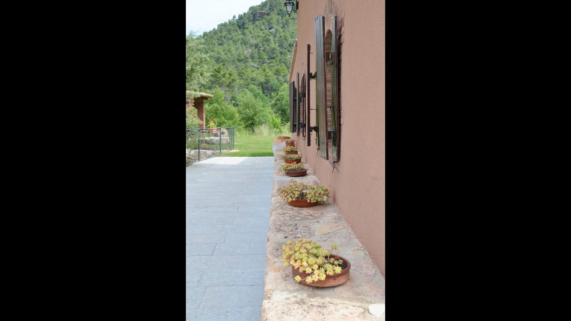 La maison a été récemment réformée et est maintenant de haut niveau. D'un côté de la maison, vous avez la piscine et une table ronde devant la maison avec vue sur le paysage.