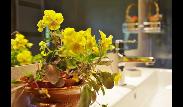 < strong>Chambre 3 : Chambre double avec salle de bain privée et vue sur le jardin.