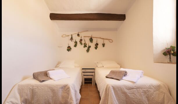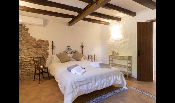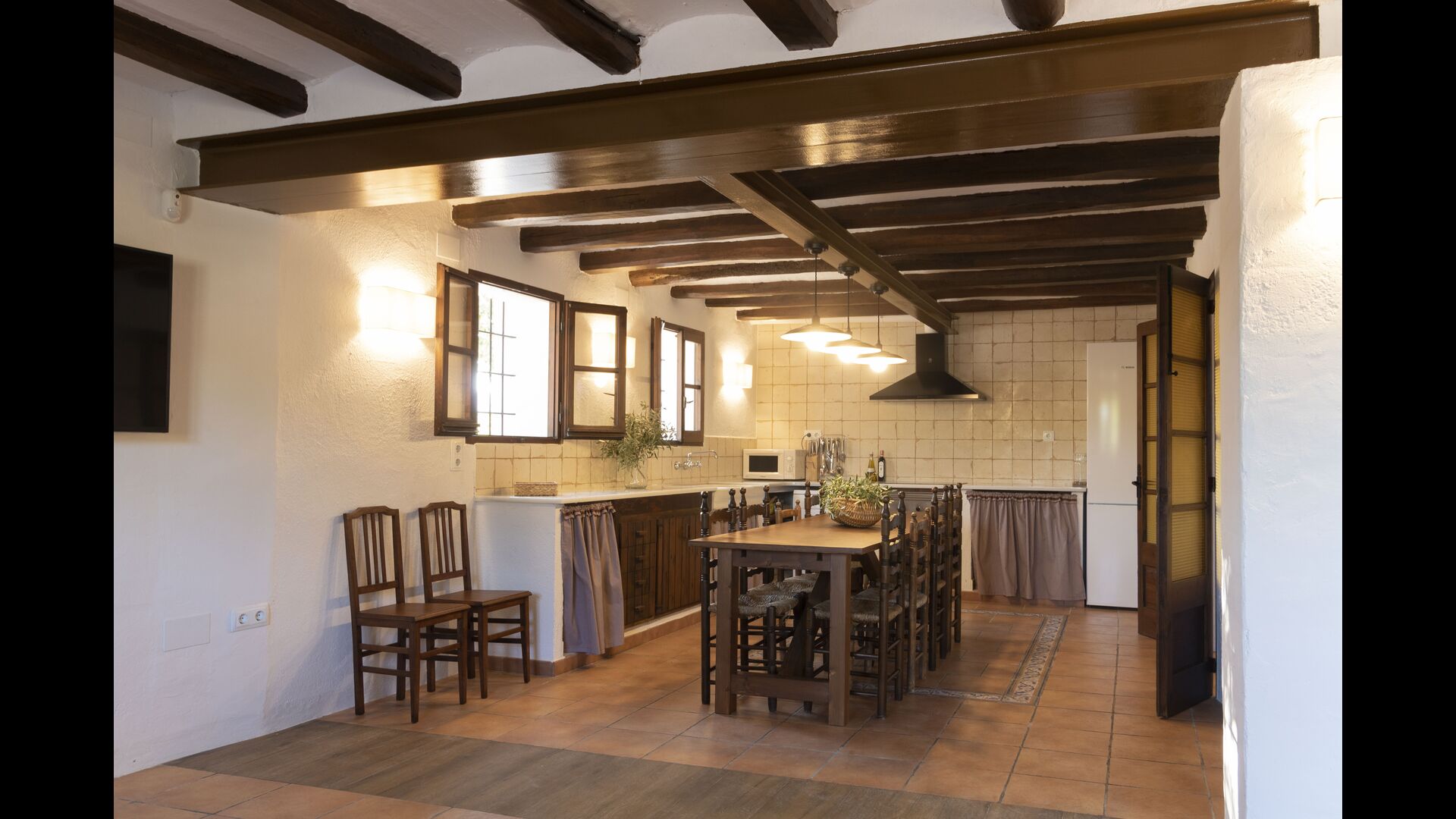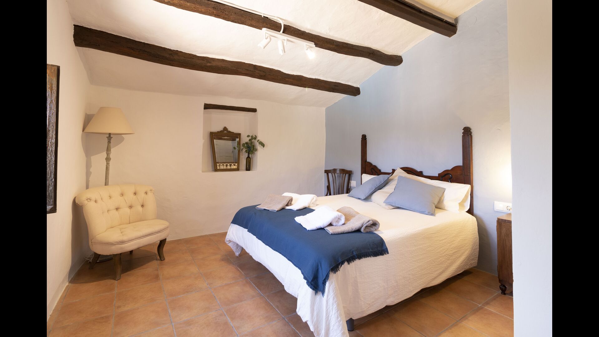 La maison dispose d'une terrasse couverte, idéale pour le petit-déjeuner et le dîner au bord des eaux doucement riantes de la piscine, elle-même assez grande et dotée de quelques chaises longues. Que vous vous rafraîchissiez dans la piscine, que vous vous détendiez sur les chaises longues ou que vous dégustiez des tapas sur la terrasse extérieure, vous pourrez contempler la merveilleuse campagne catalane . Une partie de la raison pour laquelle Casa Moma est si merveilleusement isolée sont les 6 hectares de forêt et de caroubiers, et 3 hectares</strong > des vignobles et des oliveraies qui entourent la propriété.