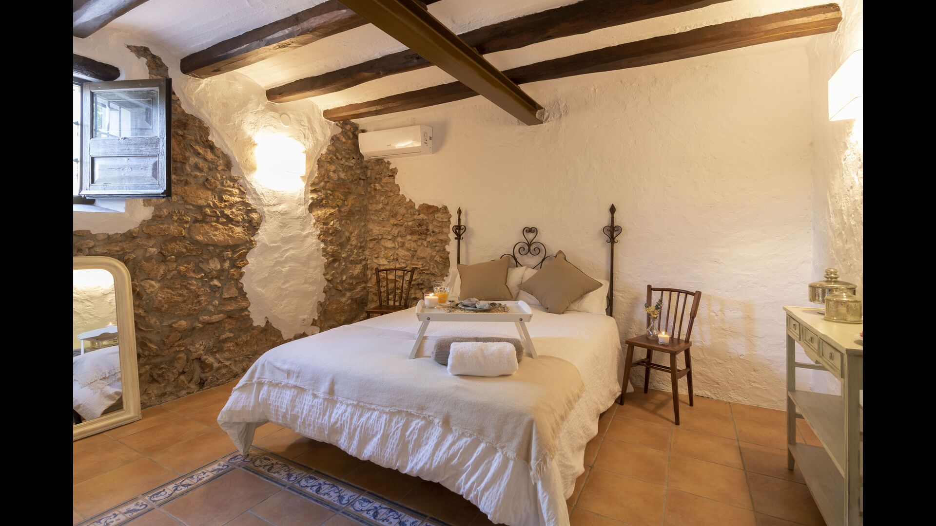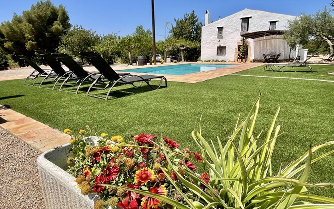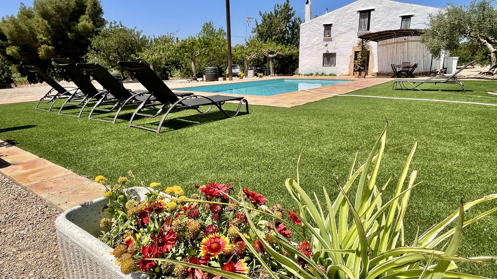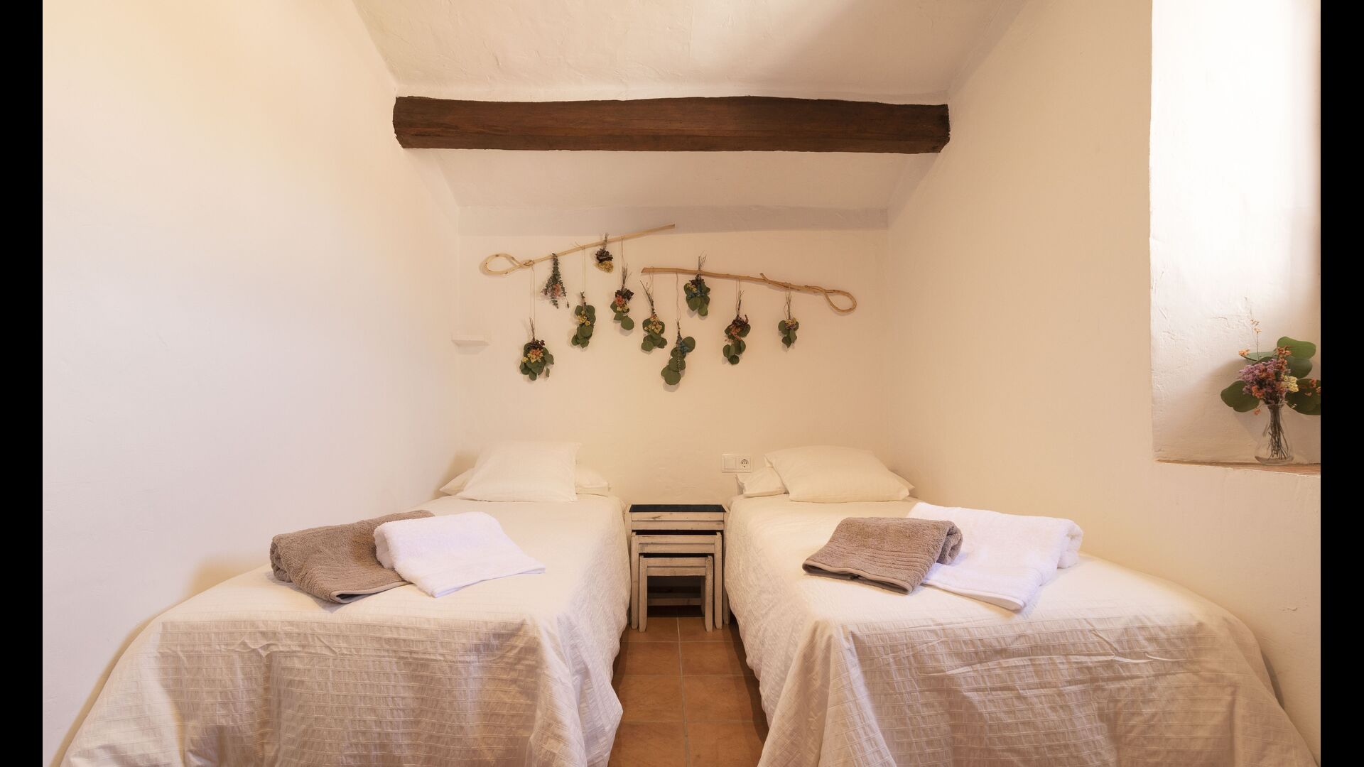 La maison dispose d'une terrasse couverte, idéale pour le petit-déjeuner et le dîner au bord des eaux doucement riantes de la piscine, elle-même assez grande et dotée de quelques chaises longues. Que vous vous rafraîchissiez dans la piscine, que vous vous détendiez sur les chaises longues ou que vous dégustiez des tapas sur la terrasse extérieure, vous pourrez contempler la merveilleuse campagne catalane . Une partie de la raison pour laquelle Casa Moma est si merveilleusement isolée sont les 6 hectares de forêt et de caroubiers, et 3 hectares</strong > des vignobles et des oliveraies qui entourent la propriété.