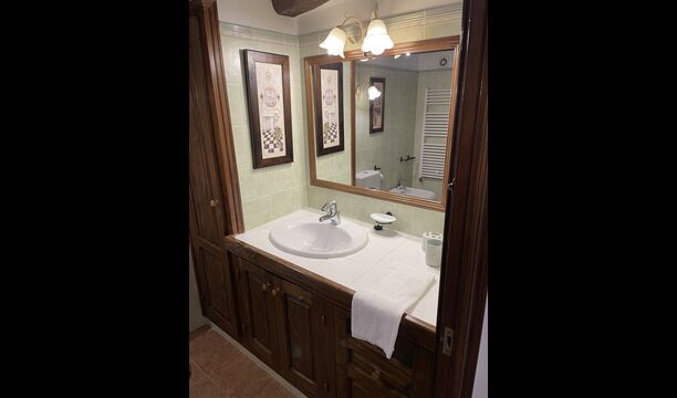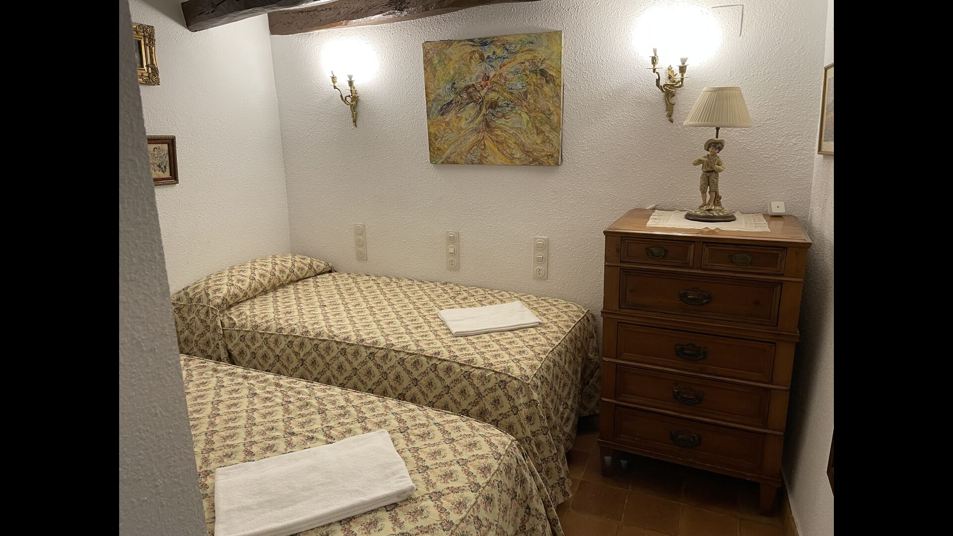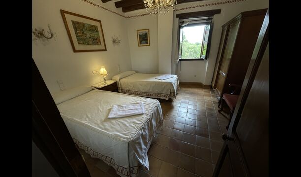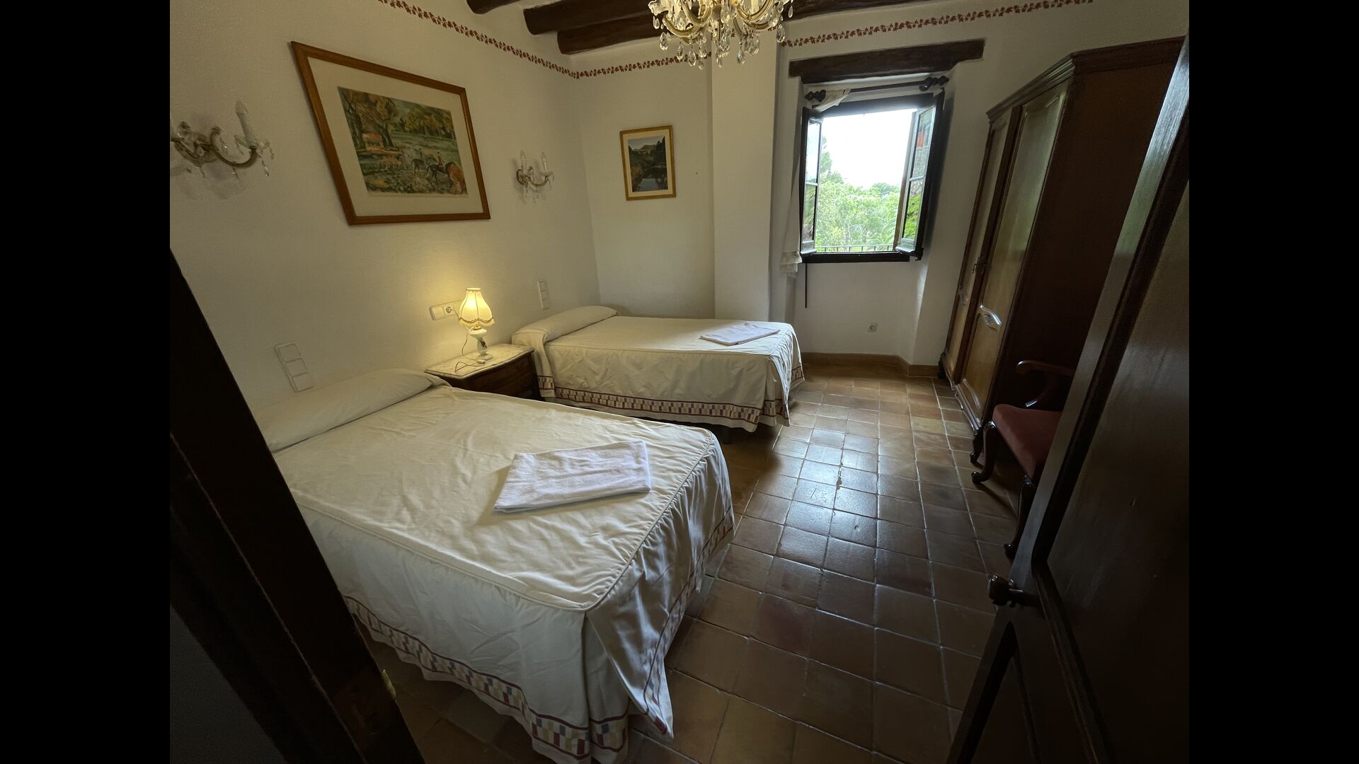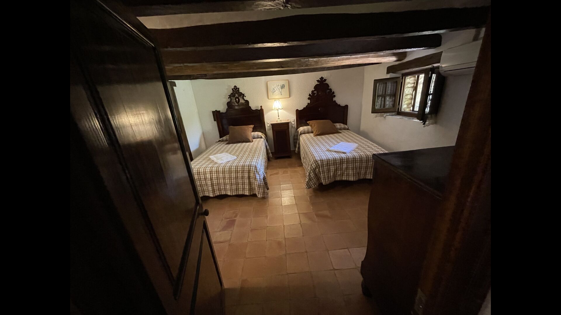 Les chambres sont situées aux étages supérieurs. Quatre marches plus haut, il y a une couloir communicante avec 3 chambres, une chambre double avec salle de bain privée, et une autre chambre double et une chambre twin partageant une salle de bain. Au premier étage, vous trouverez 5 autres chambres. Il y a un hall avec des canapés et un accès aux chambres. Une chambre double et une chambre twin partagent une salle de bain, et 3 autres chambres doubles partagent une autre salle de bain.