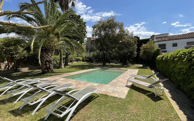 Le jardin est grand et vraiment confortable avec la piscine (8 x 4 mètres) au milieu et visible depuis la maison et la terrasse.