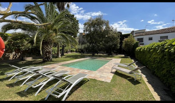 Séjournez dans ce magnifique manoir historique avec son grand jardin privé avec piscine. De la rue du village, vous entrez dans le grand hall et de l'autre côté, vous trouverez le jardin étonnamment paisible avec terrasse en connexion directe avec la cuisine, la piscine et de nombreux coins ombragés fournis par les palmiers et autres arbres.< /p>