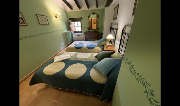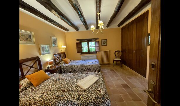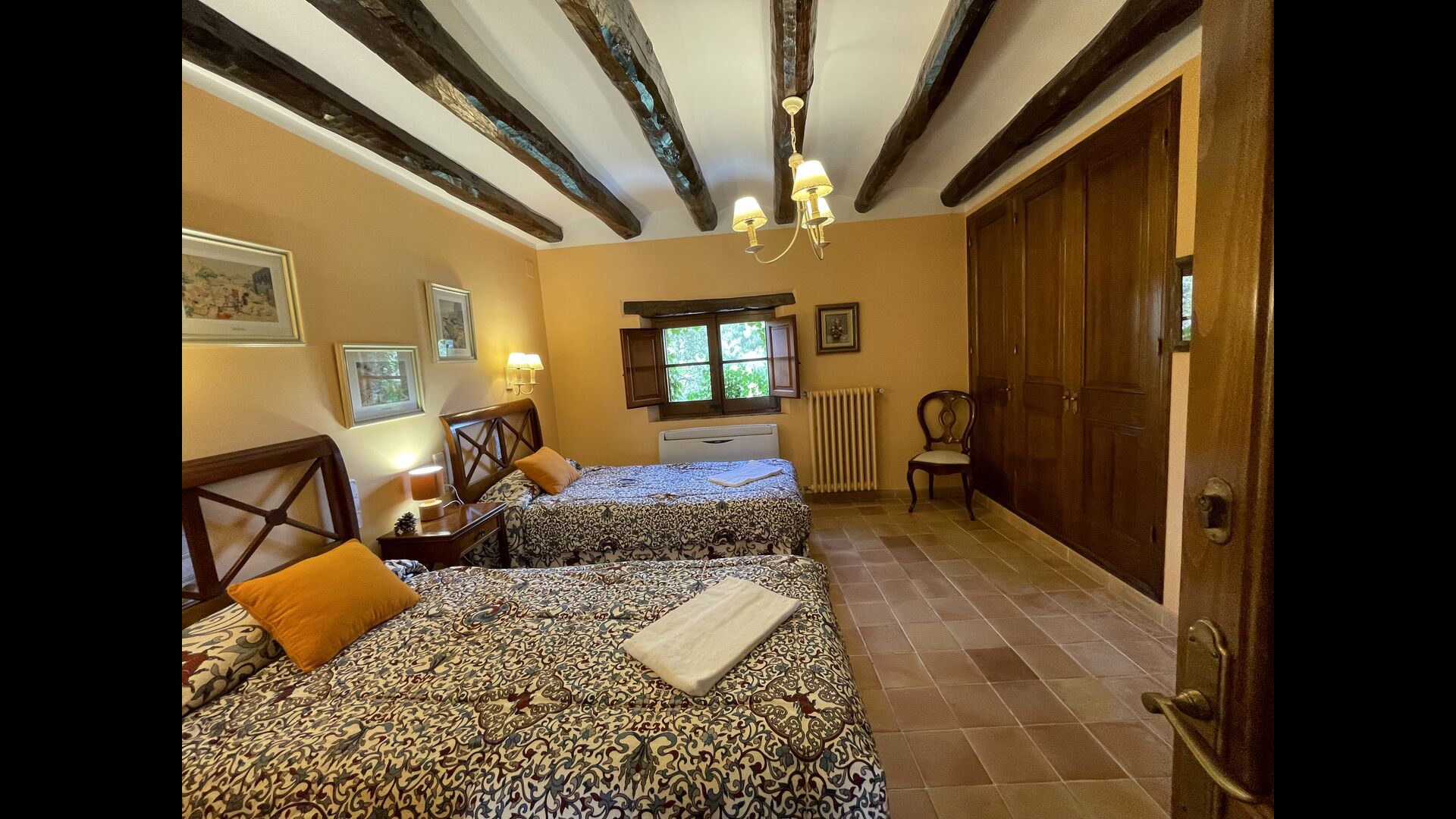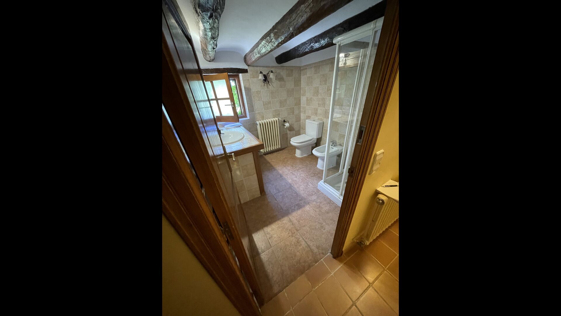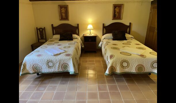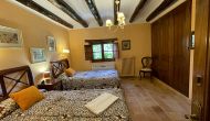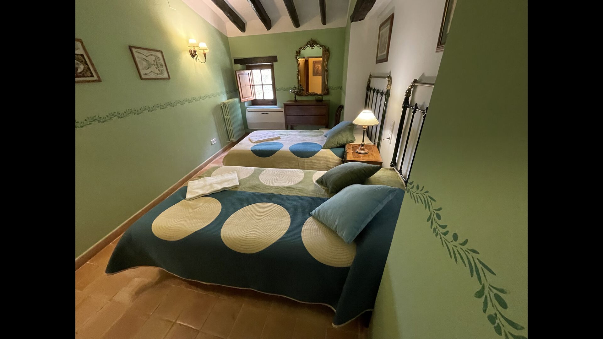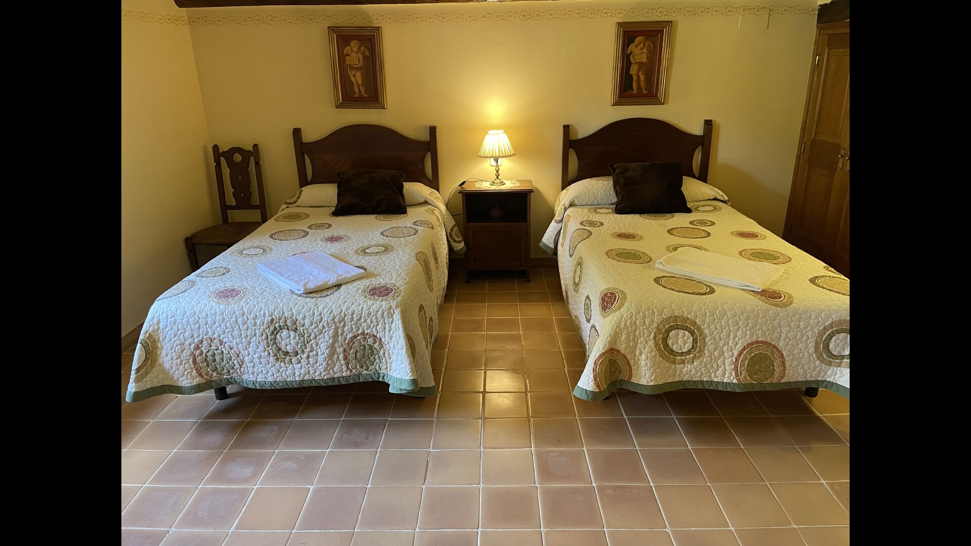 Au premier étage, vous trouverez une chambre double avec deux lits simples (et de la place pour un lit supplémentaire) et une autre chambre avec un lit double. Il y a une salle de bain commune avec douche entre les deux chambres.