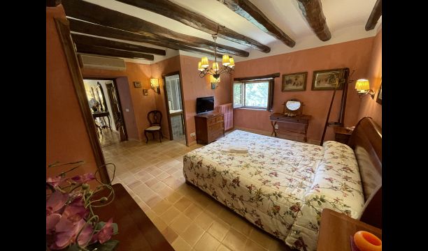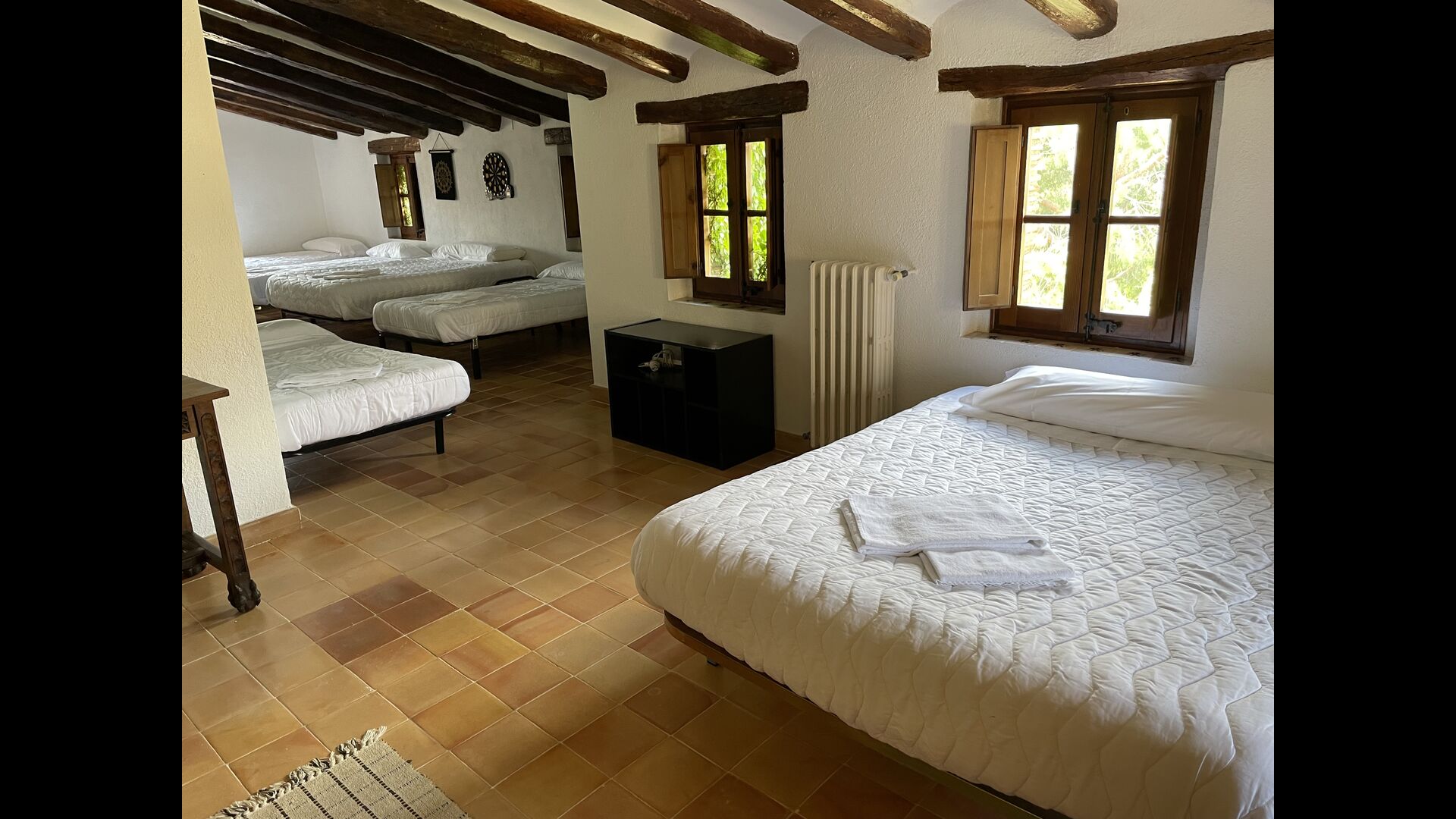 Au deuxième étage, vous trouverez quatre autres chambres. L'une d'elles est une chambre principale avec une salle de bain attenante, puis il y a 3 autres chambres doubles qui partagent une autre salle de bain. Il y a aussi un salon avec un balcon donnant sur la rue du village.