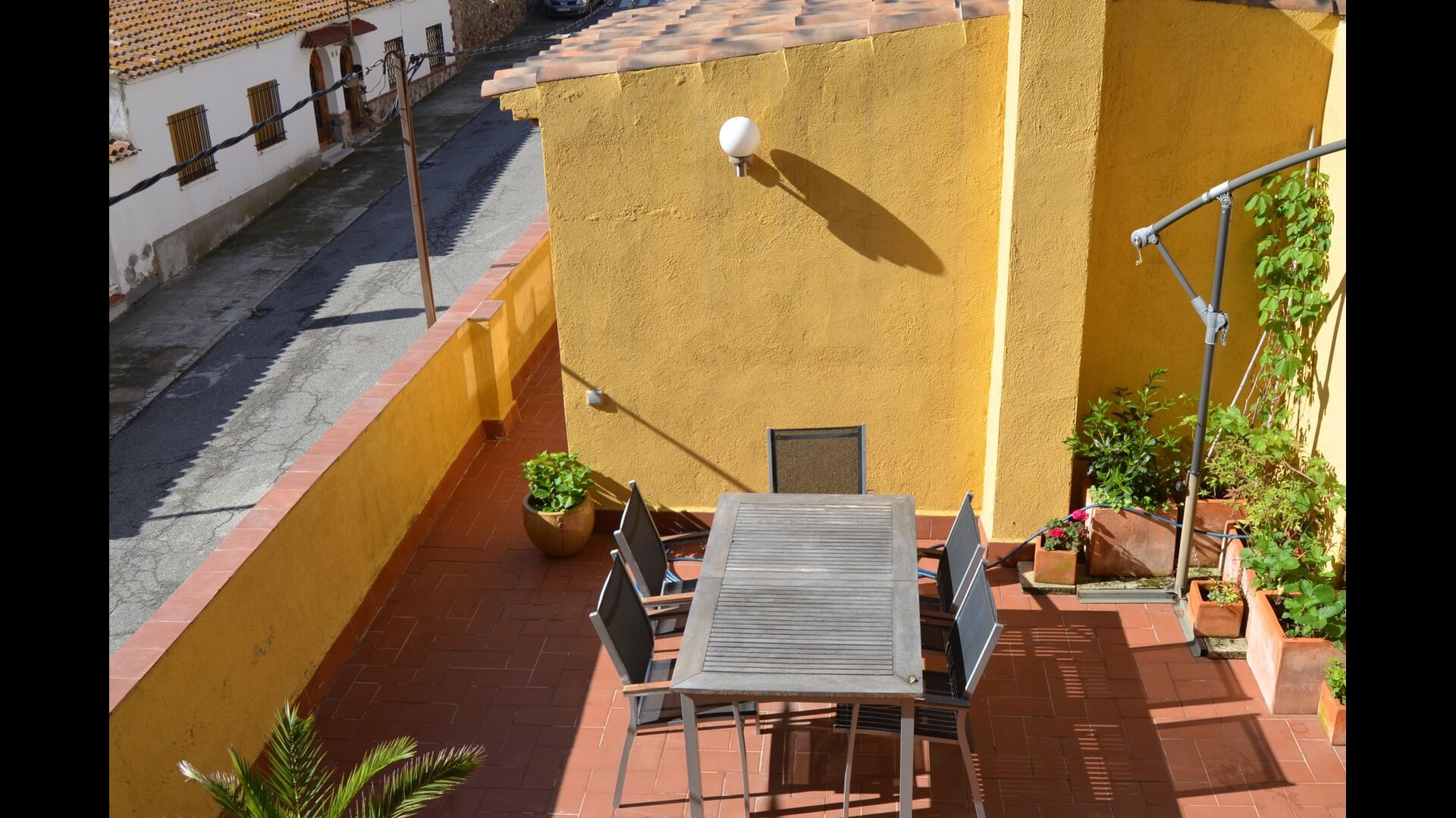 Although the house is a townhouse, it is situated as the last house in the village. Therefore, the house offers plenty of opportunities to spend the holidays outside in the beautiful Catalan summer. There are also a couple of pine trees which provide shade and where you can enjoy life in the hammock. For children there are swings and a slide. Below, there is the garden with a swimming pool where you can cool down and children can play. There is also a table football. The house has a WIFI-Internet connection available free of charge.