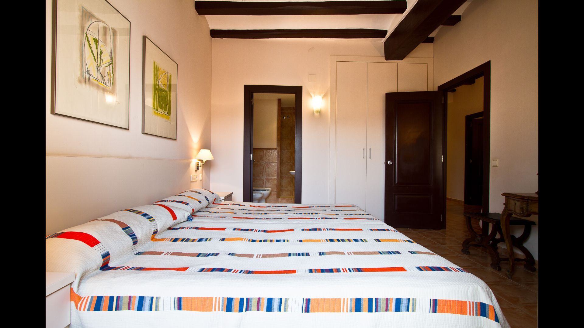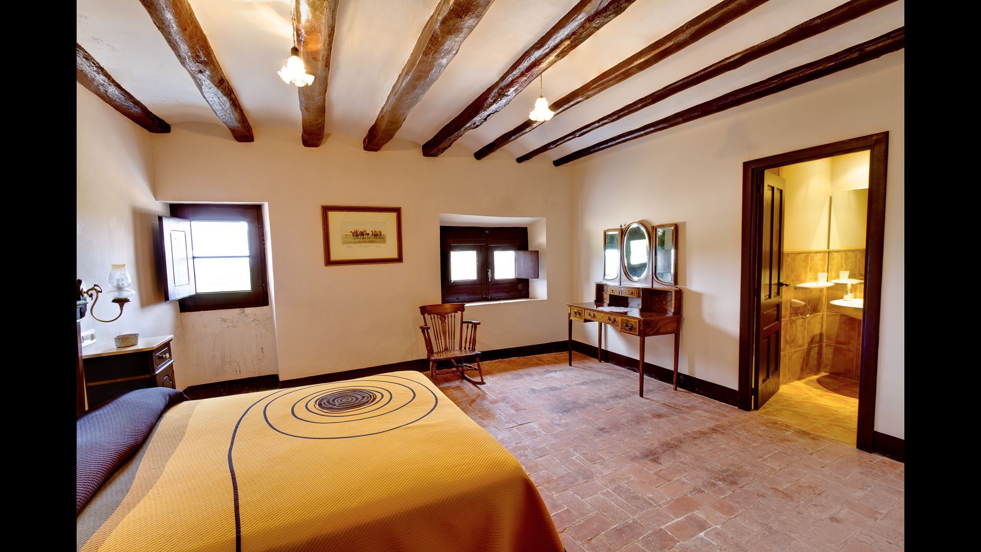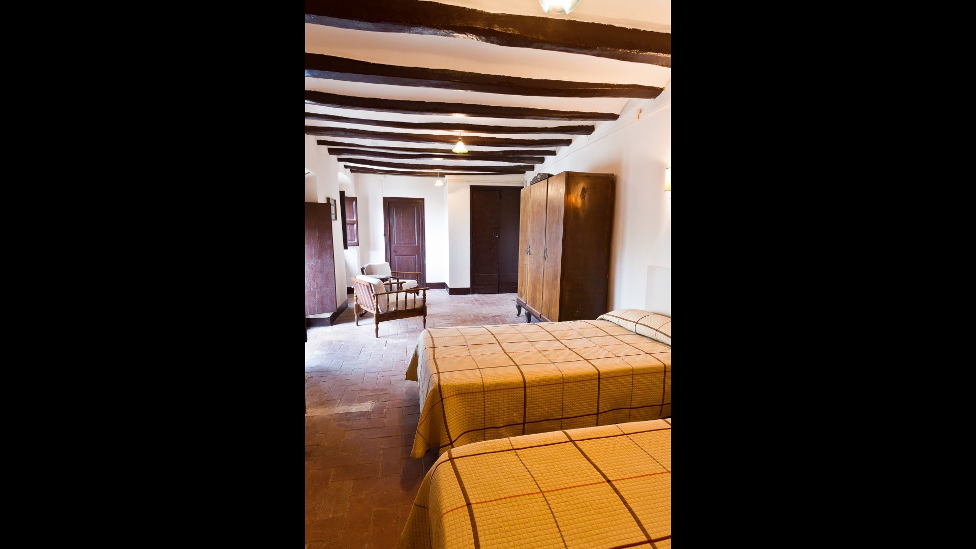 La maison dispose de 4 chambres doubles (8 personnes) incluses dans le prix, qui ont leur propre salle de bain et qui sont situées au rez-de-chaussée de la maison. Trois chambres supplémentaires et deux salles de bains sont disponibles pour les groupes plus importants au deuxième étage. Le prix par chambre supplémentaire est de 225 Euros / chambre / semaine.