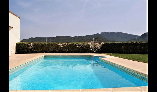 De cette pièce, vous pouvez entrer dans la très grande terrasse avec une partie couverte, au cas où vous préféreriez l’ombre. Il y a un barbecue disponible et aussi une table de ping-pong. La terrasse donne une atmosphère catalane très authentique. De la terrasse, il y a un escalier qui mène à la piscine. Vous devrez passer une porte, elle est donc très sécurisée si vous amenez de jeunes enfants. La piscine est un endroit très agréable pour se détendre sur les chaises longues et un endroit idéal pour les enfants.