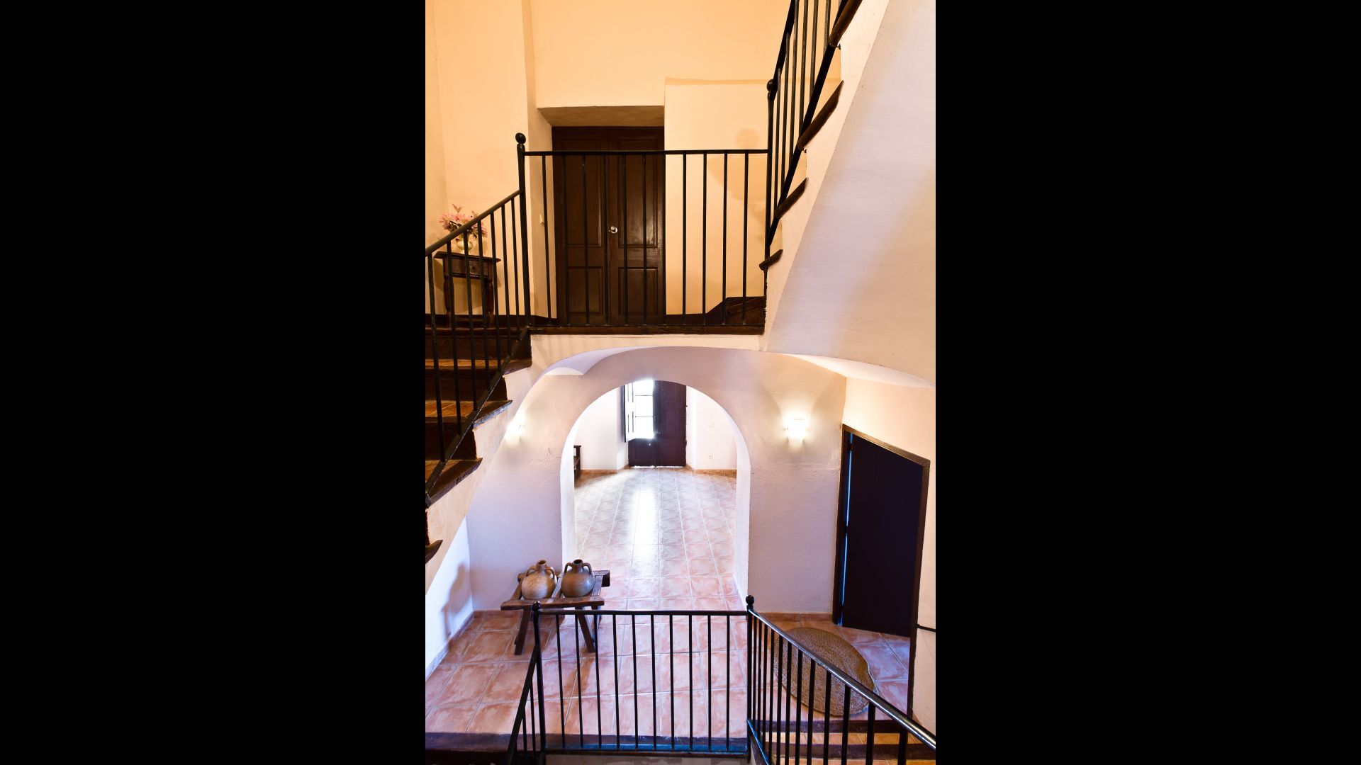 La maison est blanchie à la chaux dans un style traditionnel pour la région. Vous entrez dans la maison de la charmante cour par un escalier qui mène à l’étage principal. A gauche, les 4 chambres doubles sont réparties de part et d'autre de l'allée, trois d'entre elles avec salle de bains privative. Sur la droite, vous trouverez la cuisine moderne avec coin repas et si vous continuez tout droit, vous entrez dans le vaste salon avec coin repas, coin télévision et cheminée. Il y a une vue magnifique.