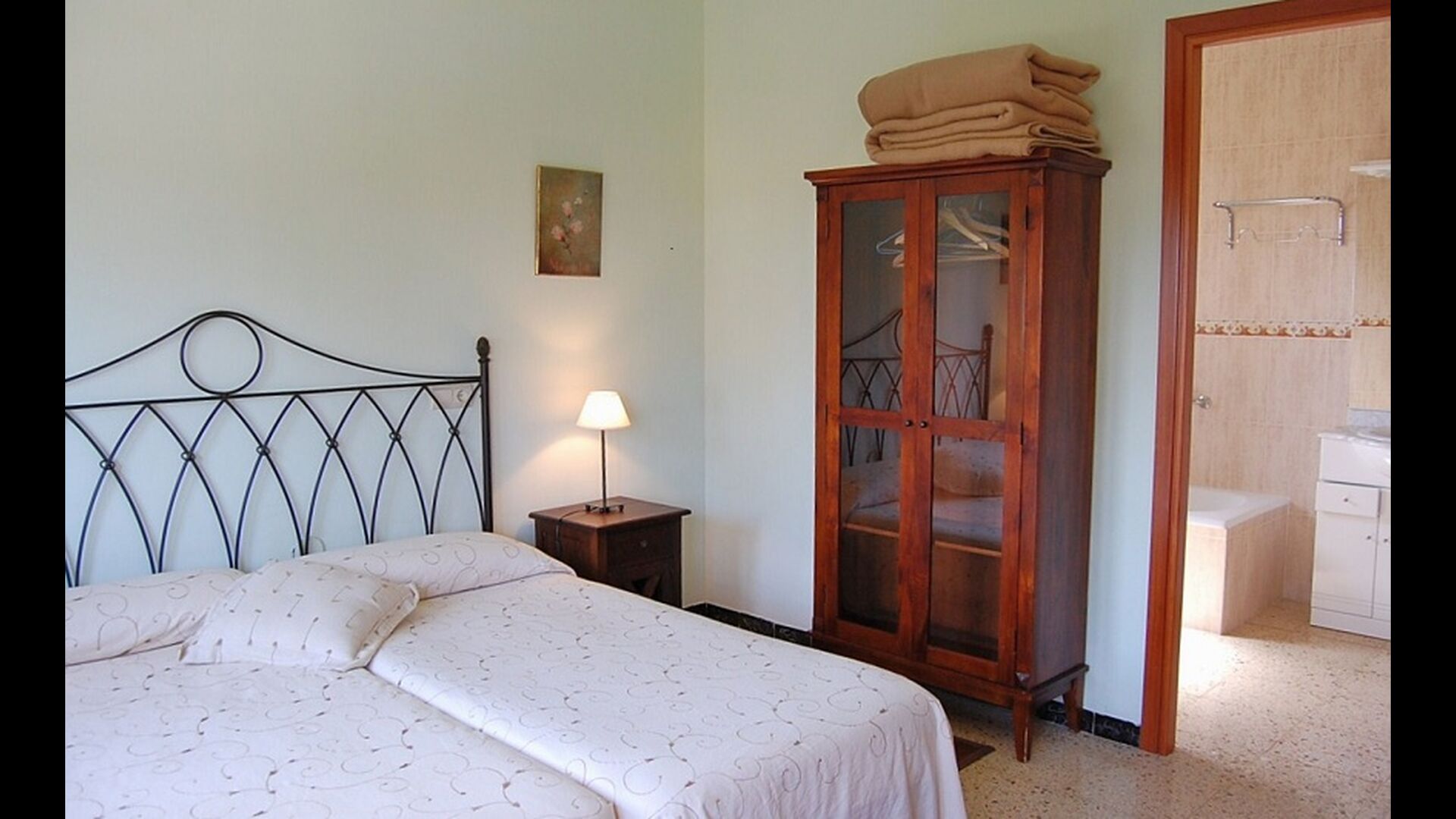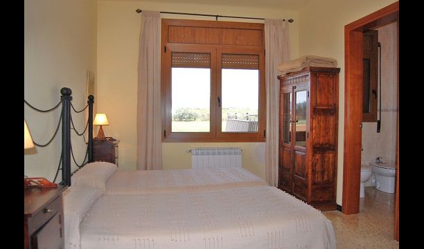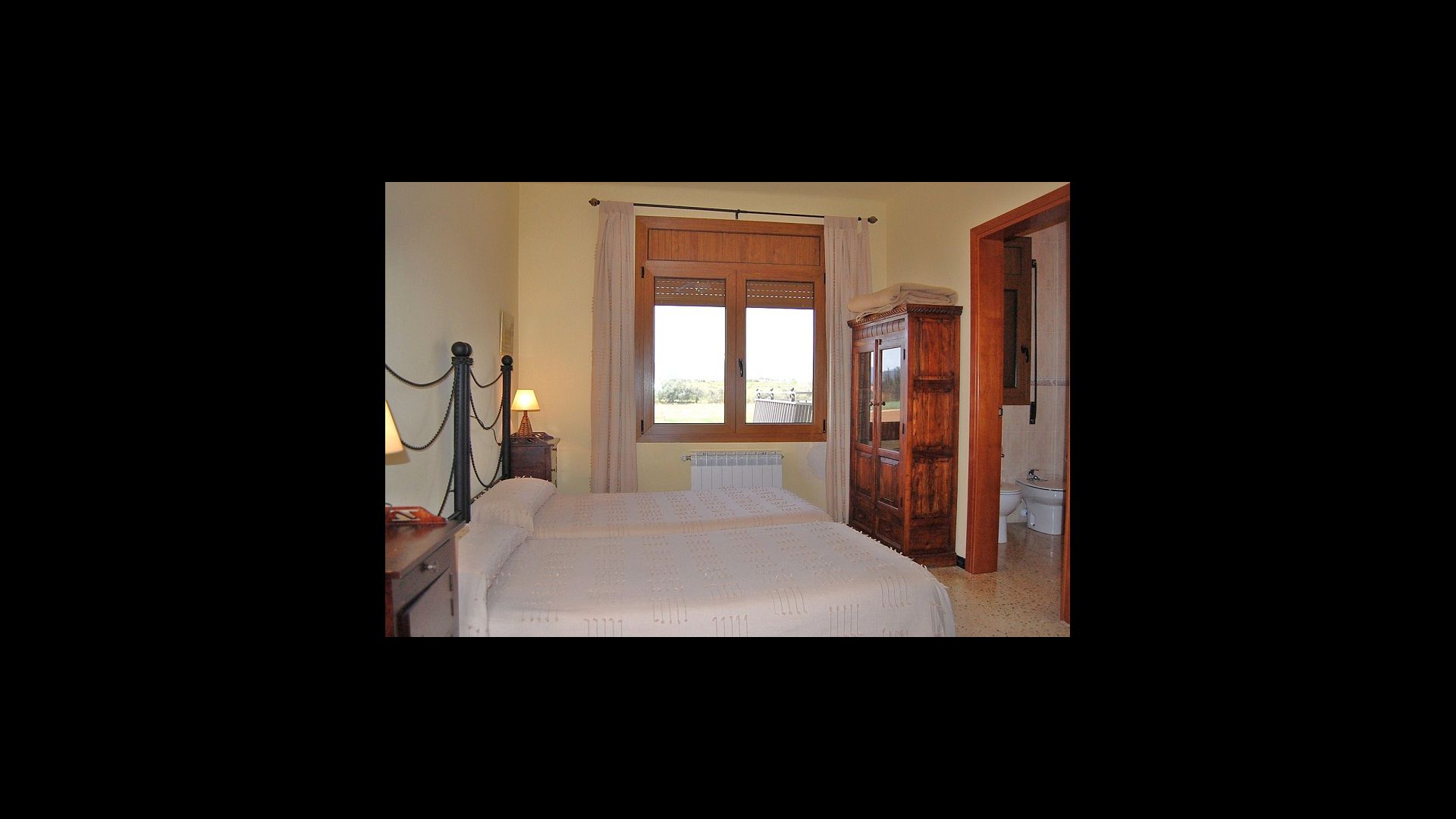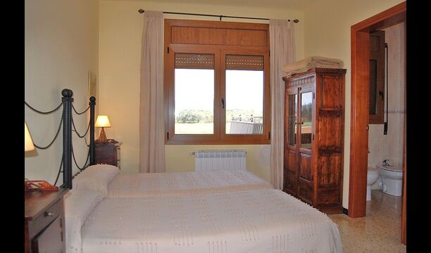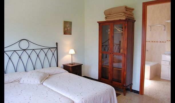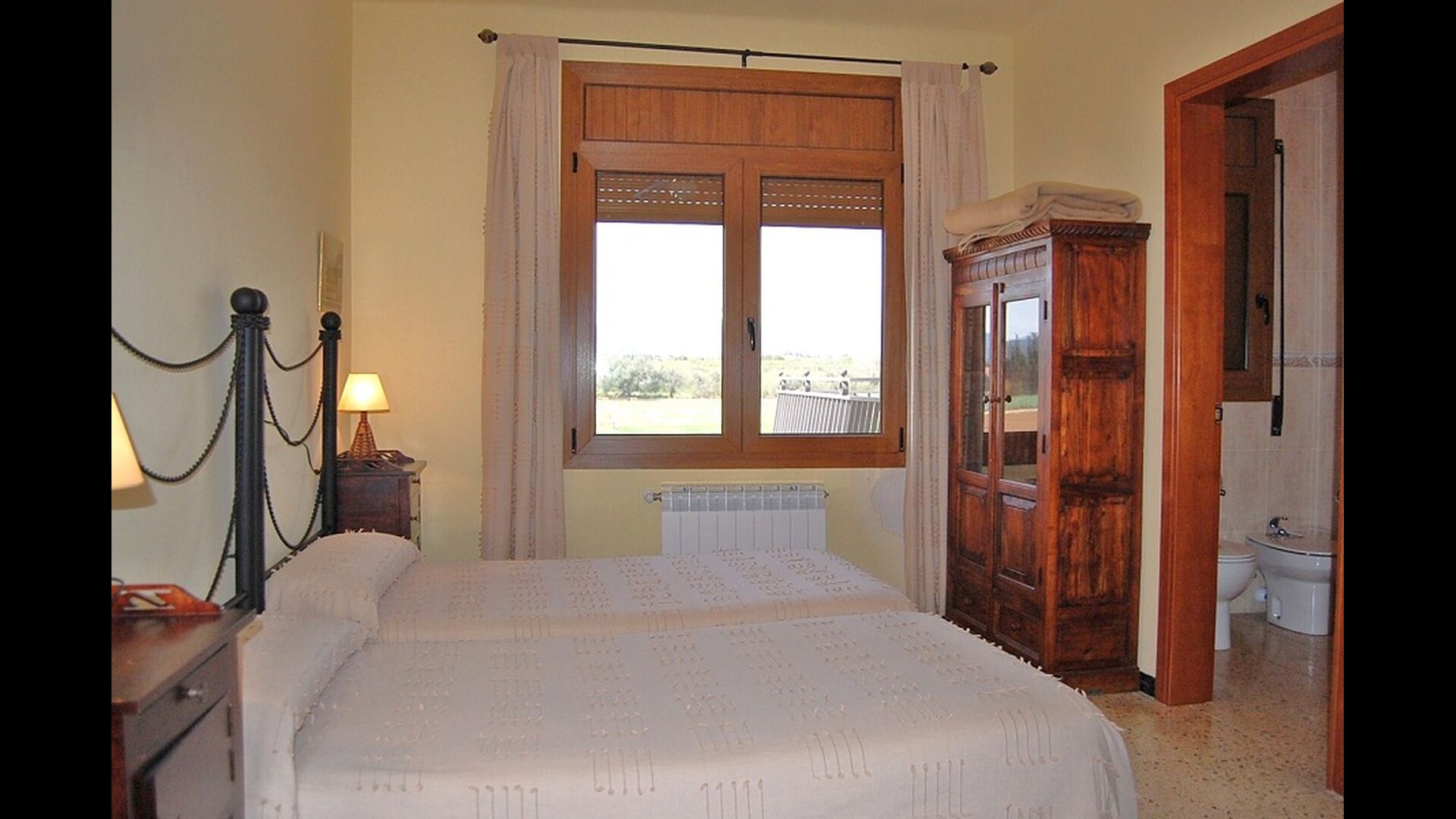 2. Premier étage, La Casa Gran : en montant l'escalier, vous entrerez dans la maison. Vous y trouverez une grande cuisine-salle à manger ouverte avec une belle cheminée. La salle à manger donne accès à la grande terrasse offrant une vue magnifique sur la propriété et la mer Méditerranée au loin. Un peu plus loin, un couloir mène à deux chambres doubles partageant une grande salle de bain. Le couloir dessert 4 chambres doubles (dont 2 avec Chambres (2 lits doubles et 2 chambres avec 2 lits simples chacune) avec salle de bain attenante. L'une des chambres dispose d'une baignoire et les autres de douches.