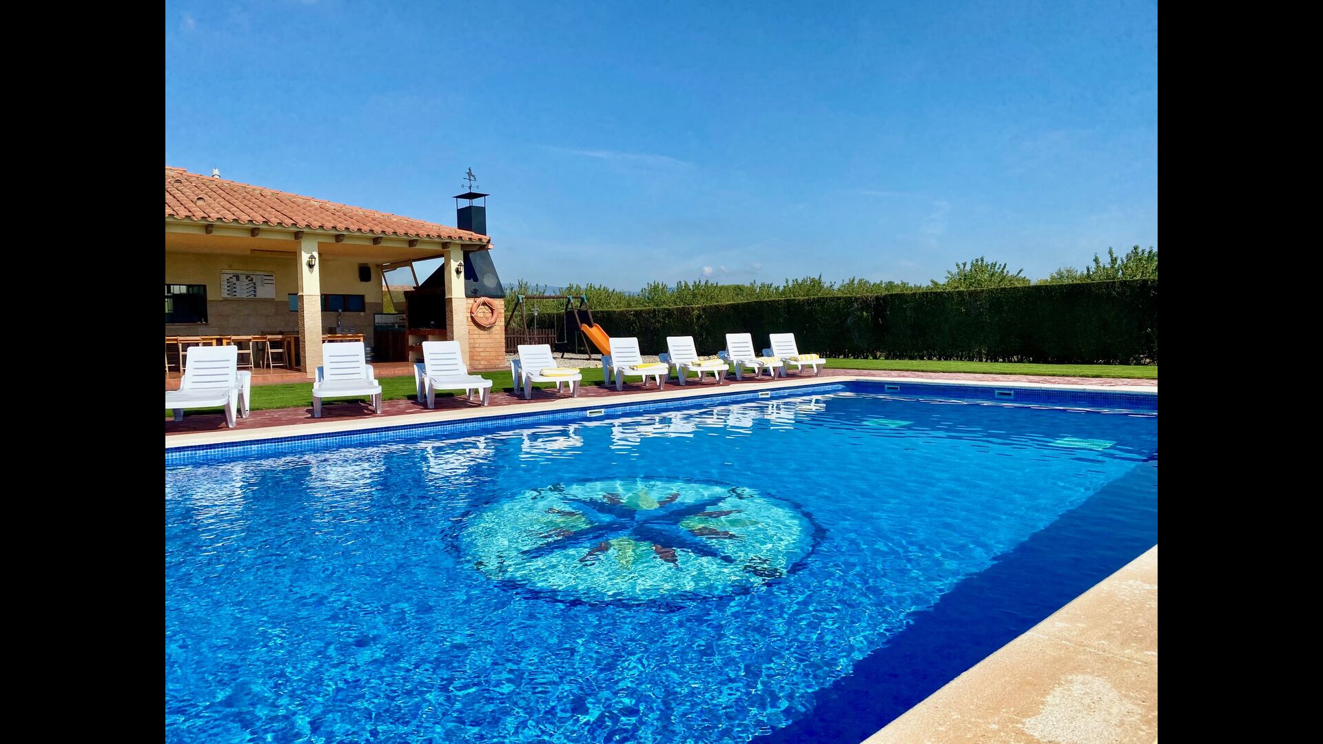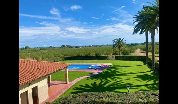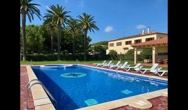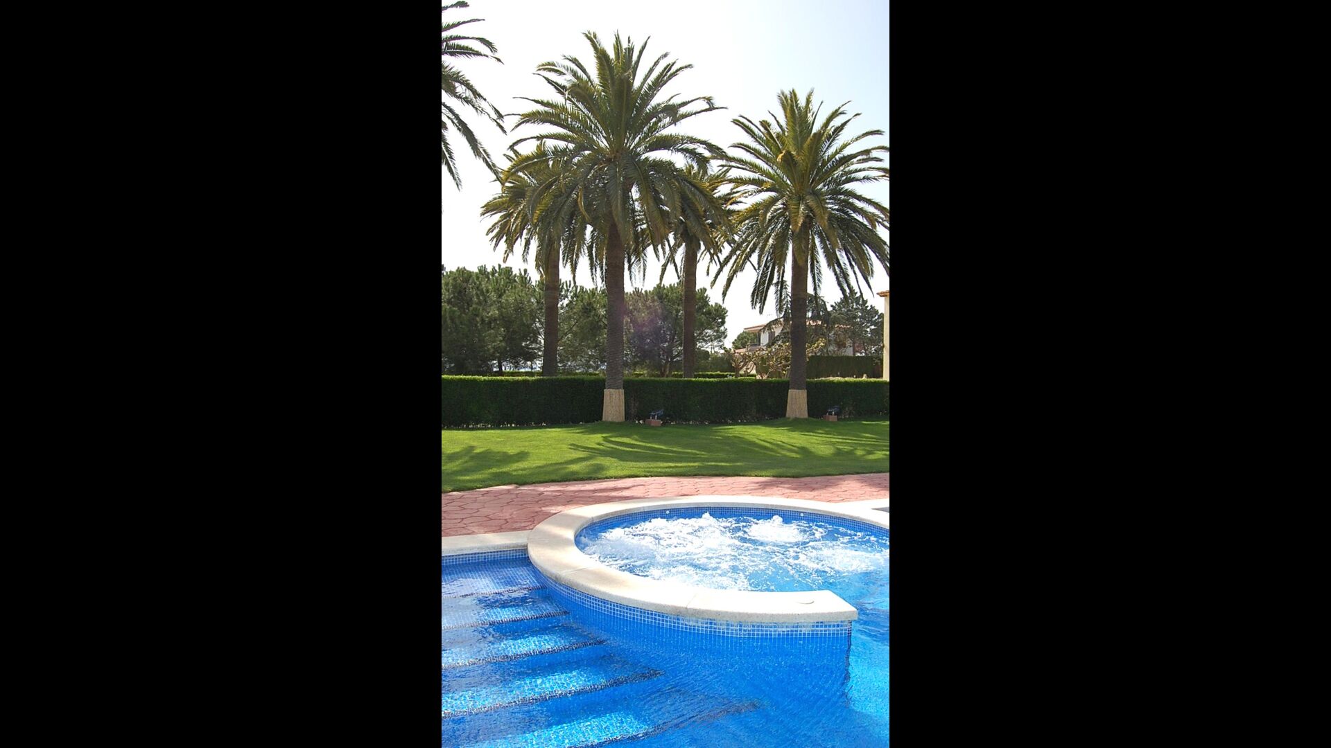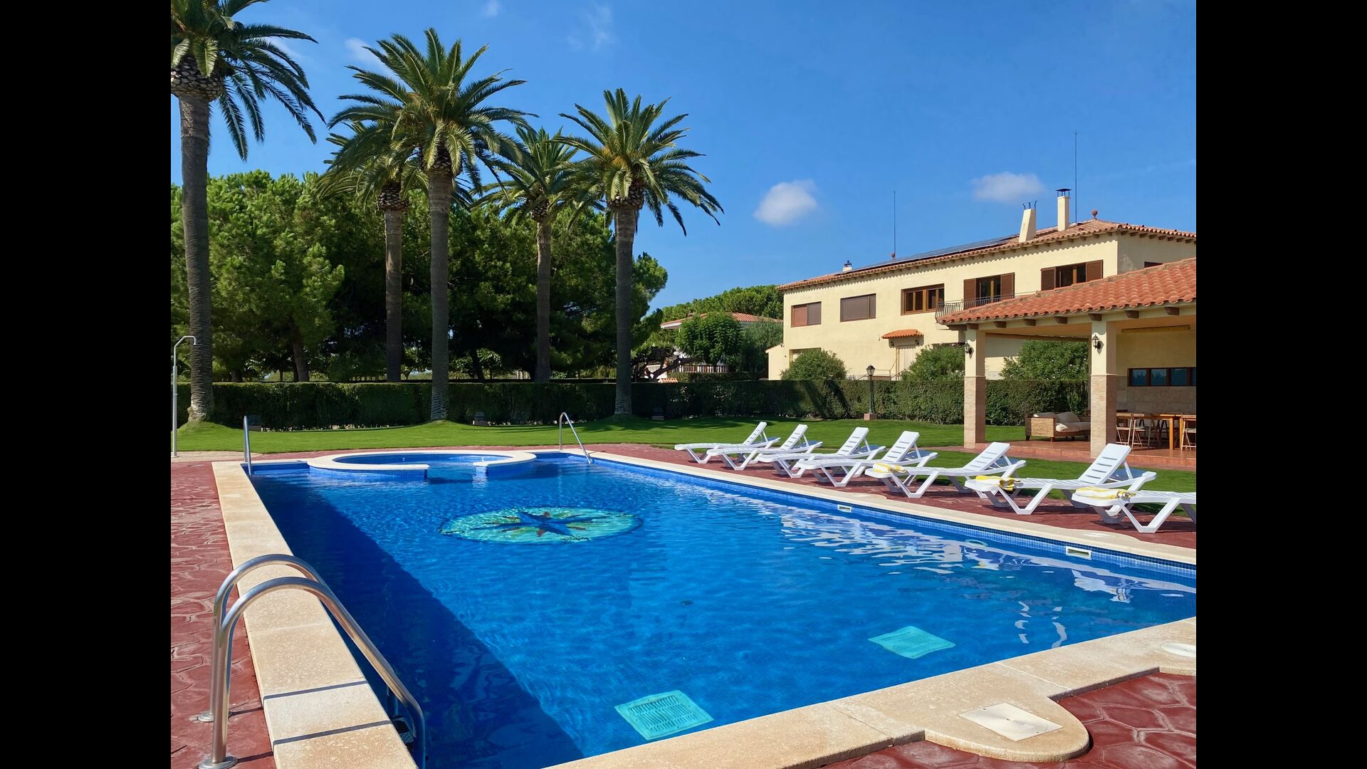 Le lieu de rencontre naturel de la propriété est le très grand espace piscine clôturé autour de la grande piscine. La piscine mesure 12 x 6 mètres et dispose même d'un spa intégré. Un escalier romain dans la partie peu profonde est également disponible, idéal pour les jeunes enfants. L'espace piscine dispose d'une grande pelouse luxuriante, où vous pourrez vous détendre sur le tapis d'herbe bien entretenu, partiellement ombragé par les palmiers. Dix chaises longues confortables sont également à votre disposition pour vous détendre et profiter du soleil catalan.