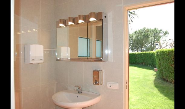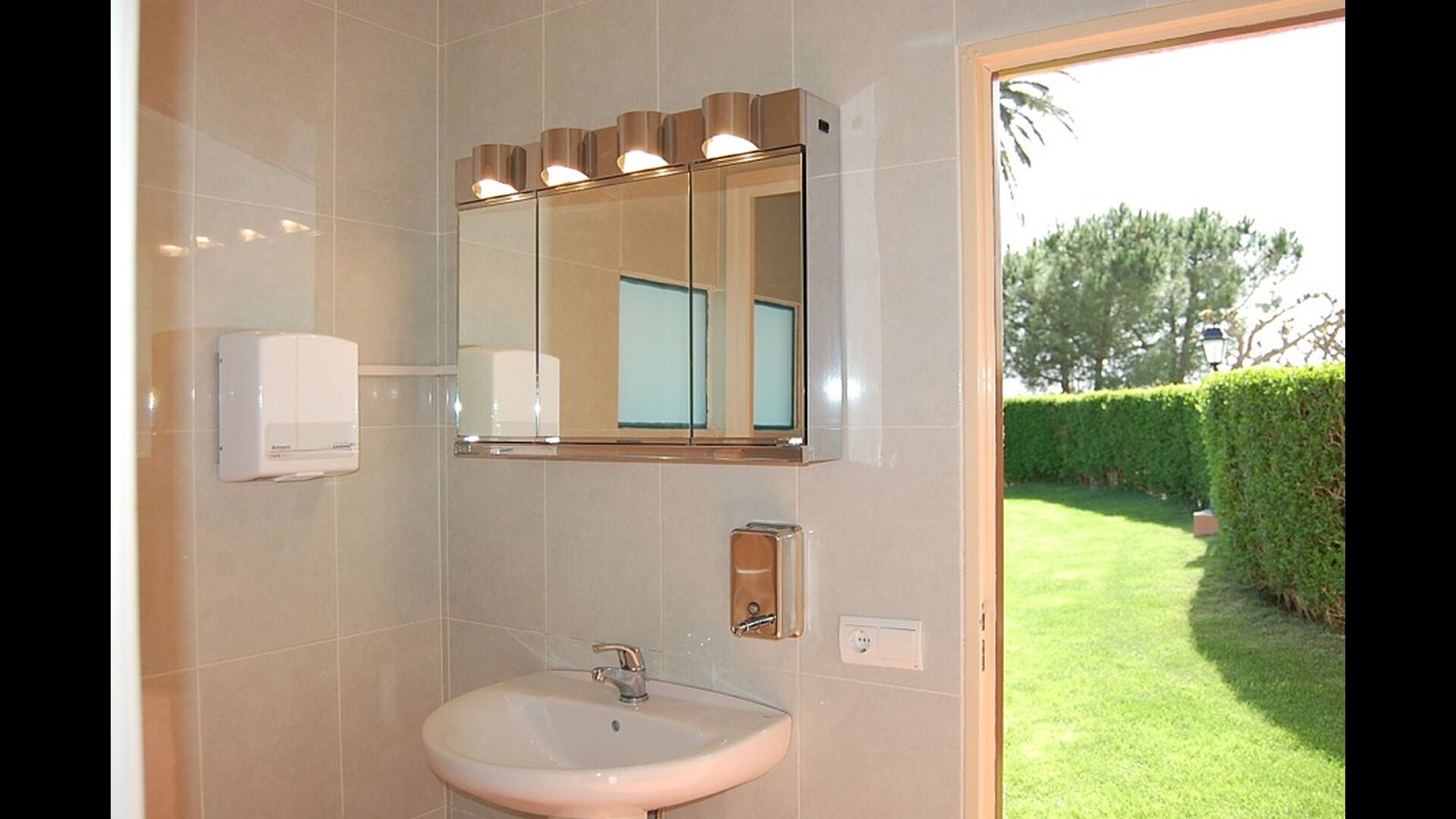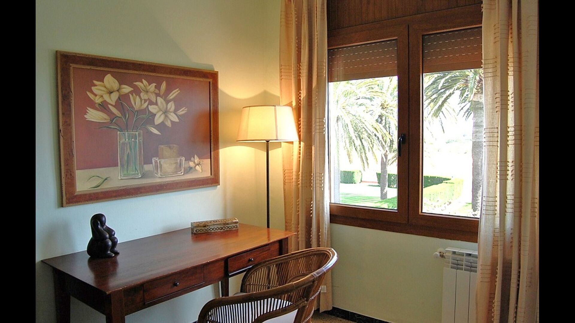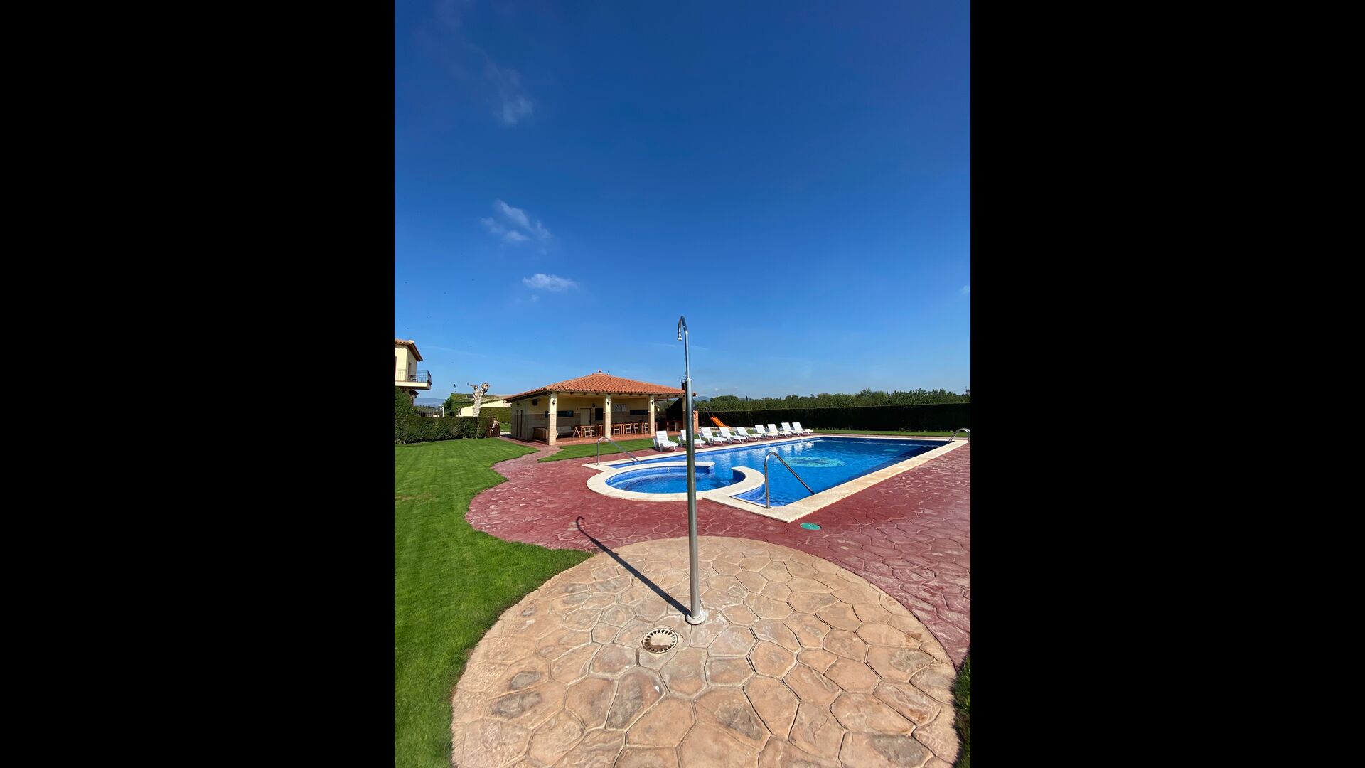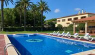 Le lieu de rencontre naturel de la propriété est le très grand espace piscine clôturé autour de la grande piscine. La piscine mesure 12 x 6 mètres et dispose même d'un spa intégré. Un escalier romain dans la partie peu profonde est également disponible, idéal pour les jeunes enfants. L'espace piscine dispose d'une grande pelouse luxuriante, où vous pourrez vous détendre sur le tapis d'herbe bien entretenu, partiellement ombragé par les palmiers. Dix chaises longues confortables sont également à votre disposition pour vous détendre et profiter du soleil catalan.