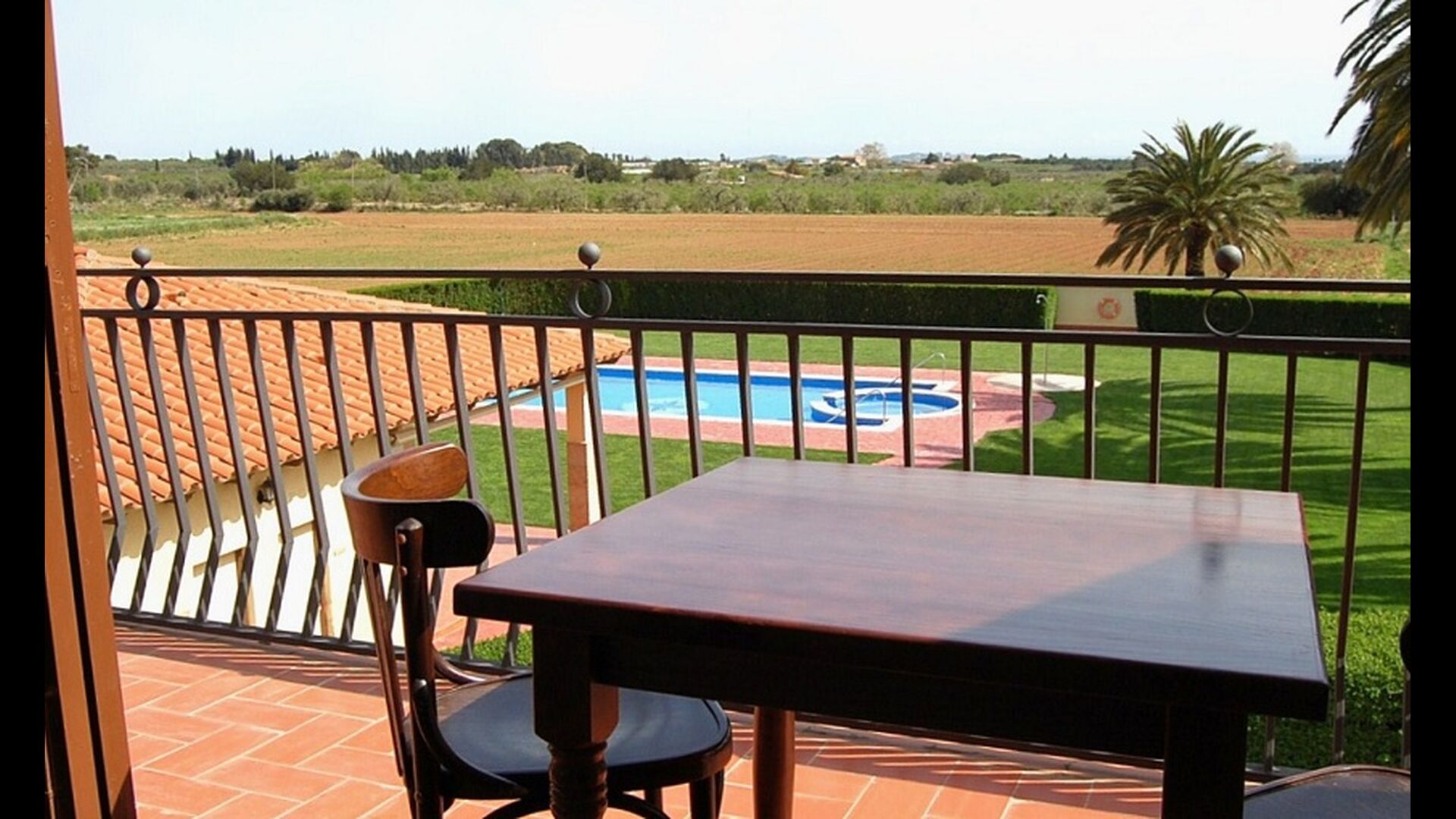 Entre la piscine et le parking, un espace ombragé et cosy sous les pins, « El Resguard », est idéal pour lire ou jouer aux échecs sur une table en pierre ornée d'un échiquier gravé.