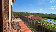 La piscine dispose également d'un pool-house avec une salle de bain à une extrémité et, à l'autre, une cuisine extérieure, un barbecue et un réfrigérateur. Le long des pool-houses, une grande terrasse couverte, face à la piscine, offre un espace détente. Vous pourrez par exemple profiter de repas autour de la table à manger extérieure, tous ensemble, au vent.