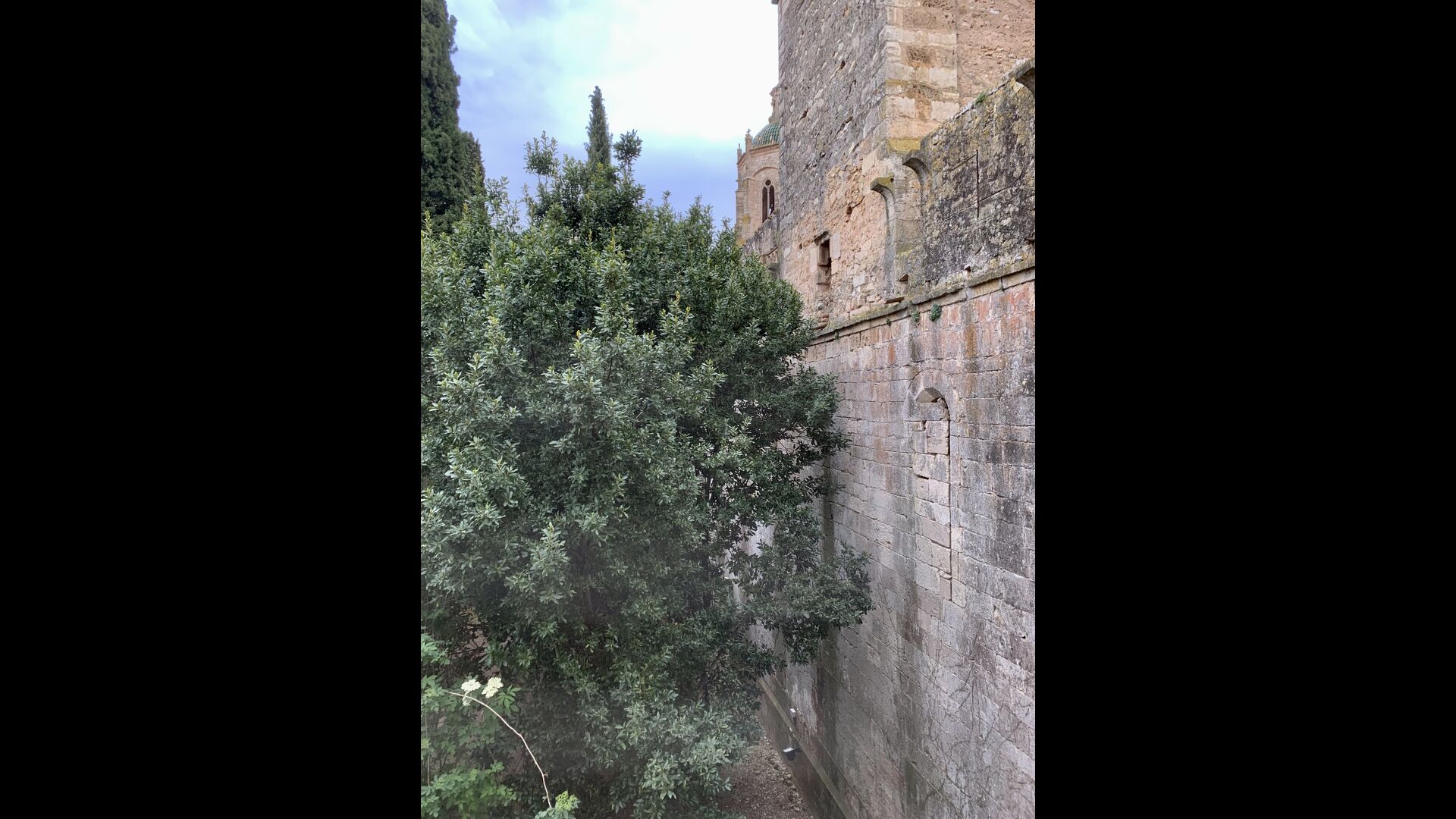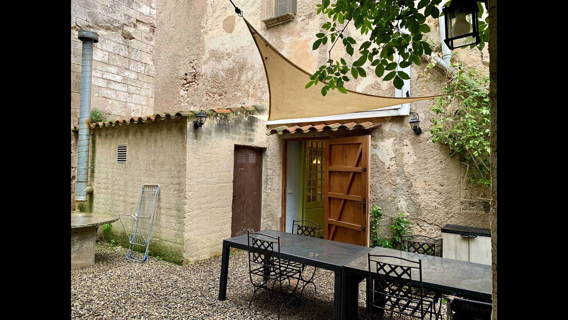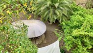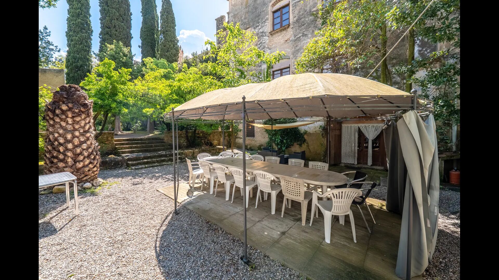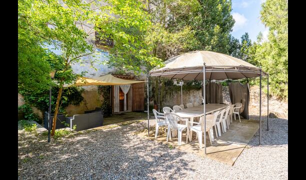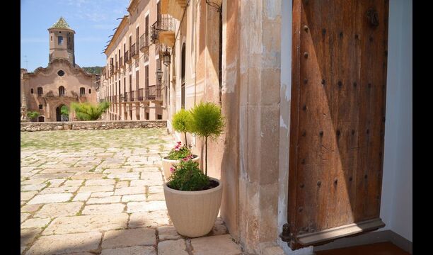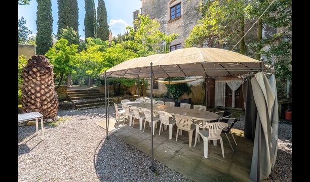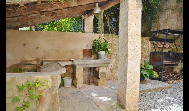 La maison dispose d'un très grand patio de 3000 m2, qui est entièrement privé et réservé à l'usage exclusif des hôtes. Il est très long et s'étend le long des murs du monastère. A la sortie de la maison, vous trouverez un coin repas couvert, et à côté de celui-ciun coin cuisine avec un grand barbecue et un évier extérieur.