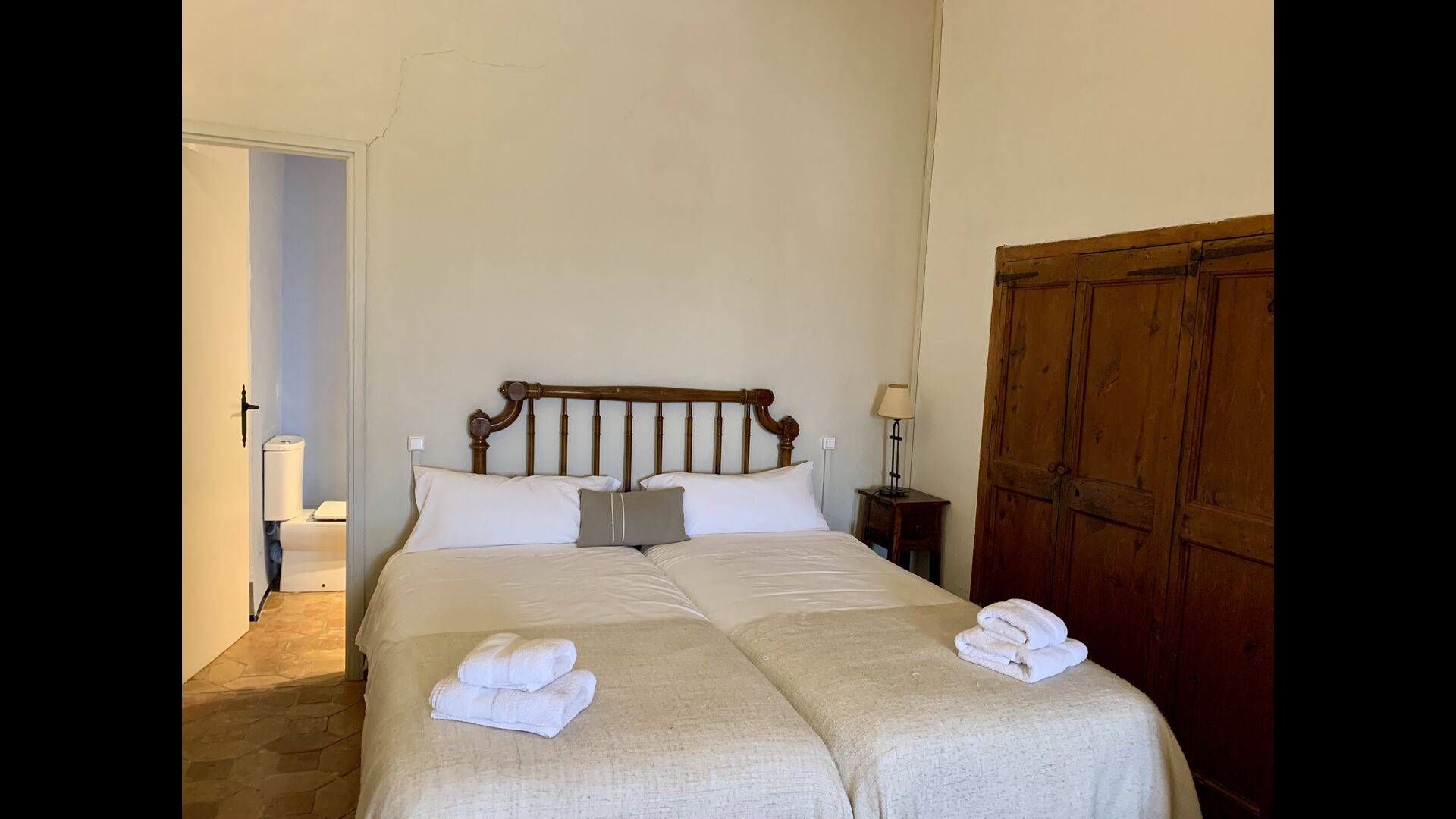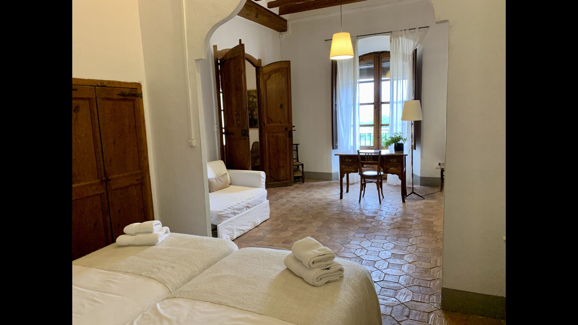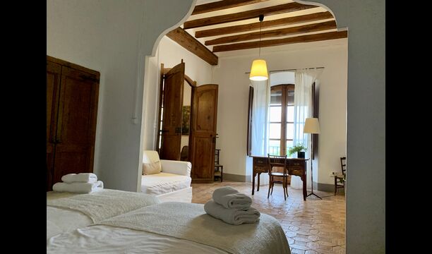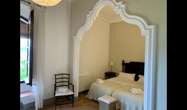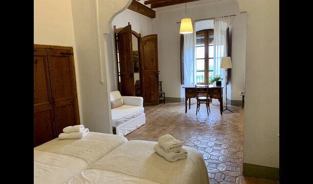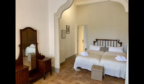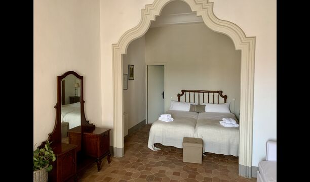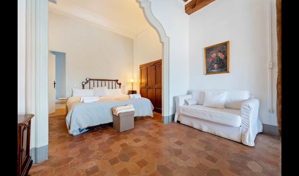 Au premier et au deuxième étage se trouvent deux salons, une cuisine et au total 6 chambres doubles. Comme le reste de la maison, les chambres sont très spacieuses et il y a deux très grandes suites.Celles-ci disposent toutes deux d'un grand lit double, d'un canapé et d'un bureau et d'un accès direct à un balcon avec vue sur la cour du monastère.Il y a en outre 4 autres chambres doubles, toutes luxueusement aménagées dans un style classique. Pour ces chambres, il y a 5 belles salles de bains : 4 avec douche et une avec baignoire.