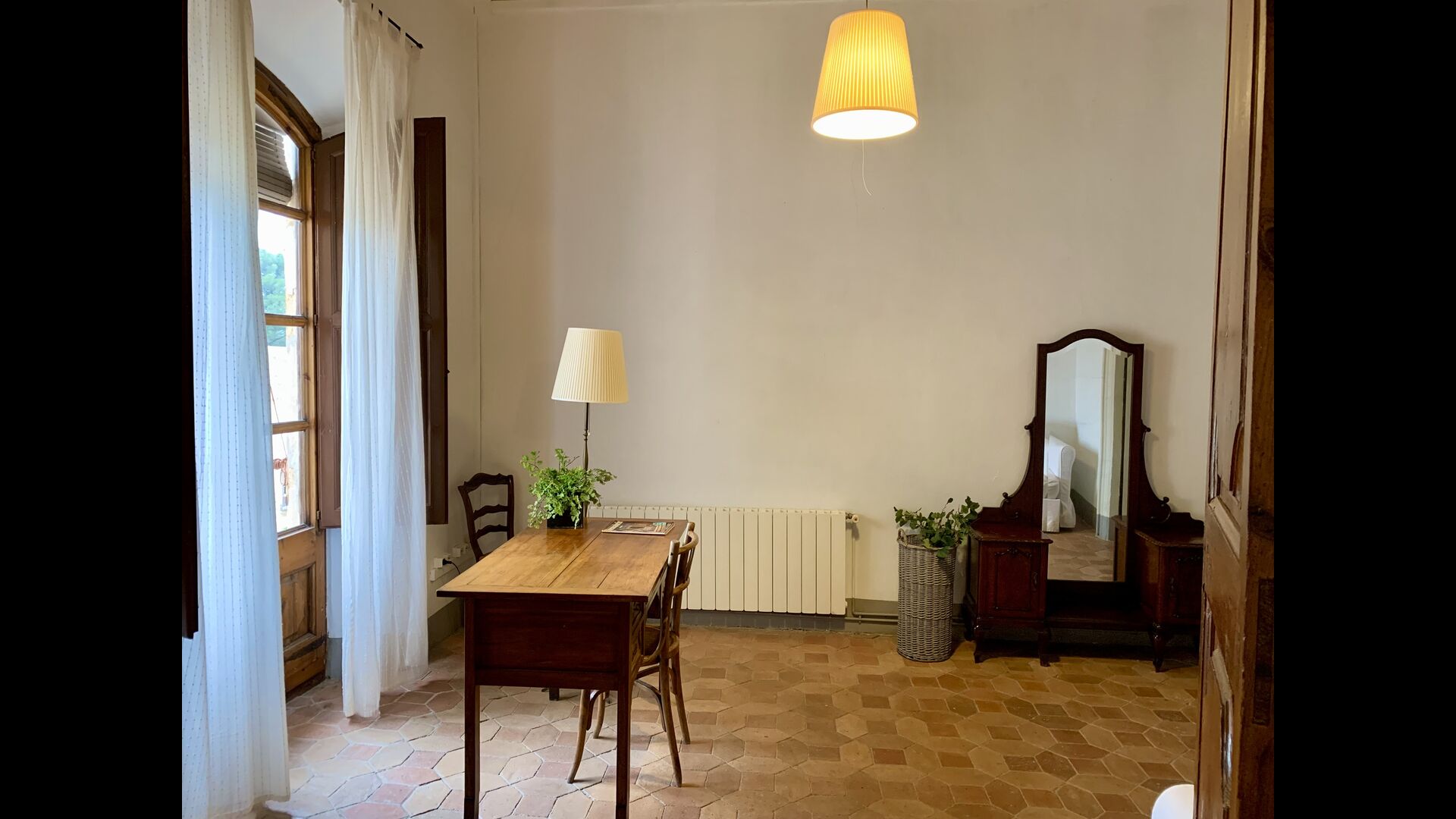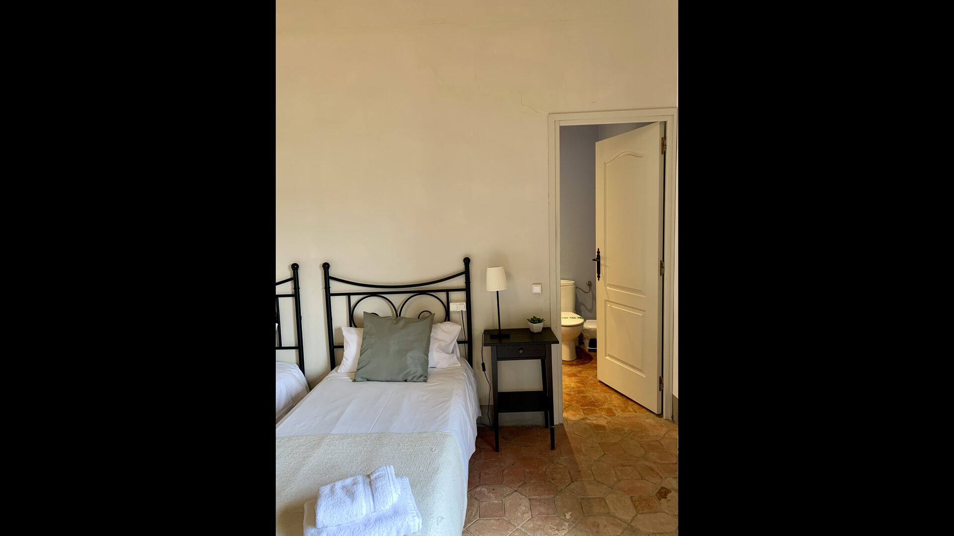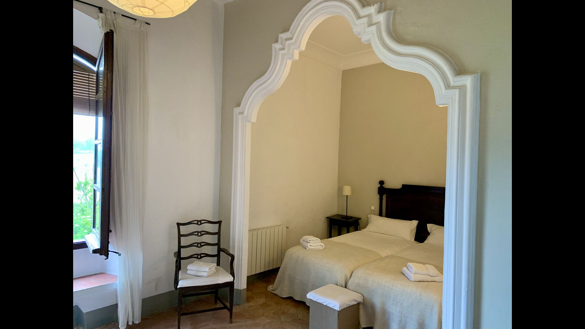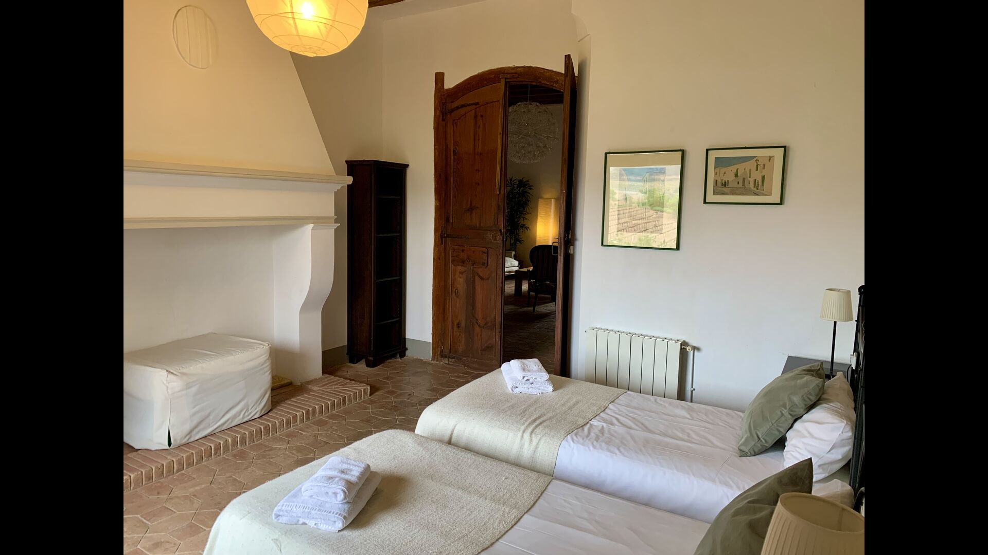 Au premier et au deuxième étage se trouvent deux salons, une cuisine et au total 6 chambres doubles. Comme le reste de la maison, les chambres sont très spacieuses et il y a deux très grandes suites.Celles-ci disposent toutes deux d'un grand lit double, d'un canapé et d'un bureau et d'un accès direct à un balcon avec vue sur la cour du monastère.Il y a en outre 4 autres chambres doubles, toutes luxueusement aménagées dans un style classique. Pour ces chambres, il y a 5 belles salles de bains : 4 avec douche et une avec baignoire.