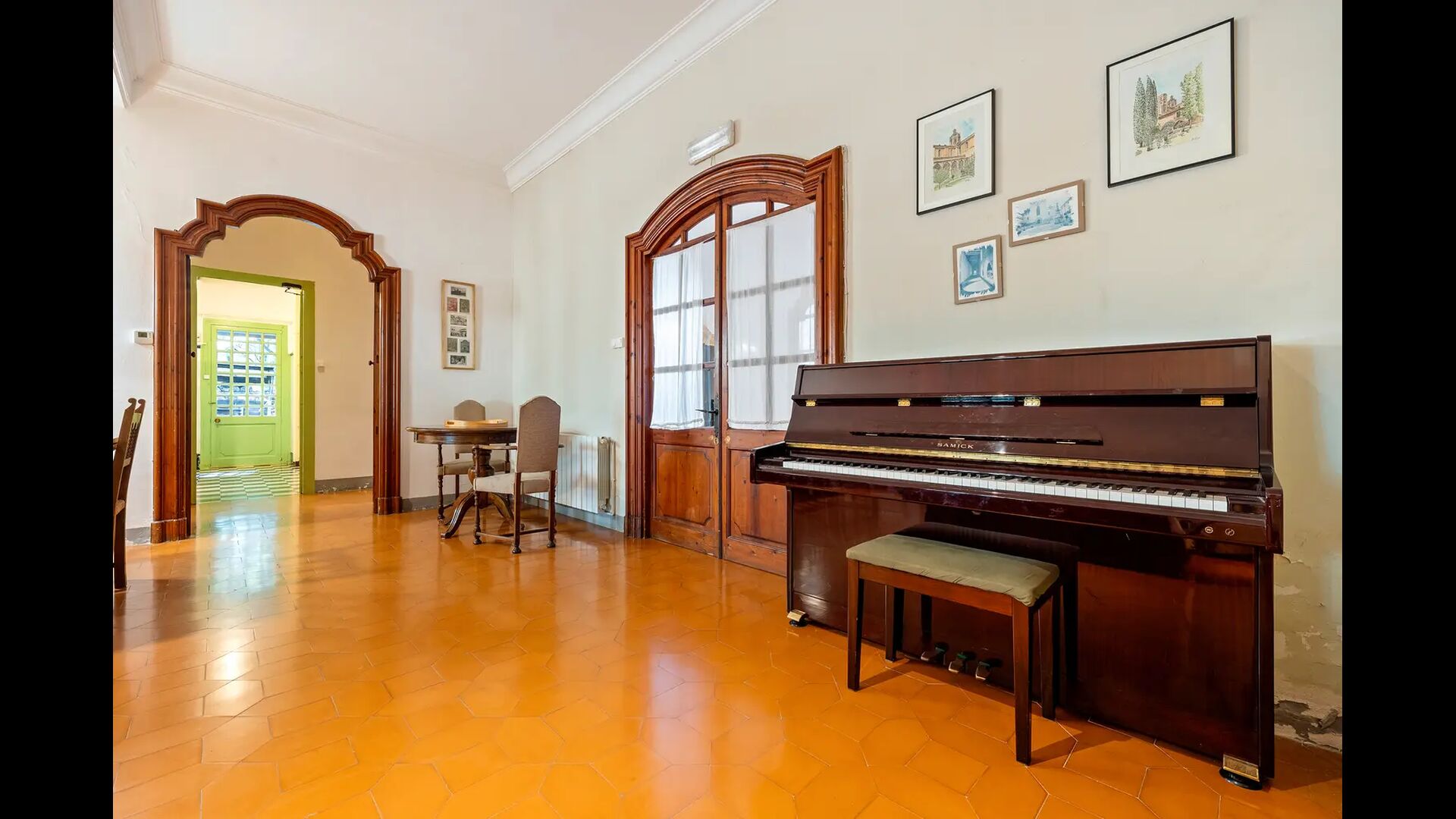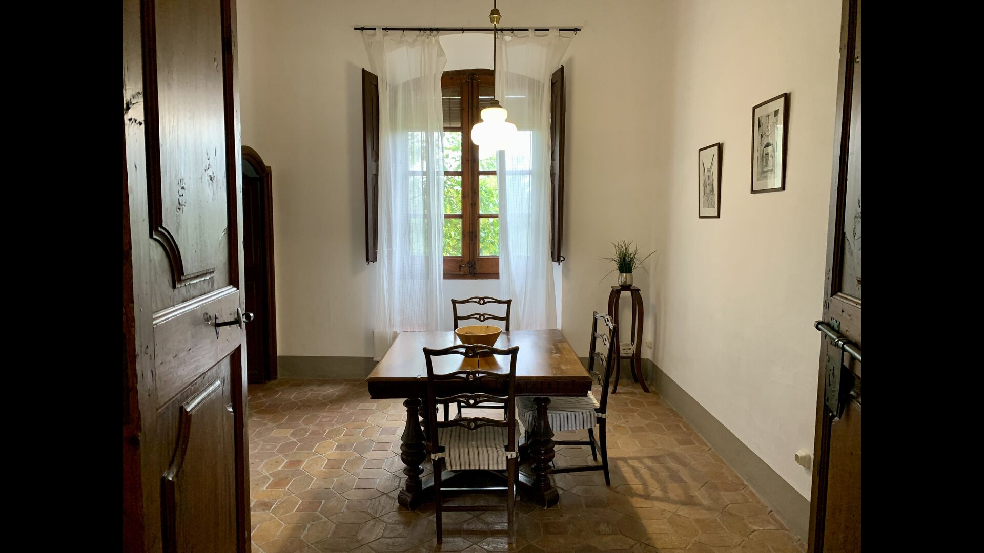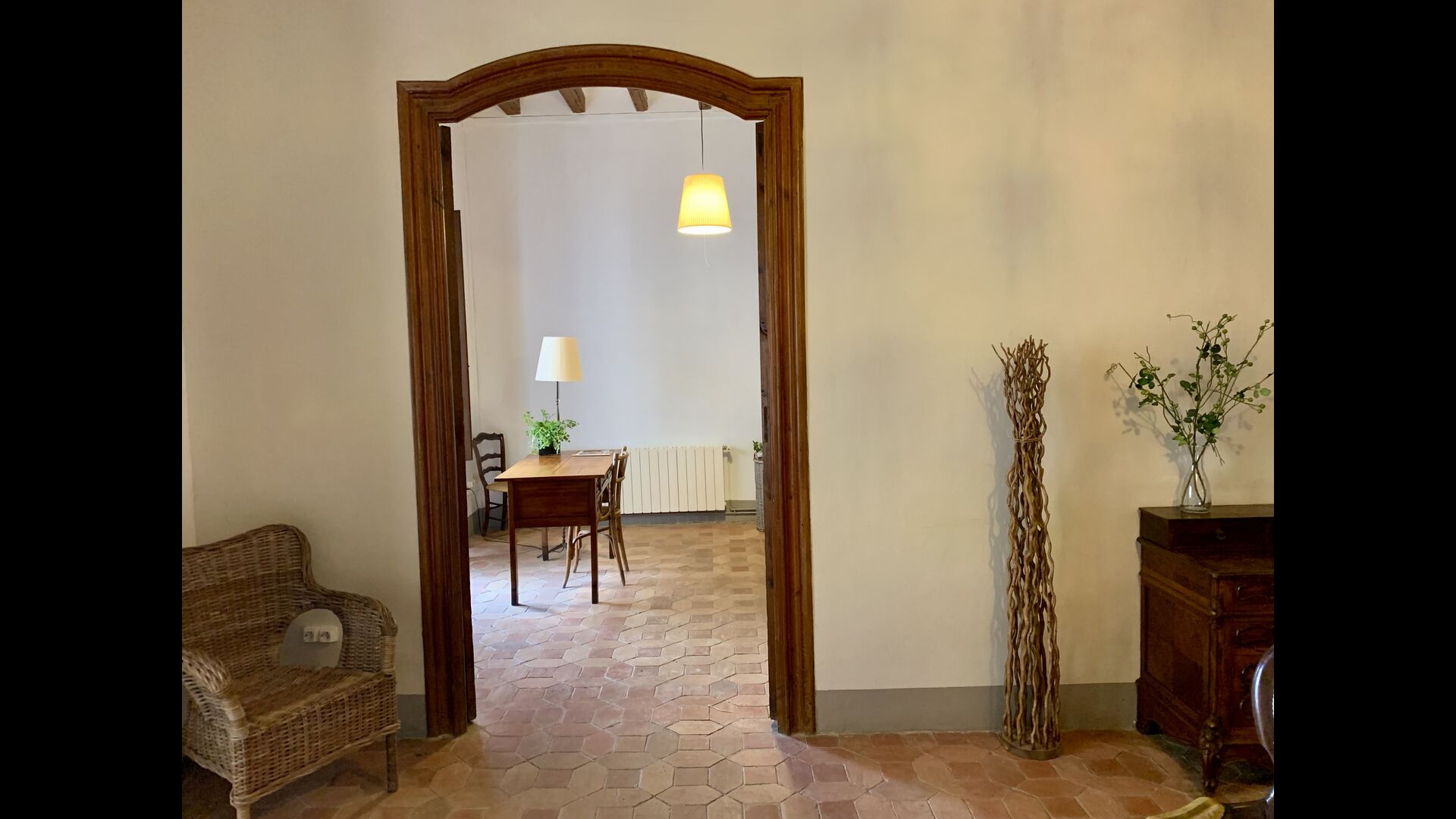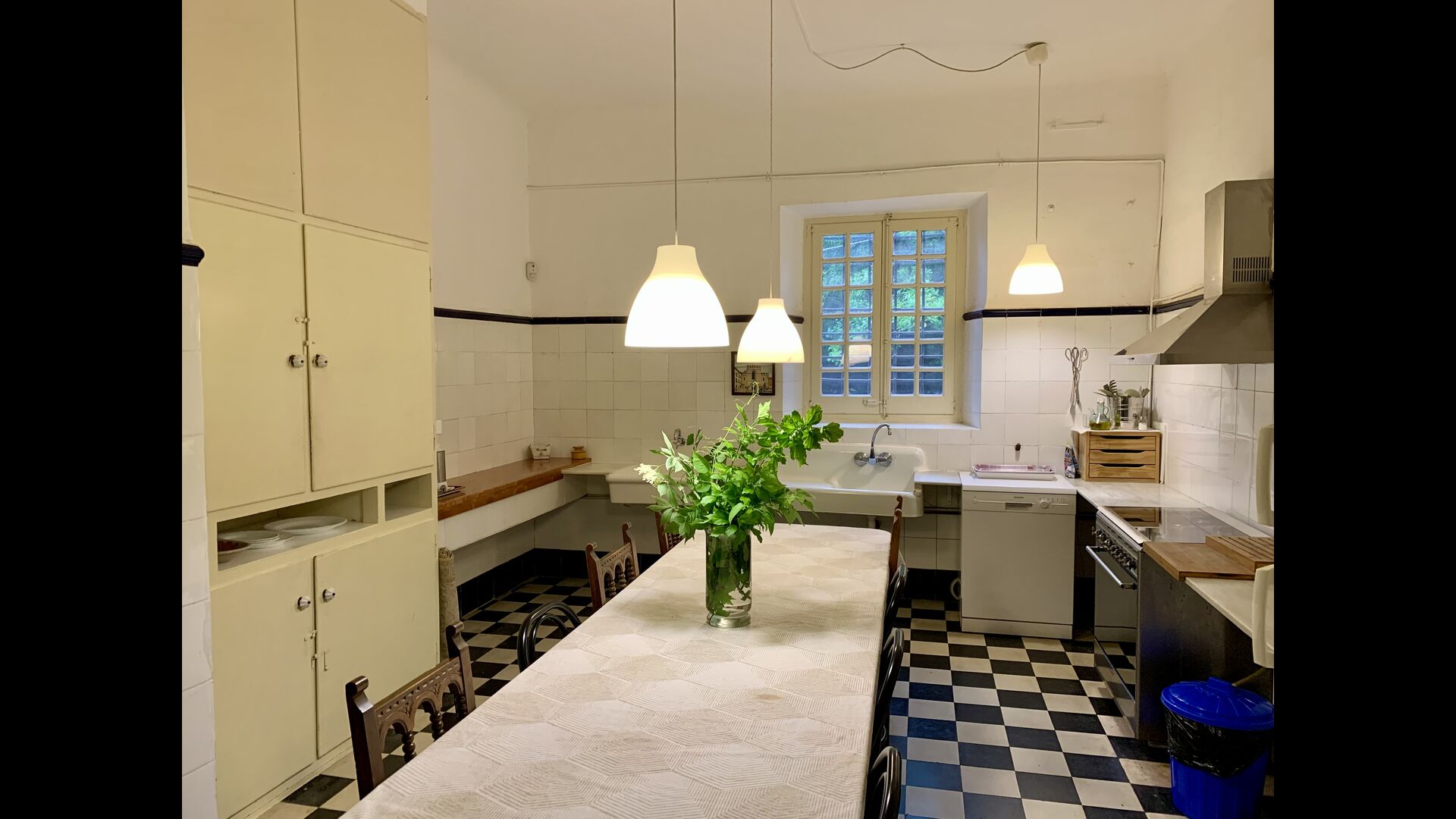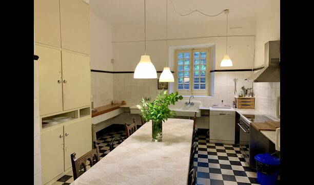 On remarque tout de suite que les plafonds sont hauts– pour être plus précis : 3,8 m. Ces dimensions sont dues au fait que la maison a été construite pour des moines retraités, qui ont mené une vie rude et contemplative. L'espace devrait leur donner plus de liberté et éviter qu'ils ne pensent trop à eux-mêmes.