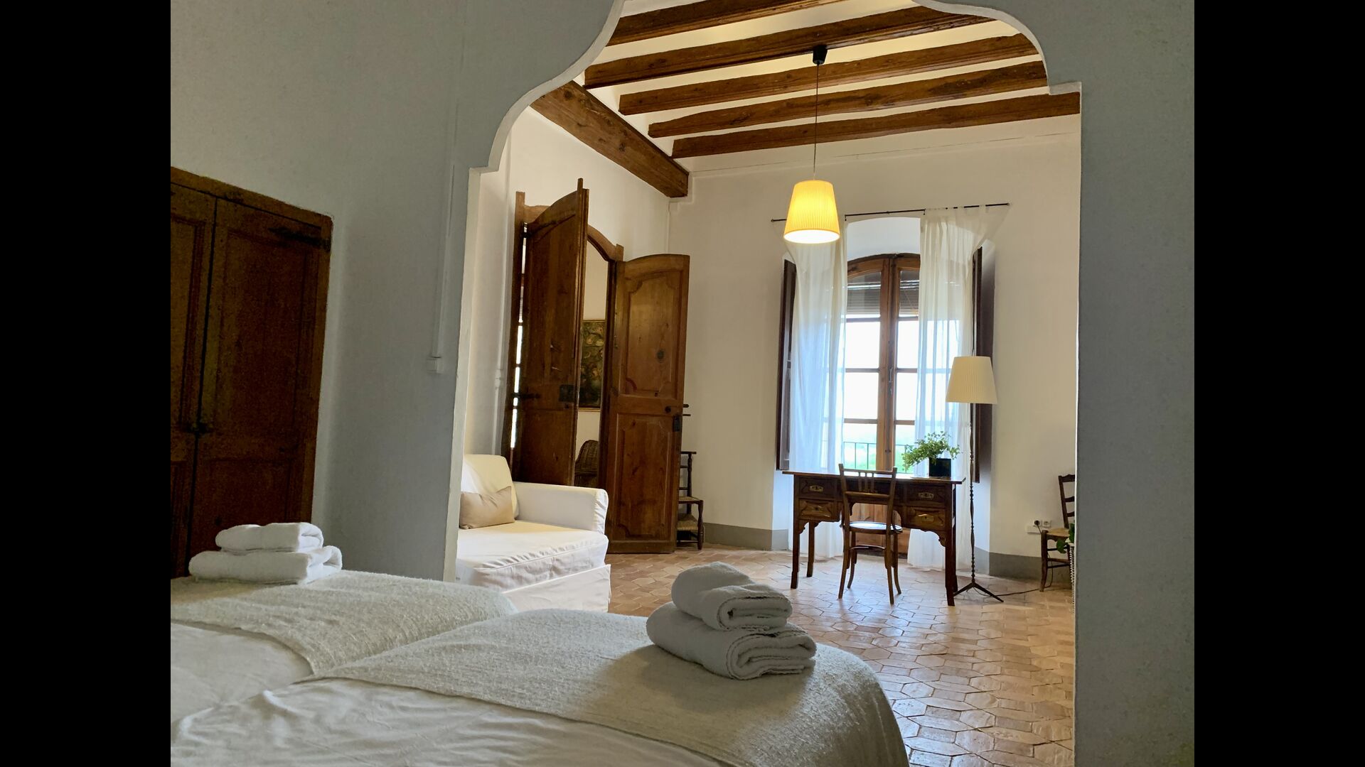 La Masia del Monestir esten bref, une maison de vacances tout à fait unique. Ce genre de situation et d'histoire concernant une maison de vacances est difficile à trouver. Elle est intégrée dans un grand monastère antique et a été autrefois fréquemment utilisée par le monastère – elle a notamment été la maison d'un prêtre. De plus, l'intérieur est d'une classe à part : les chambres ont de hauts plafonds et sont équipées de meubles anciens et somptueux. Lorsque vous arrivez dans la impressionnante cour du monastère par l'entrée presque majestueuse, la maison de vacances se trouve dans le coin gauche, à côté du monastère, qui a été fondé au 12e siècle et est ainsi l'un des bâtiments historiques les plus importants de la région. C'est un privilège pur de s'asseoir sur l'un des balcons de la maison et d'admirer la belle et historique cour du monastère.