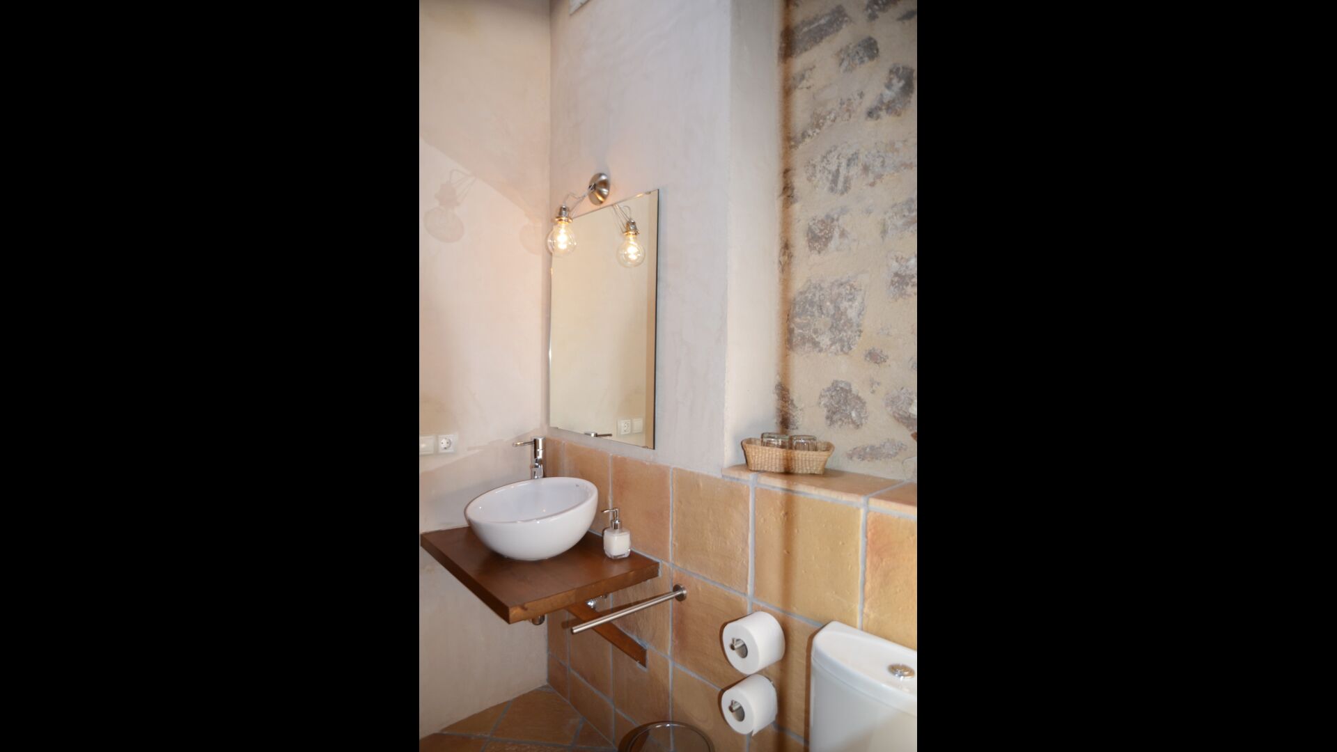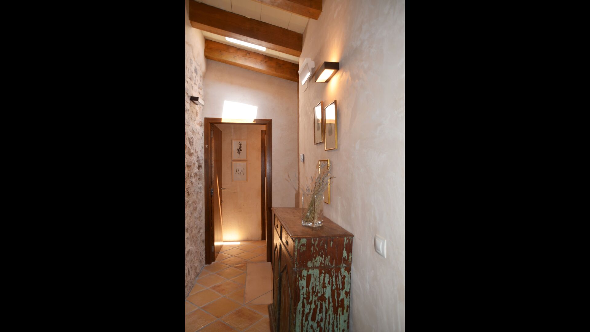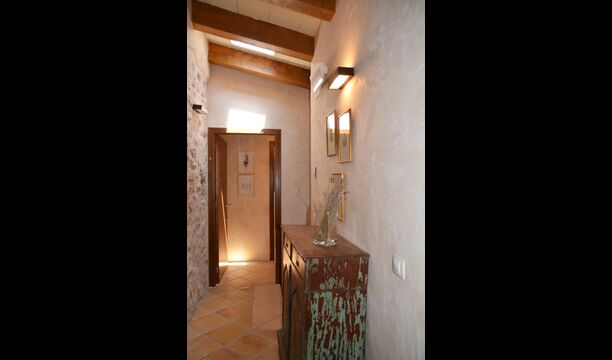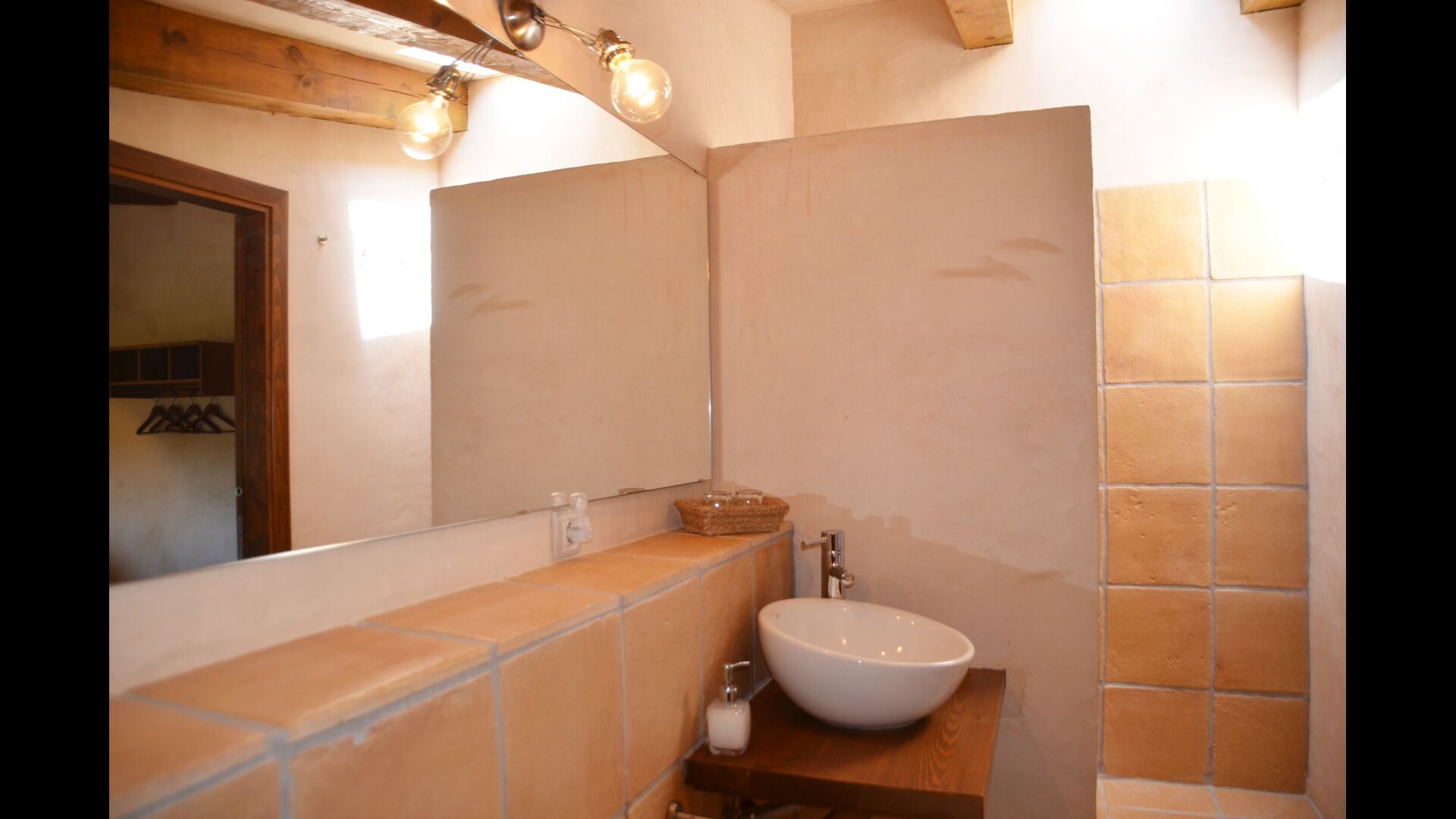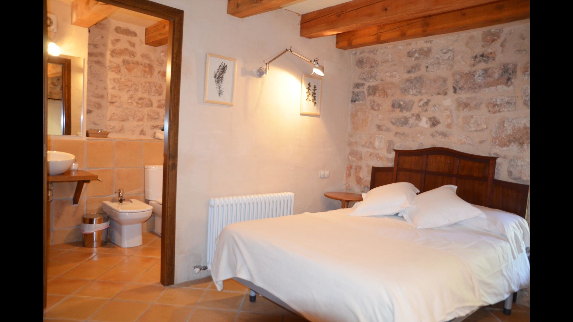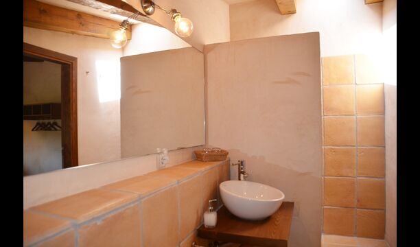 Au premier étage, vous trouverez les 3 chambres doubles restantes, deux avec des lits doubles et une avec deux lits simples. Toutes les chambres ont une salle de bain attenante. Si vous êtes plus de 8 personnes, il y a deux lits supplémentaires pour les enfants. Les murs en calcaire maintiennent la température agréable en été.