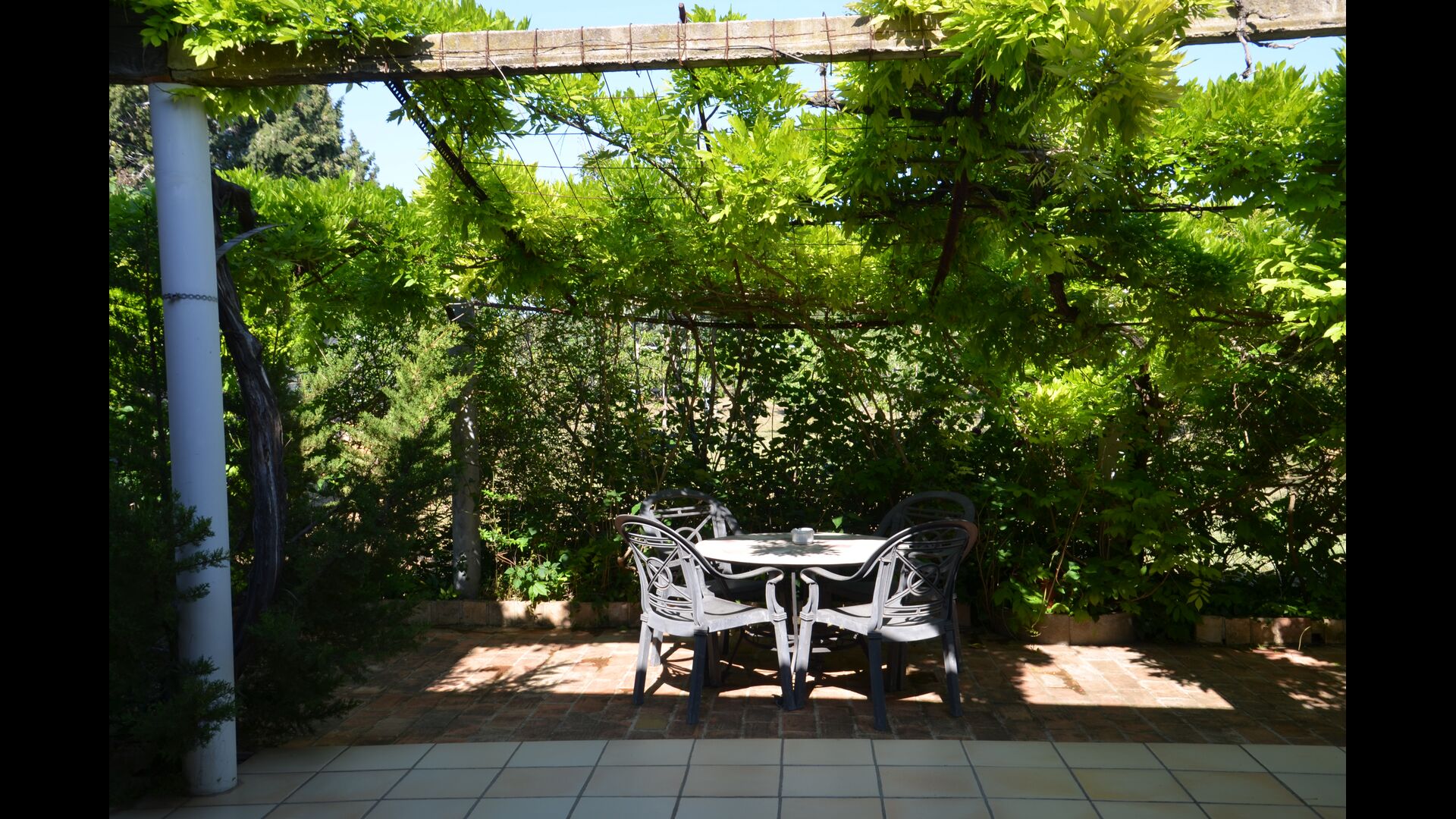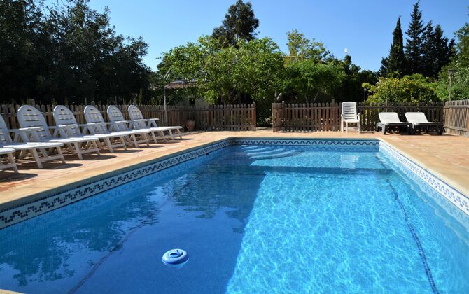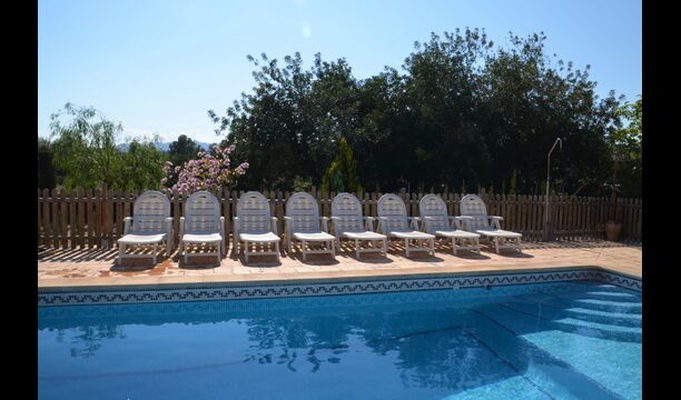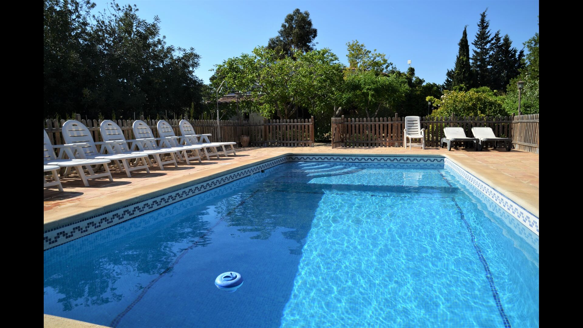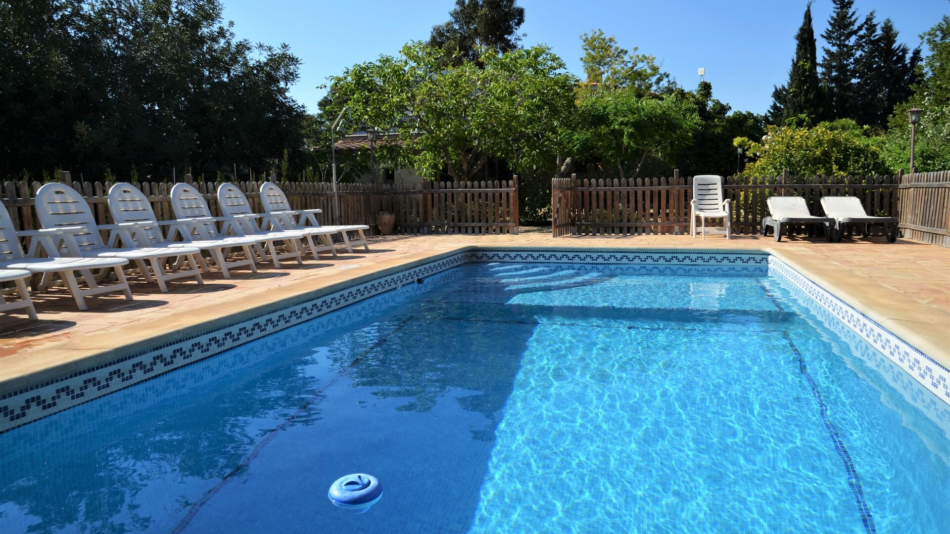 - Piscine privée et clôturée (porte d'entrée avec verrou, pour éviter les accidents des enfants), entourée de grande terrasse avec chaises longues, douche, para-sols et éclairage nocturne.
