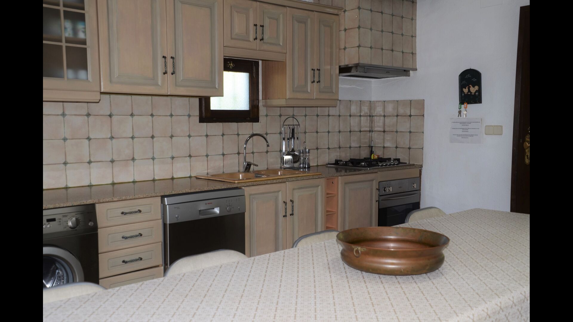 . Grande cuisine complètement équipée: lava-vaiselle, machine à laver, frigo/congélateur, cuisinière 5 feux/four à gaz, micro-ondes, bateur, bouilloire, grille-pain, presse-agrume, cafetières et tous les ustensiles nécessaire pour cuisinier: pôele, casseroles, bols, saladières, etc..