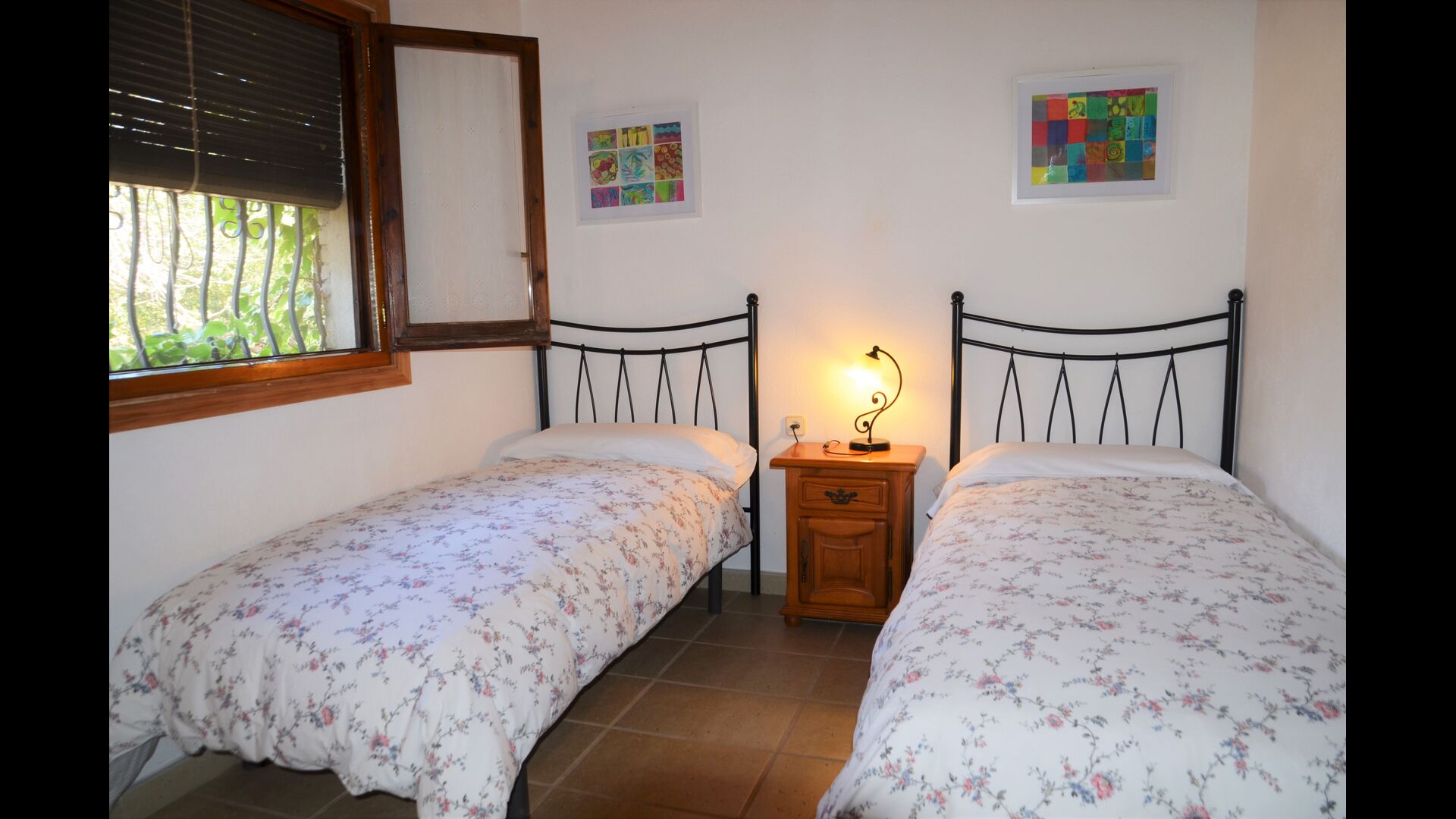 . 1 chambre double (2 lits simples 0,90 x 1,90 m) avec moustiquaire à la fenêtre.