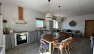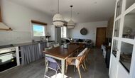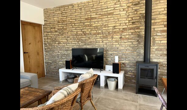Au rez-de-chaussée, vous trouverez l'un des deux salons - lumineux, spacieux et très cosy, la pièce dispose également d'une cuisine intégrée avec un poêle à bois et une table à manger de bonne taille. Le salon comprend également un excellent canapé, une grande table basse, des chaises confortables, une télévision à écran plat et deux enceintes, reproduisant un effet home-cinéma. La cuisine est équipée de tous les services attendus d'une maison de vacances moderne.