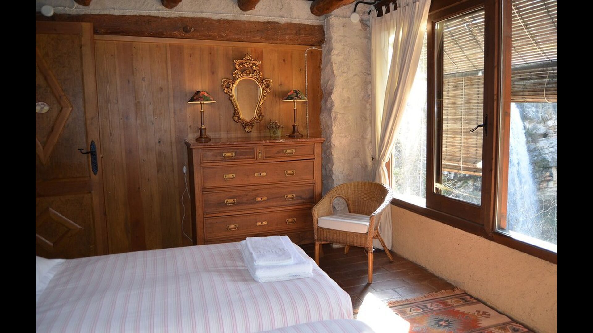 Les propriétaires Pilar et Jordi ont fait un travail fantastique, en réformant soigneusement le moulin à eau et en le meubleant avec des meubles de bon goût, en préservant son authenticité. Le bâtiment a plusieurs étages et est construit directement sur le flanc d'un rocher, qui sert en fait de mur de la maison.