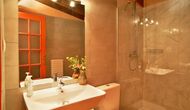 Si vous montez les escaliers dans la salle commune, vous rencontrerez les belles et spacieuses chambres à coucher. Il y a quatre chambres doubles, trois d'entre elles avec des lits doubles et une avec des lits jumeaux. Toutes les chambres sont associées à leur propre salle de bain (en suite).