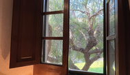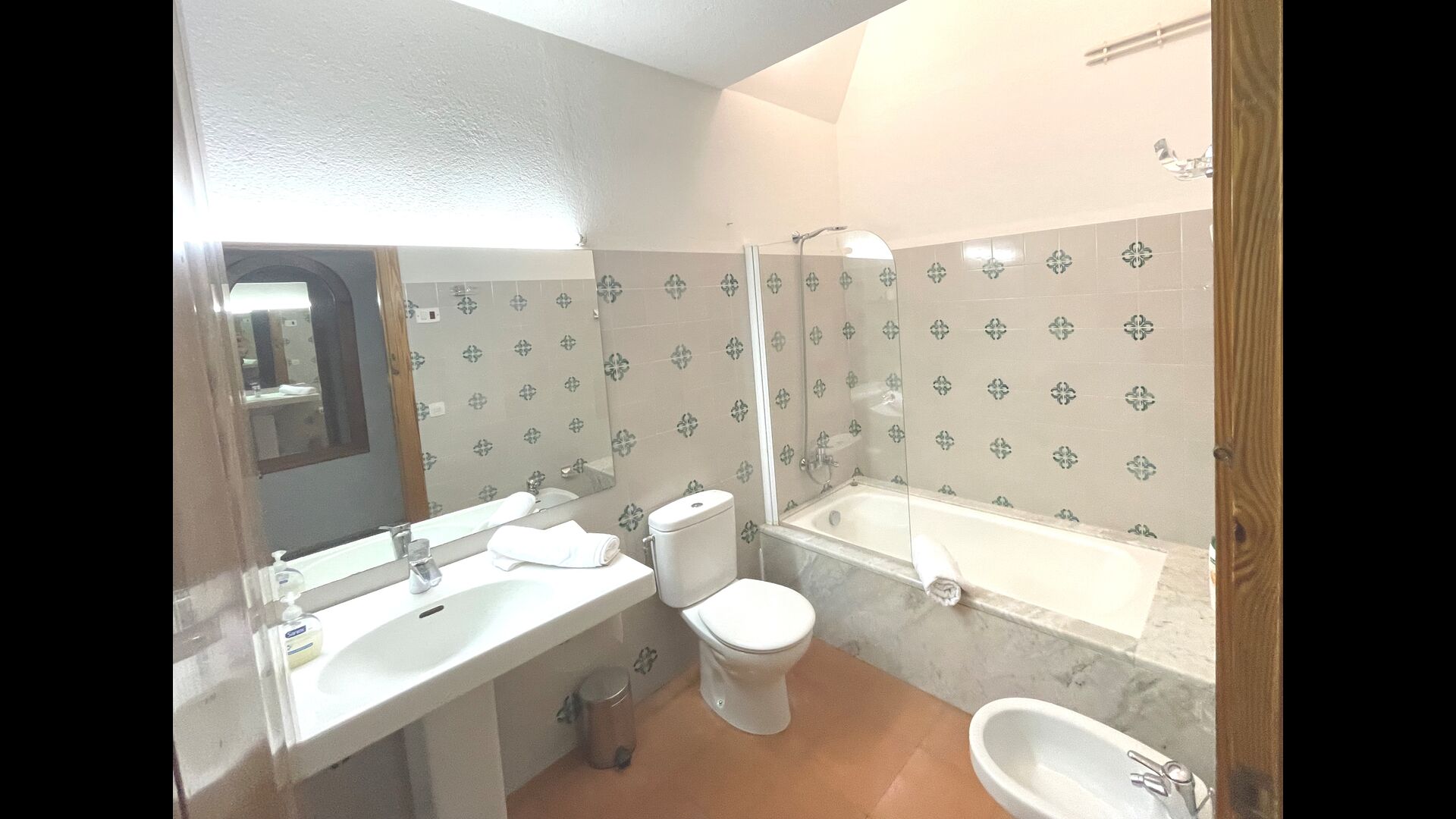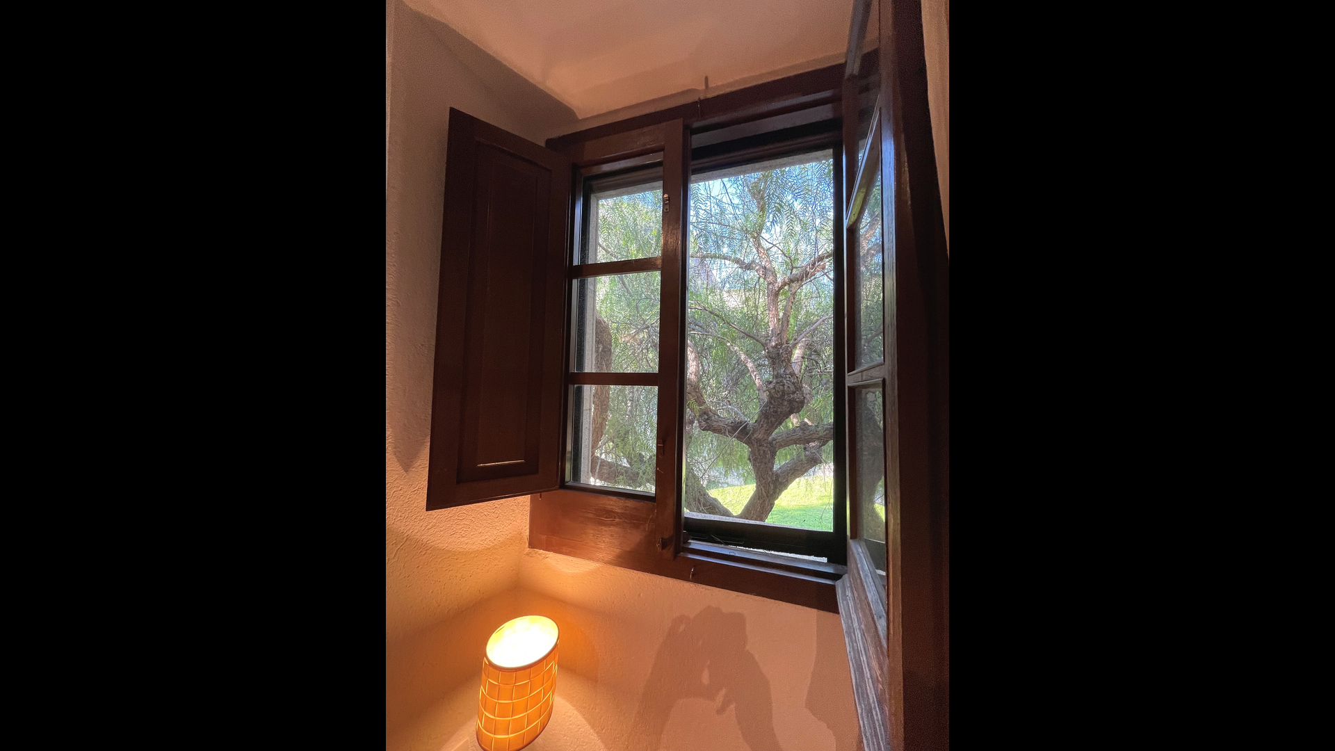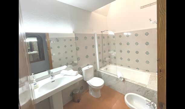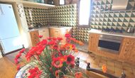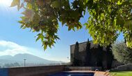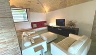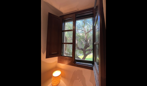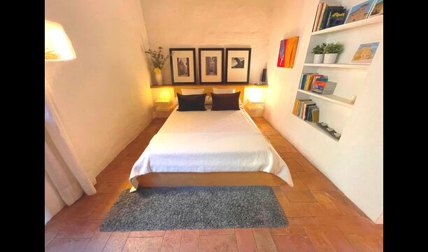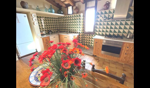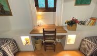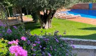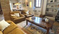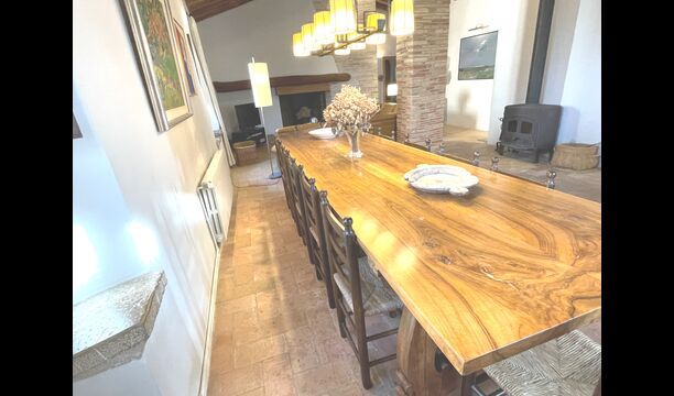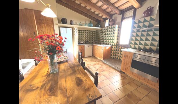 Au même étage, au premier étage, se trouve un salon très confortable avec une cheminée à foyer ouvert, des canapés confortables et une télévision. Juste derrière les canapés, vous trouverez une longue table en bois où vous pourrez prendre vos repas faits maison. La cuisine est rustique et bien équipée avec les outils et installations nécessaires. Quatre des chambres sont climatisées, tandis que la dernière (la chambre des enfants) qui est plus fraîche a un ventilateur. La climatisation est également disponible dans les parties communes.