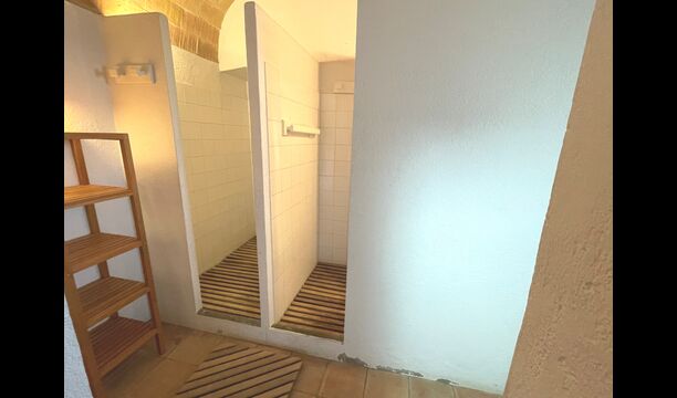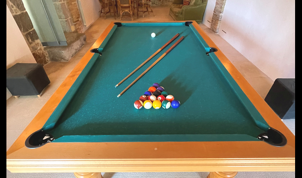 Vous pouvez également vous rafraîchir dans la piscine de 12 mètres de long et 6 mètres de large. La profondeur varie de 1,5 m à 2,5 m, il y a donc beaucoup d'espace pour diverses activités et pour jouer dans la piscine. A côté de la piscine, il y a une "buanderie" avec salles de bains et douches. Cela signifie que vous n'avez pas à aller jusqu'au bout de la maison, et après une visite à la plage, vous pouvez simplement prendre une douche rapide ici - sans traîner de sable dans la maison de vacances. La piscine dispose également d'un éclairage intégré pour que vous puissiez nager le soir sans aucun problème.