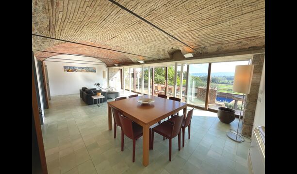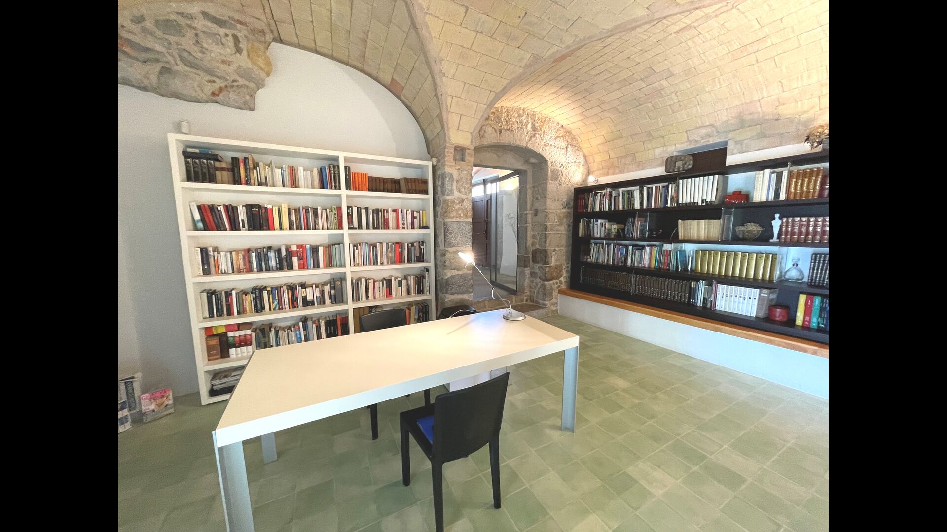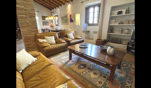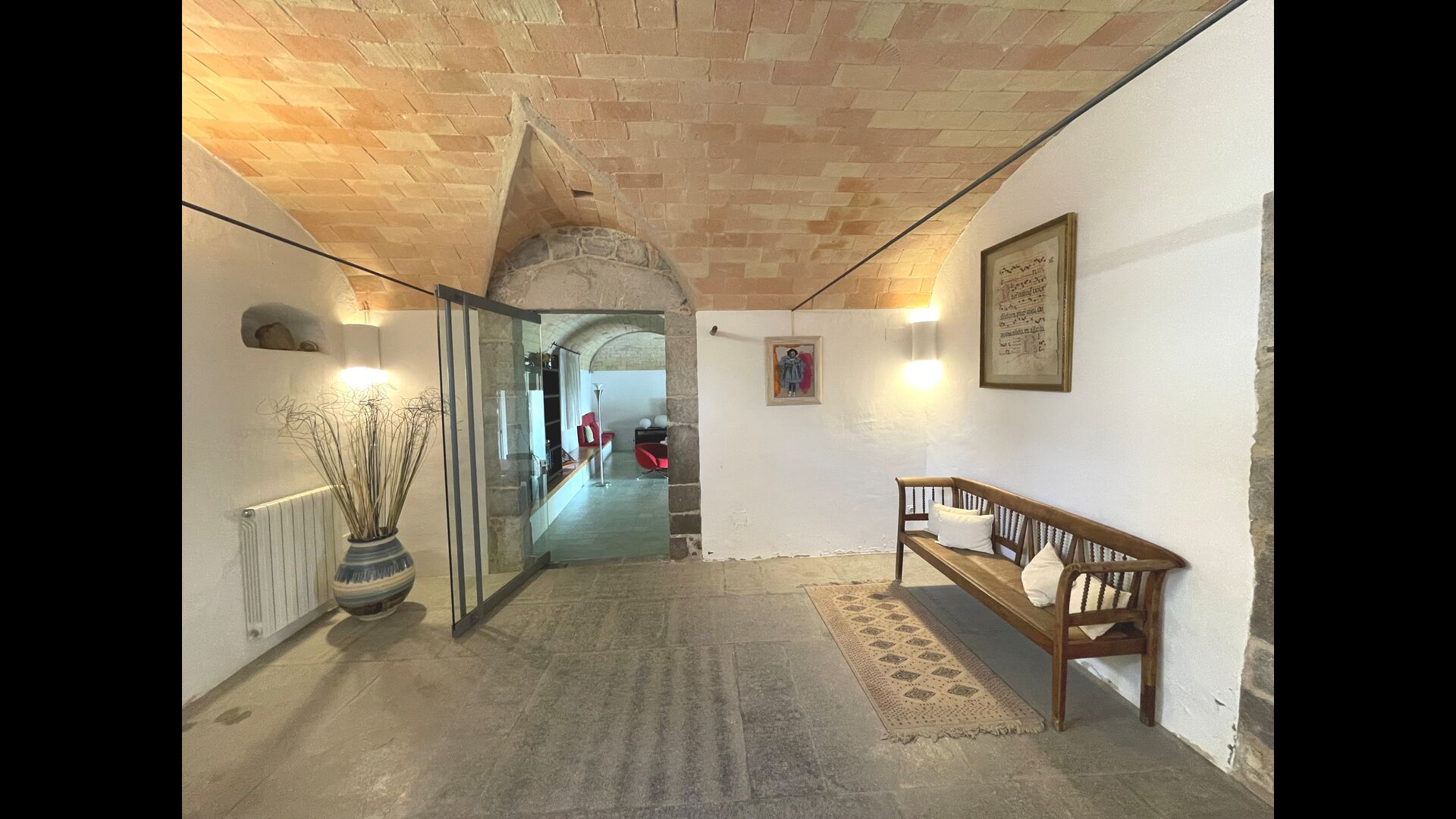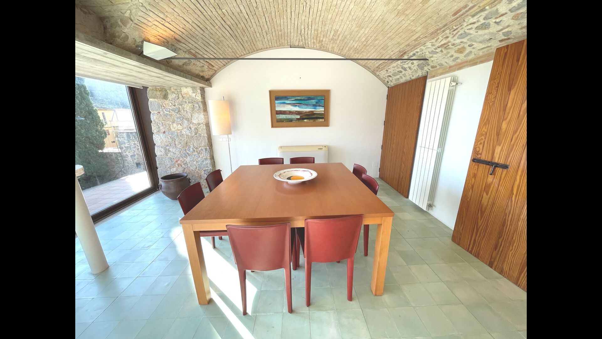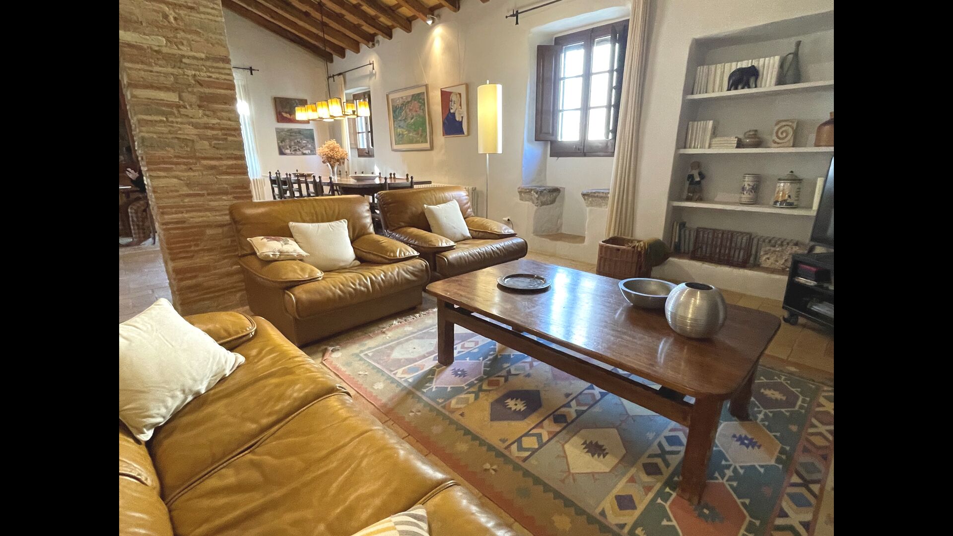 Lorsque vous entrez à Can Maria de Montrí, vous rencontrez un très beau hall avec un sol en pierre classique. À droite de l'entrée, il y a l'un des trois salons de la maison. Cela a un plafond de pierre voûté unique. Voici quelques meubles très confortables et élégants, et le salon débouche dans une mini bibliothèque où vous pouvez lire un livre dans cette pièce très spacieuse. De là, il y a un accès à deux autres salles: Tout d'abord, il y a une salle de jeux avec table de billard et système de musique. À côté de cela, vous trouverez un coin salon avec un canapé, une table à manger pouvant accueillir 10 personnes et un plafond incurvé. Dans cette pièce, l’un des murs est en verre, offrant une magnifique vue panoramique sur le jardin et la campagne. De plus, il y a l'air conditionné dans la chambre. Vous pouvez également choisir de faire quelques pas en avant, vous permettant ainsi de sortir sur la terrasse et de profiter du soleil. À partir de là, vous pouvez surveiller les enfants dans la piscine et un escalier à droite mène au jardin.