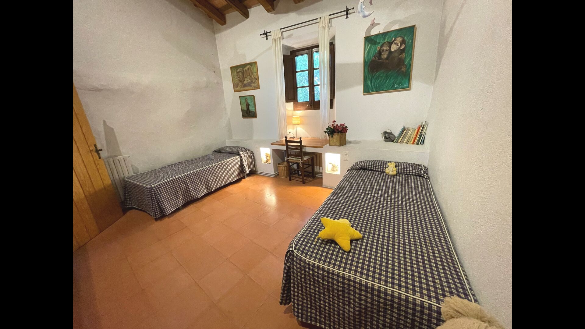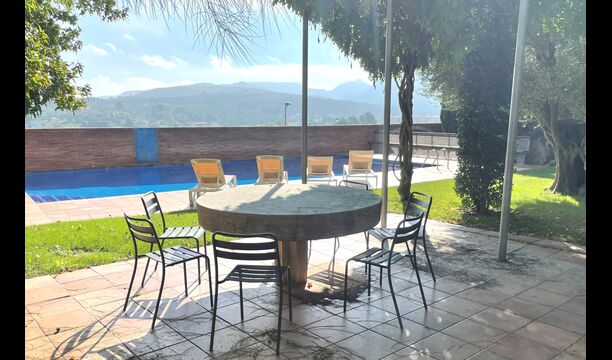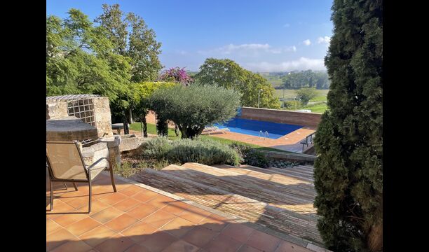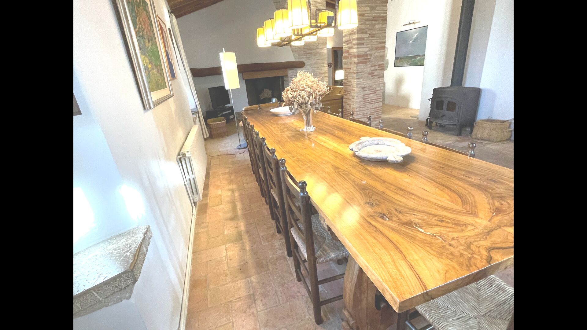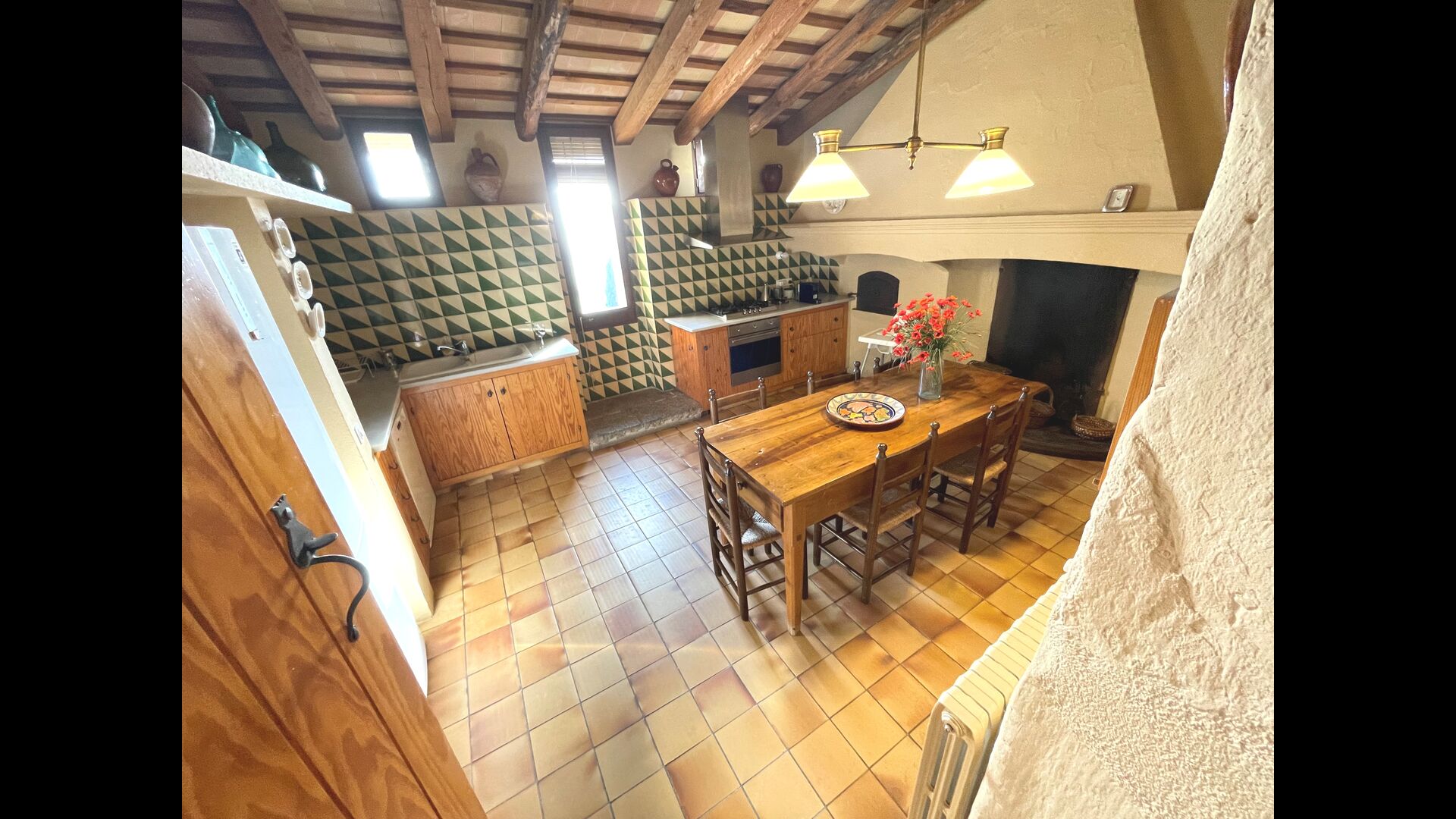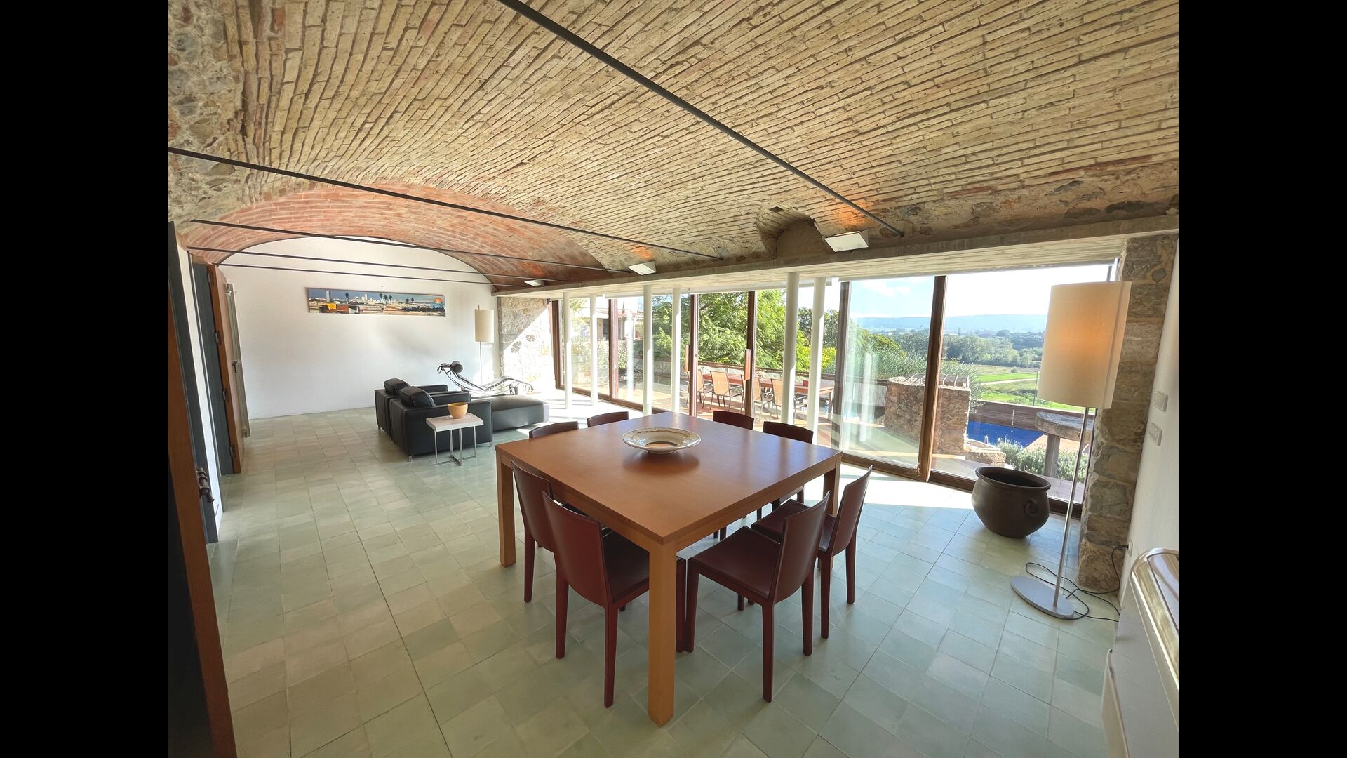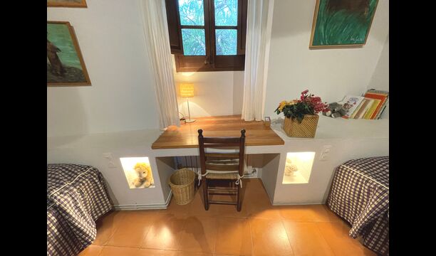 Lorsque vous entrez à Can Maria de Montrí, vous rencontrez un très beau hall avec un sol en pierre classique. À droite de l'entrée, il y a l'un des trois salons de la maison. Cela a un plafond de pierre voûté unique. Voici quelques meubles très confortables et élégants, et le salon débouche dans une mini bibliothèque où vous pouvez lire un livre dans cette pièce très spacieuse. De là, il y a un accès à deux autres salles: Tout d'abord, il y a une salle de jeux avec table de billard et système de musique. À côté de cela, vous trouverez un coin salon avec un canapé, une table à manger pouvant accueillir 10 personnes et un plafond incurvé. Dans cette pièce, l’un des murs est en verre, offrant une magnifique vue panoramique sur le jardin et la campagne. De plus, il y a l'air conditionné dans la chambre. Vous pouvez également choisir de faire quelques pas en avant, vous permettant ainsi de sortir sur la terrasse et de profiter du soleil. À partir de là, vous pouvez surveiller les enfants dans la piscine et un escalier à droite mène au jardin.