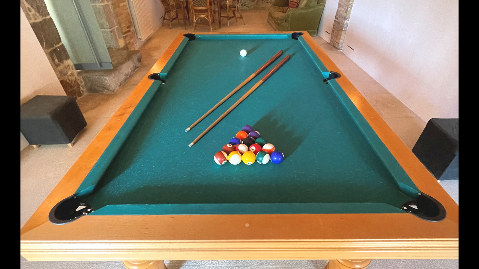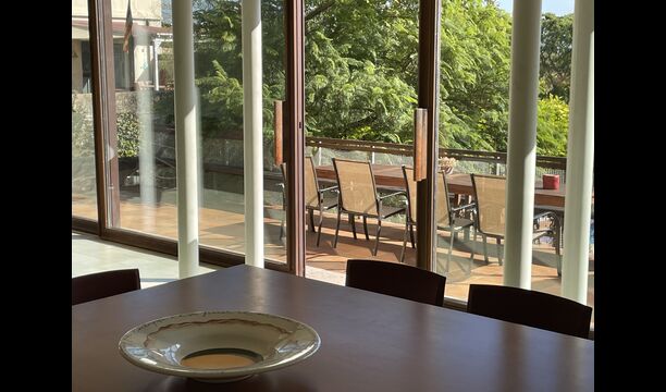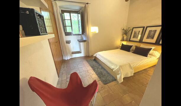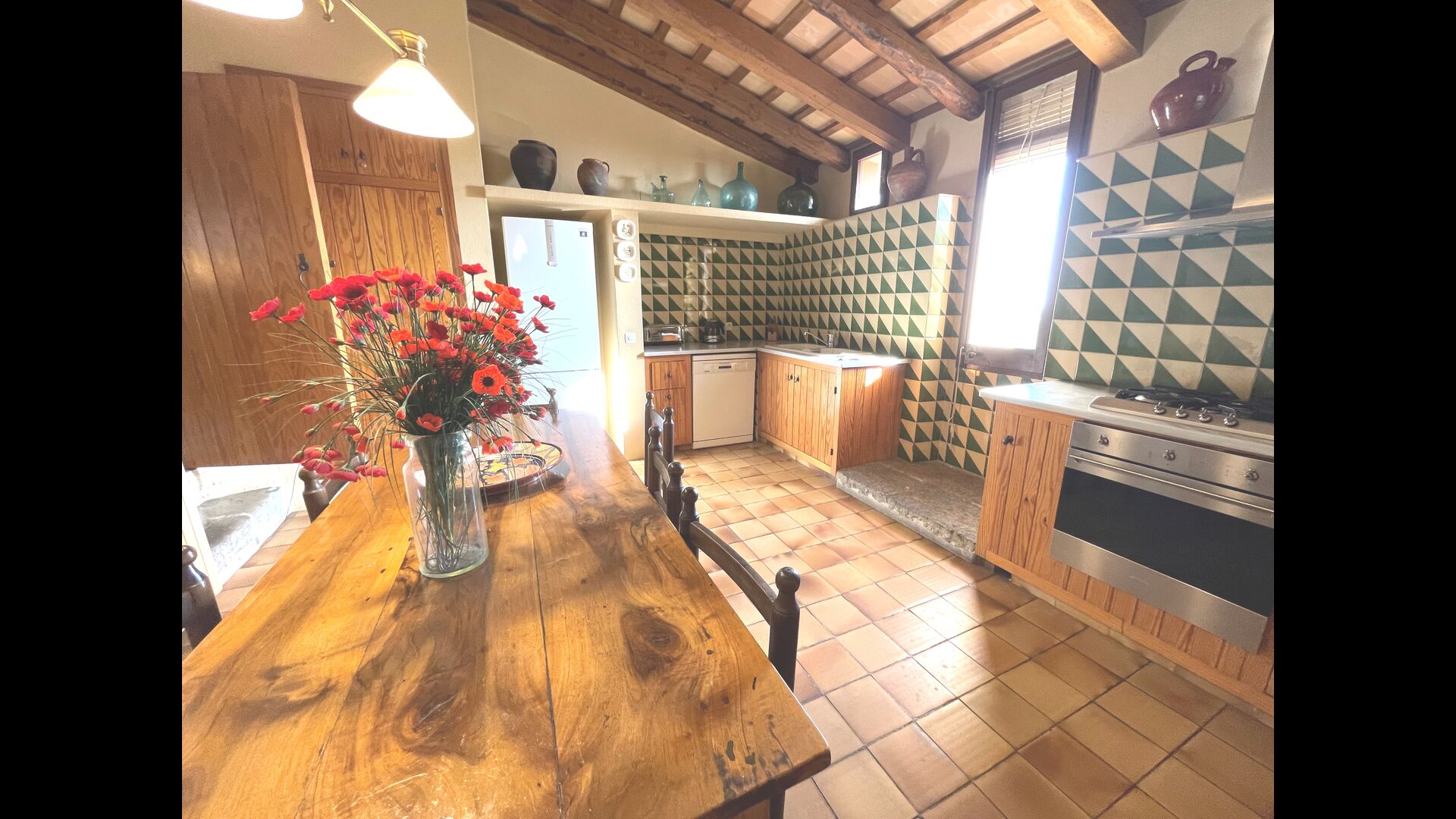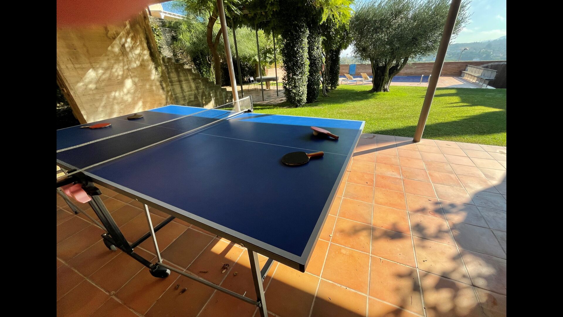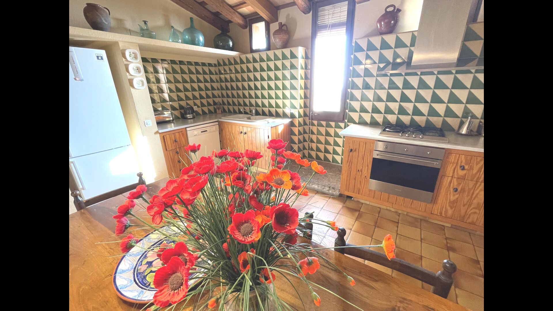 Lorsque vous entrez à Can Maria de Montrí, vous rencontrez un très beau hall avec un sol en pierre classique. À droite de l'entrée, il y a l'un des trois salons de la maison. Cela a un plafond de pierre voûté unique. Voici quelques meubles très confortables et élégants, et le salon débouche dans une mini bibliothèque où vous pouvez lire un livre dans cette pièce très spacieuse. De là, il y a un accès à deux autres salles: Tout d'abord, il y a une salle de jeux avec table de billard et système de musique. À côté de cela, vous trouverez un coin salon avec un canapé, une table à manger pouvant accueillir 10 personnes et un plafond incurvé. Dans cette pièce, l’un des murs est en verre, offrant une magnifique vue panoramique sur le jardin et la campagne. De plus, il y a l'air conditionné dans la chambre. Vous pouvez également choisir de faire quelques pas en avant, vous permettant ainsi de sortir sur la terrasse et de profiter du soleil. À partir de là, vous pouvez surveiller les enfants dans la piscine et un escalier à droite mène au jardin.