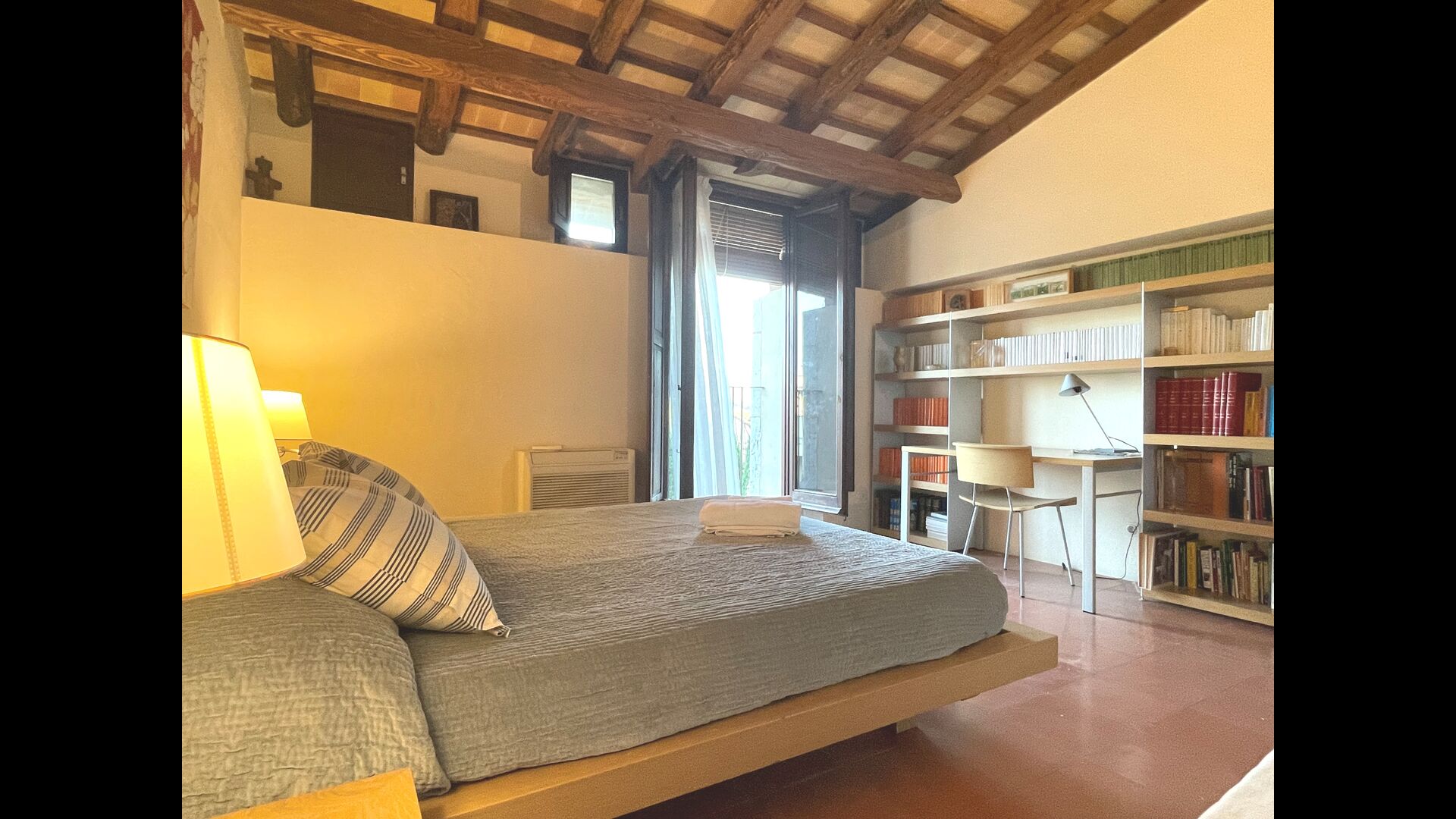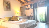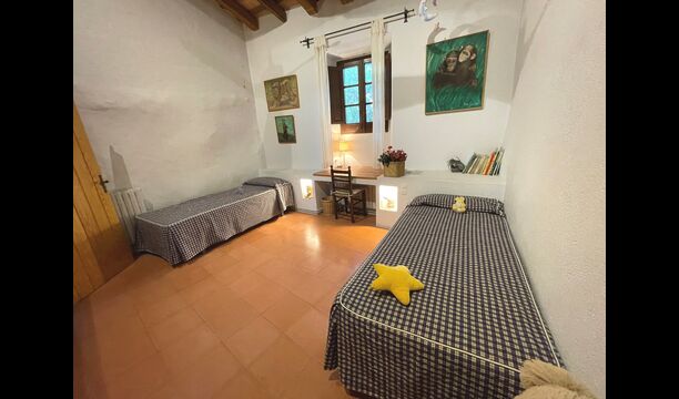Dans le hall d'entrée susmentionné, il y a un escalier rustique en pierre qui mène au premier étage où se trouvent les chambres confortables de la maison de vacances. Au total, il y a 4 chambres doubles et 1 chambre simple. Il y a 3 lits doubles et 3 lits simples. Il est possible d'installer un lit supplémentaire dans l'une des chambres doubles. Toutes les chambres ont en commun l’espace et le beau plafond en pente et à poutres apparentes. Les chambres ont soit la climatisation ou un ventilateur.