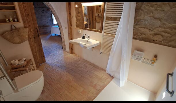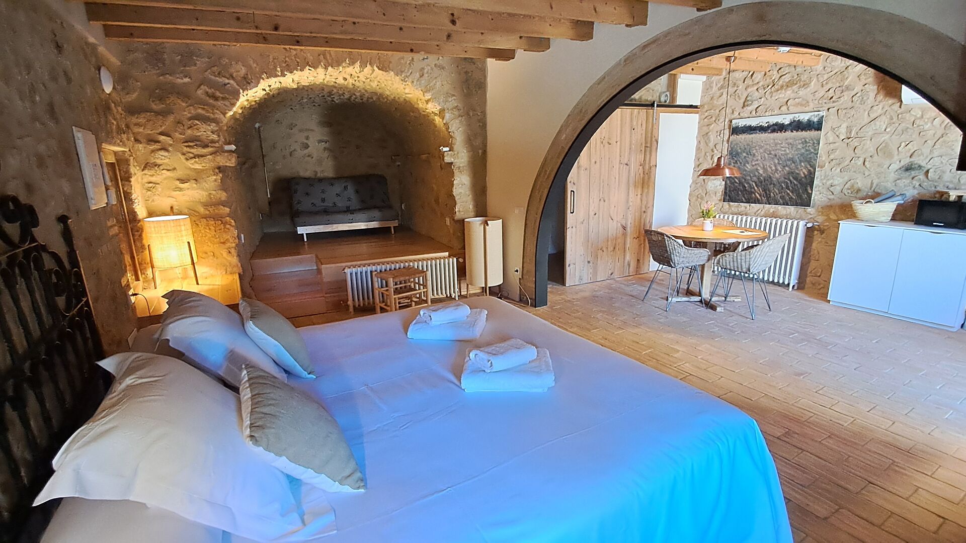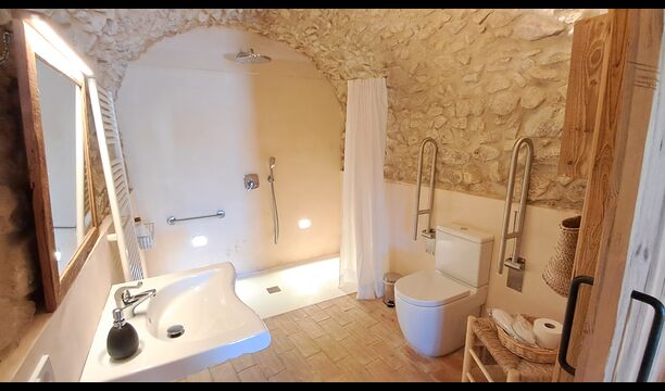 Sur la propriété de 10 000 m2 de Can Matin, vous trouverez l'appartement à louer séparément de Llevant, un studio de 45 m2 avec de beaux espaces ! Accessible depuis le jardin et adapté aux hôtes et visiteurs à mobilité réduite, il offre aux petits groupes de voyageurs un excellent lieu de séjour et de détente. - quel que soit l'âge ou la situation de mobilité ! Vous êtes sûr de vous amuser dans la merveilleuse région de la Catalogne - avec l'excellent appartement de vacances de Can Matin – Llevant comme votre port d'attache !