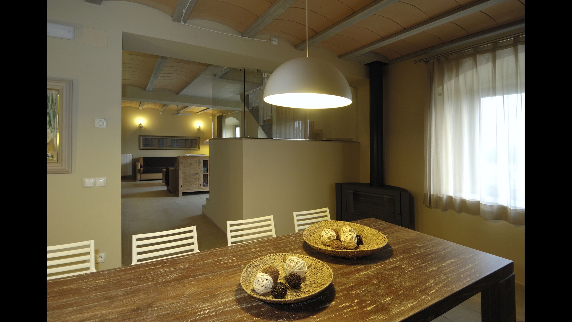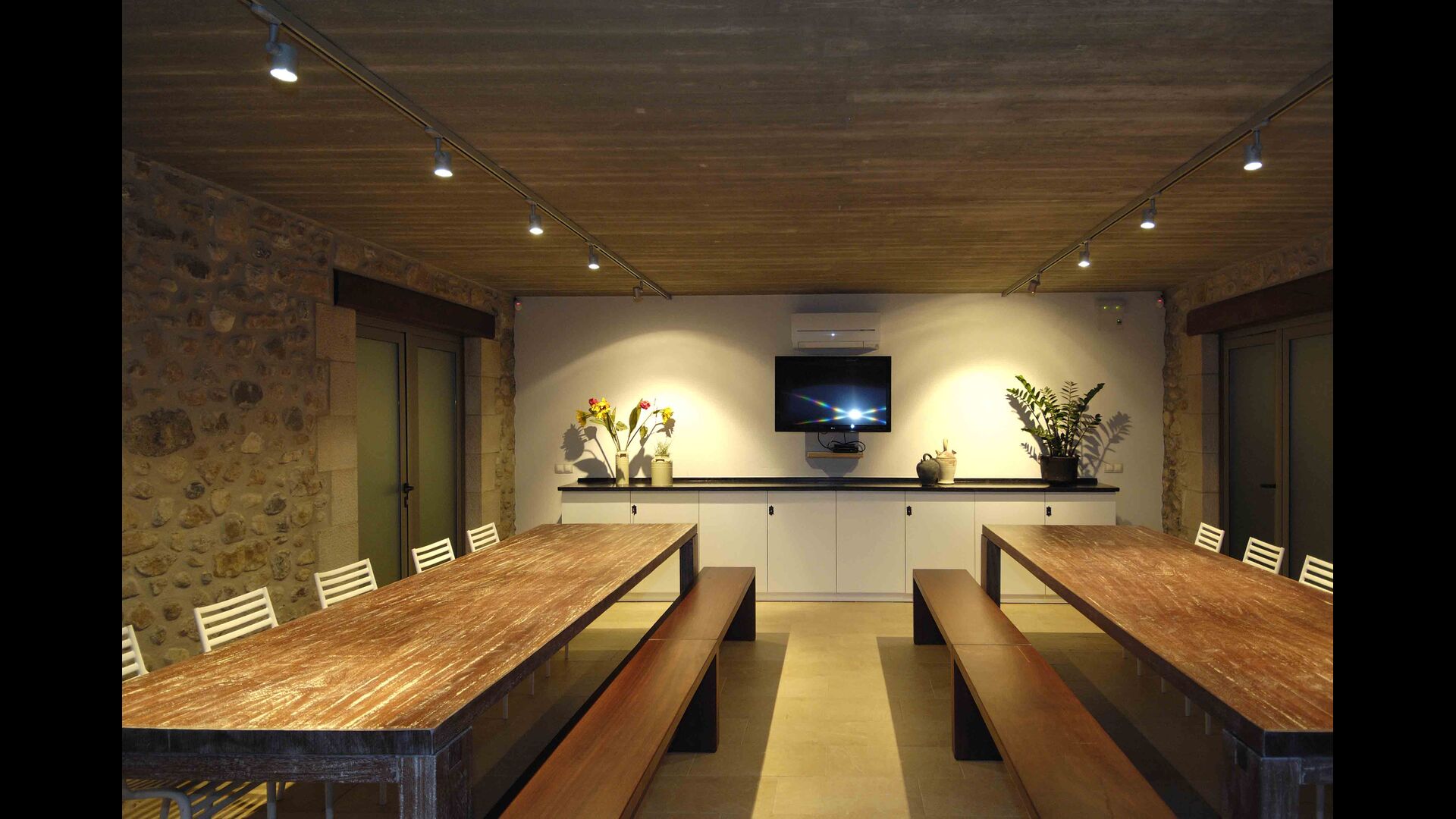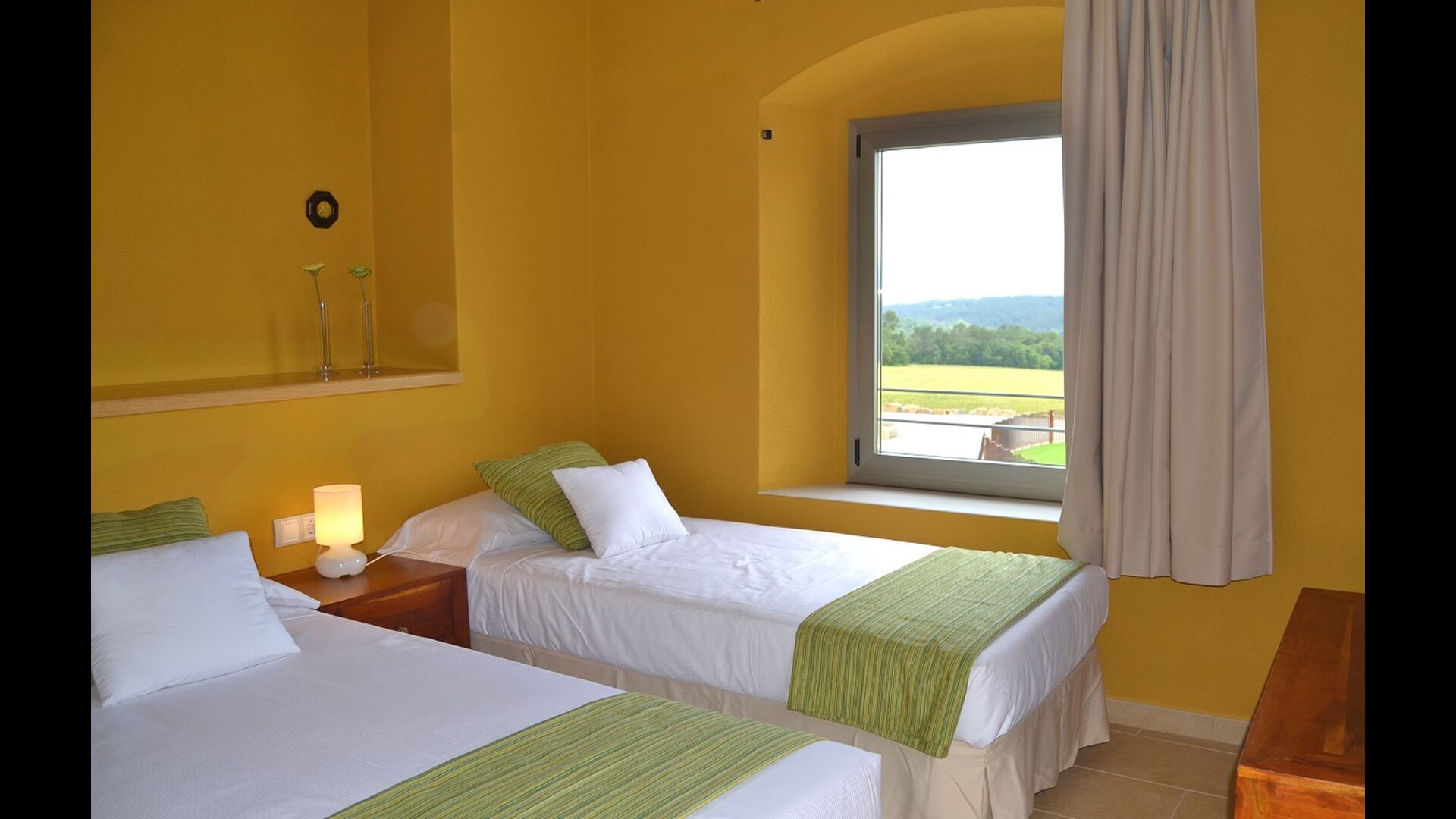 Masia Plañellas se compose de deux bâtiments identiques de 5 chambres chacun, ce qui offre plus d'intimité si vous êtes en grand groupe de vacances. Ces deux bâtiments sont reliés par une salle à manger où le dîner peut être apprécié. A l'étage il y a une terrasse sur le toit avec une vue magnifique sur le paysage.
