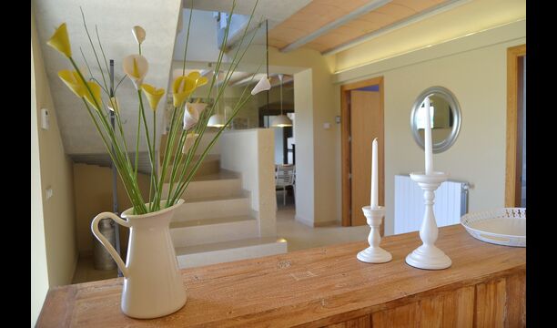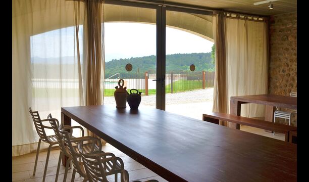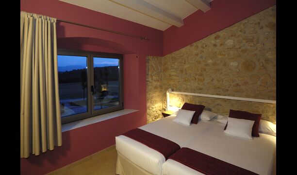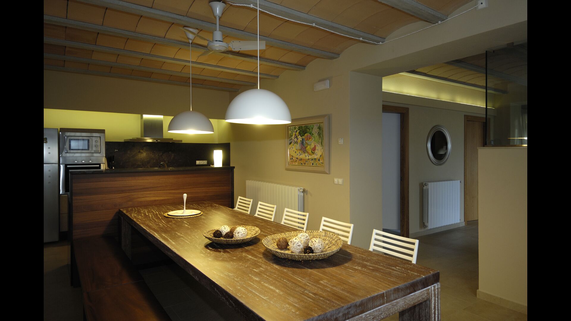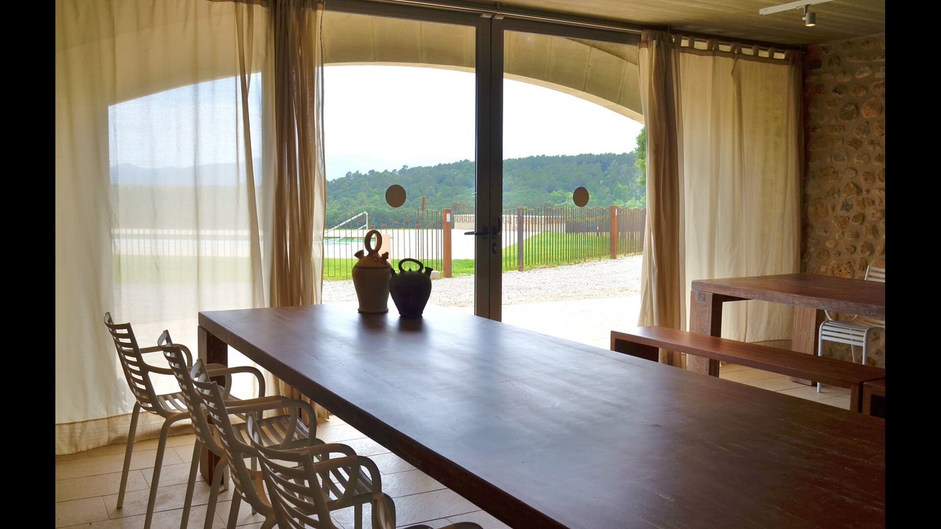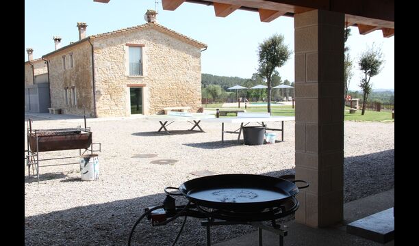 Masia Plañellas se compose de deux bâtiments identiques de 5 chambres chacun, ce qui offre plus d'intimité si vous êtes en grand groupe de vacances. Ces deux bâtiments sont reliés par une salle à manger où le dîner peut être apprécié. A l'étage il y a une terrasse sur le toit avec une vue magnifique sur le paysage.