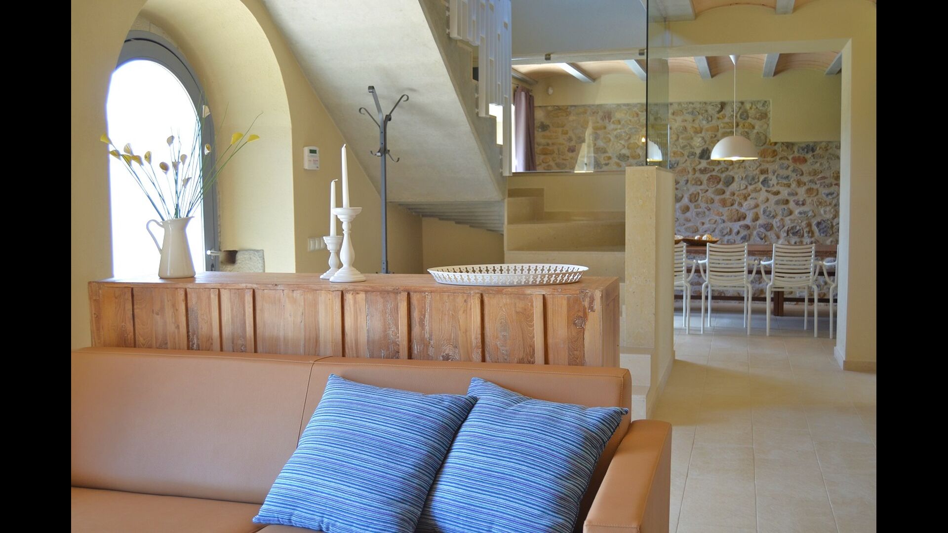 Le paysage autour de la maison n'est pas très typiquement catalan car il est plus vallonné et varié. Cependant, la maison de vacances est complètement isolée du tourisme de masse, et les environs sont très paisibles, privés et certainement authentiques. Pourtant, le village le plus proche est à seulement un kilomètre, et vous pourrez y trouver des épiceries, des cafés et des restaurants.