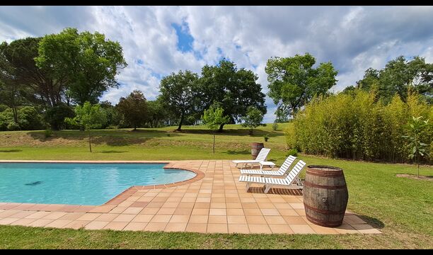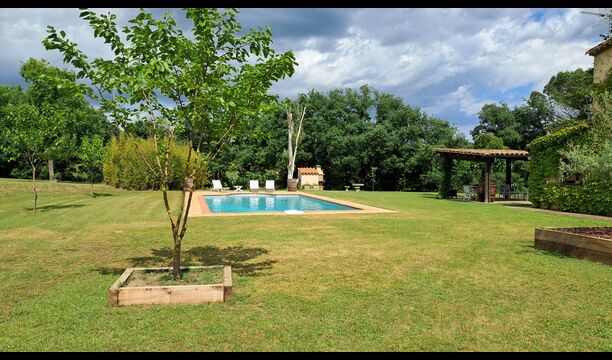 La propriété se compose de deux parties : la maison principale, disponible à la location, et une annexe séparée réservée aux propriétaires. Les hôtes auront un accès exclusif au grand jardin et à la piscine qui entourent la maison principale, garantissant ainsi intimité et confort.