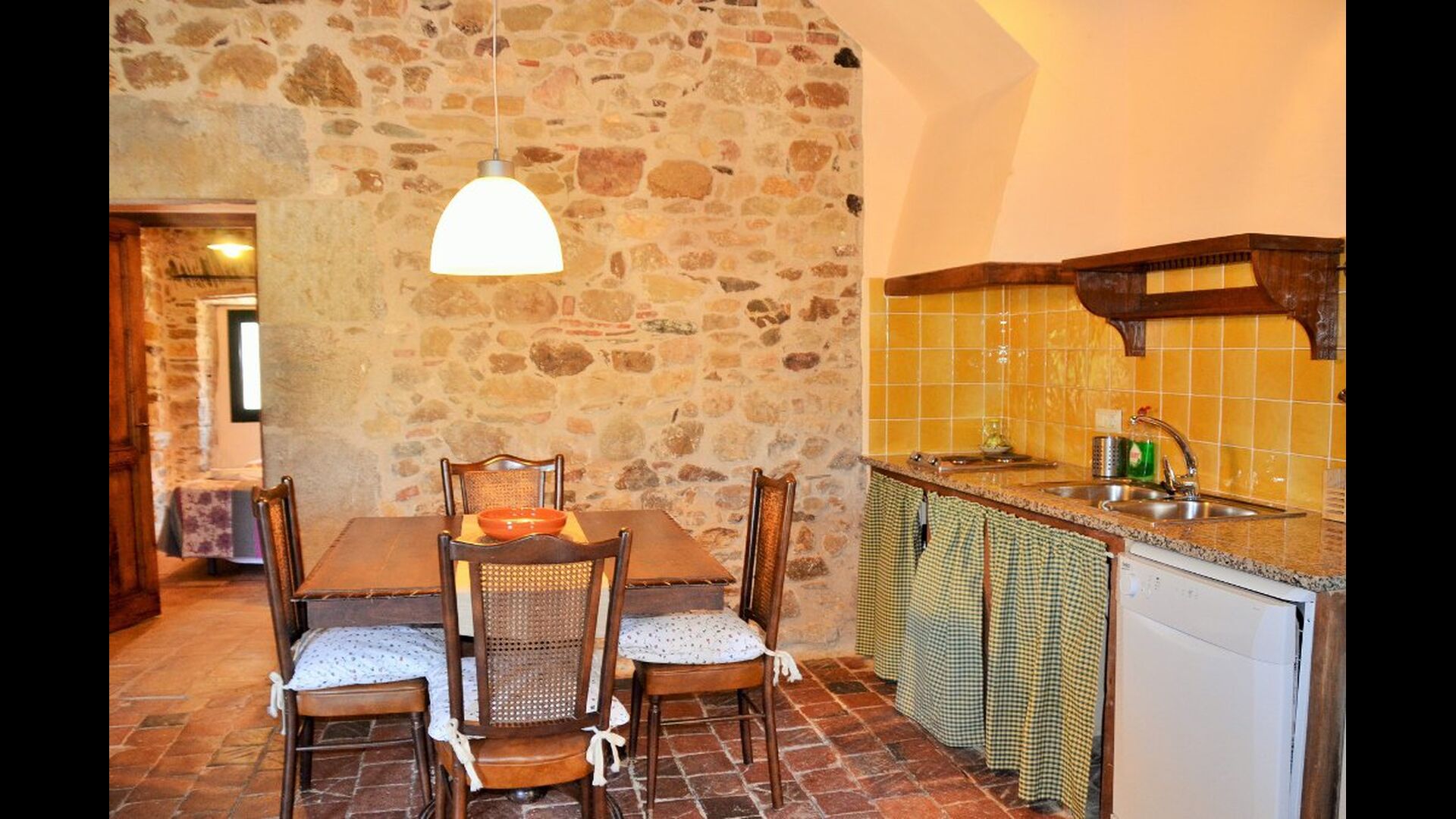 La maison a un très grand jardin avec une immense piscine, qui est sécurisée par une clôture et avec des chaises longues où vous pourrez vous détendre, seulement pour être interrompu par une baignade rafraîchissante. Le reste du jardin comprend plusieurs terrasses et des orangers et des citronniers apportent à la fois de l'ombre et une touche de l'atmosphère méditerranéenne. Dans le village à distance de marche, il y a quelques restaurants et une boutique avec un peu de tout. Tous les jours à midi, un fourgon à pain se rend sur la place afin que vous puissiez acheter du pain frais pour le déjeuner. Il y a de plus grands supermarchés à La Bisbal, réputée pour ses poteries. Cette ville est à seulement 5 km de la maison.