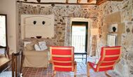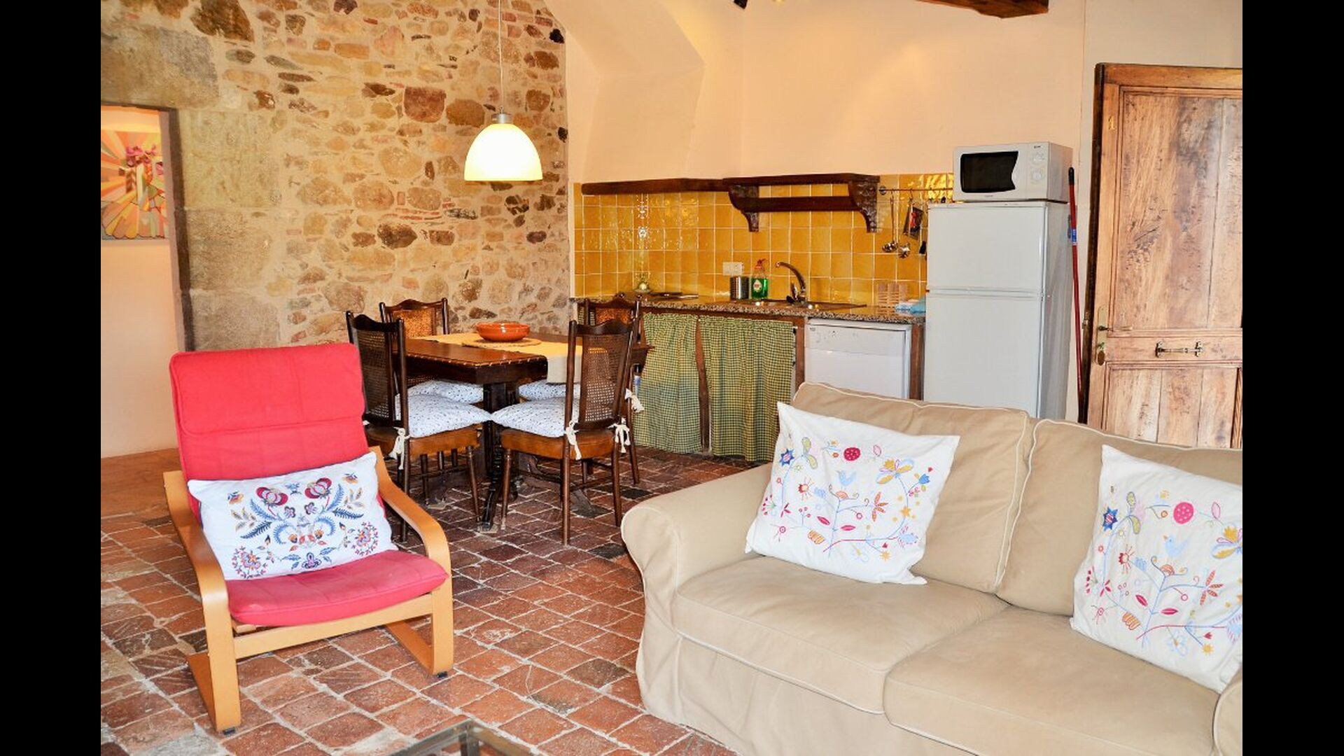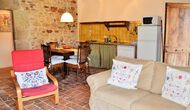Cet appartement, appelé "Alsin 1", est situé au premier étage. C'est dans sa conception très belle et rustique. Le salon dispose d'un beau sol en pierre authentique et d'un coin canapé avec une télévision à écran plat et de belles vues sur le jardin.