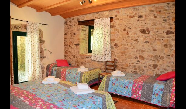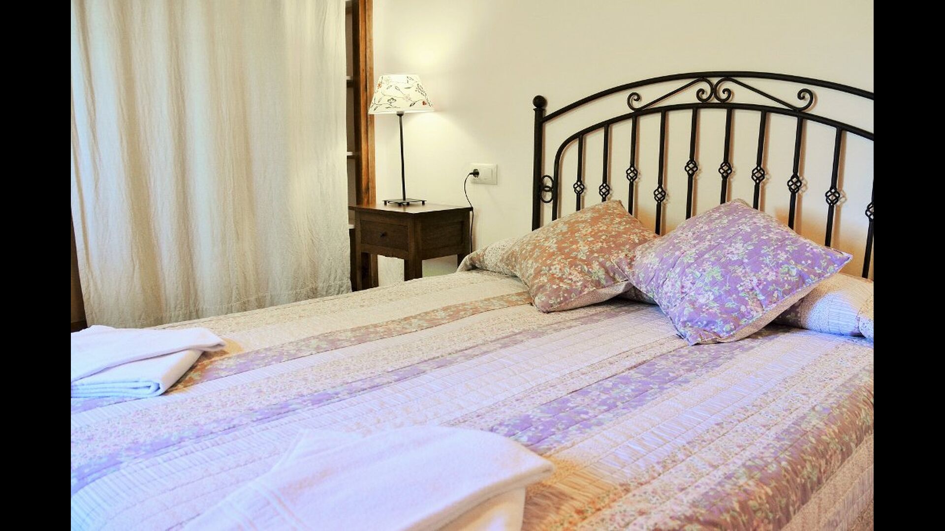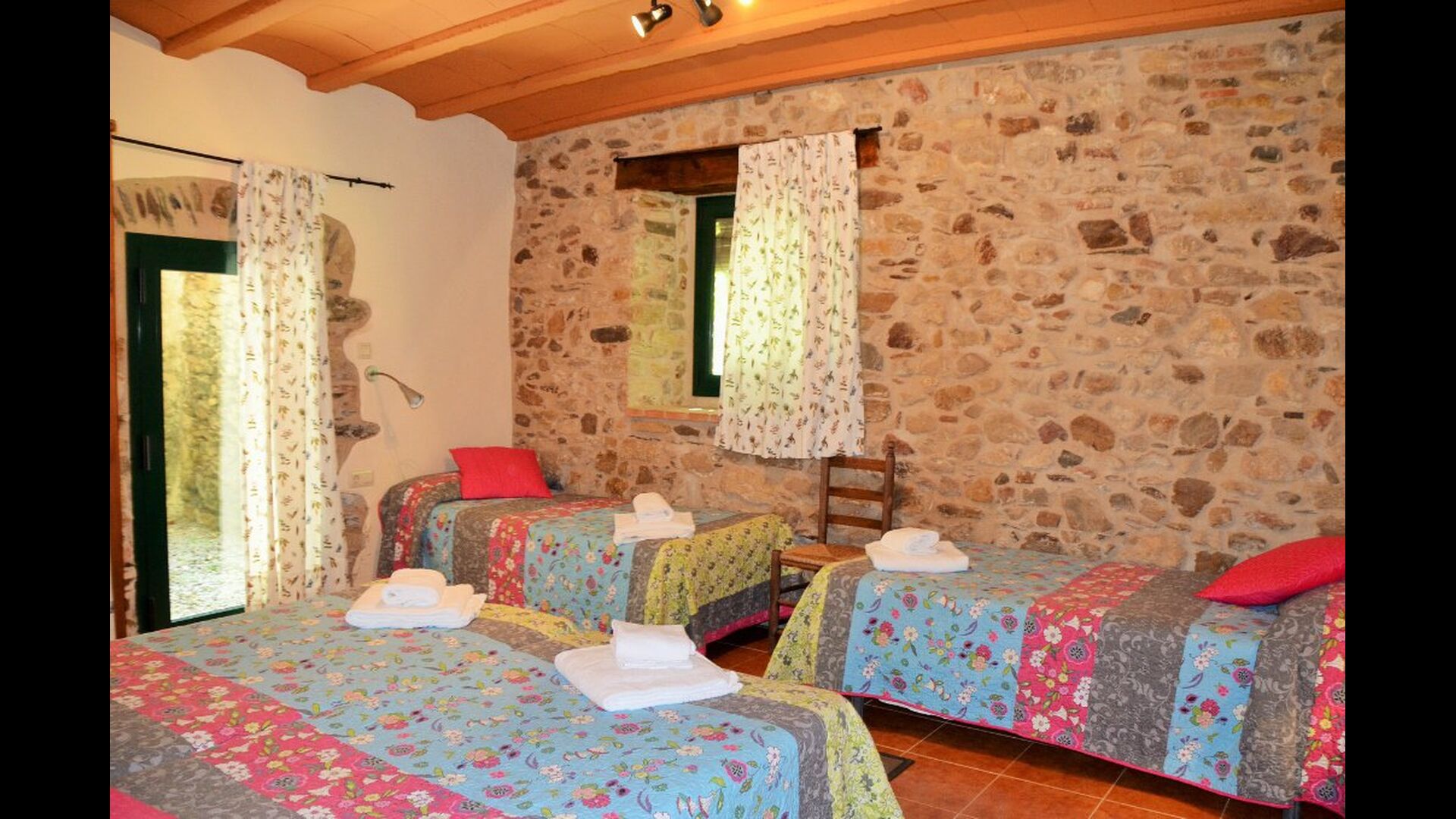 Cet appartement, Casa Puix Miguel - Olive 1, peut accueillir jusqu'à 6 personnes. Il y a une très grande chambre avec quatre lits simples. Il y a une salle de bain pour cette chambre. La deuxième chambre est une belle chambre double: il y a une salle de bain, si vous vous promenez dans le salon.