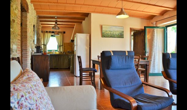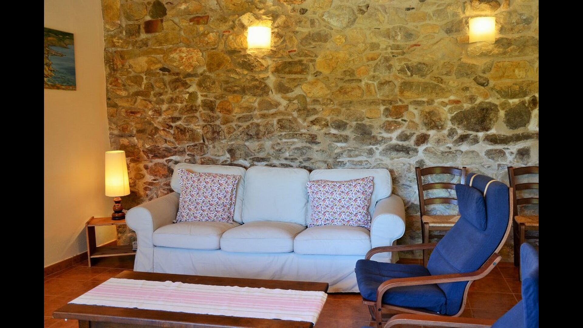 La maison a un grand jardin avec une grande piscine, qui est sécurisée par une clôture et des chaises longues où vous pourrez vous détendre, seulement pour être interrompu par une baignade rafraîchissante. Le reste du jardin a plusieurs zones de patio et d'orangers et de citronniers qui fournissent de l'ombre et une touche d'ambiance méditerranéenne. En ville, à distance de marche, il y a quelques restaurants et une boutique avec une partie de tout. Tous les jours à midi, un fourgon à pain arrive sur place, vous pouvez donc acheter du pain frais pour le déjeuner. Il y a de plus grands supermarchés à La Bisbal, célèbre pour ses céramiques. Cette ville est à seulement 5 km de la maison.