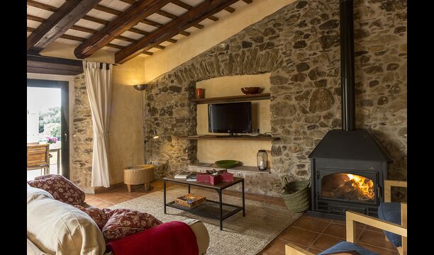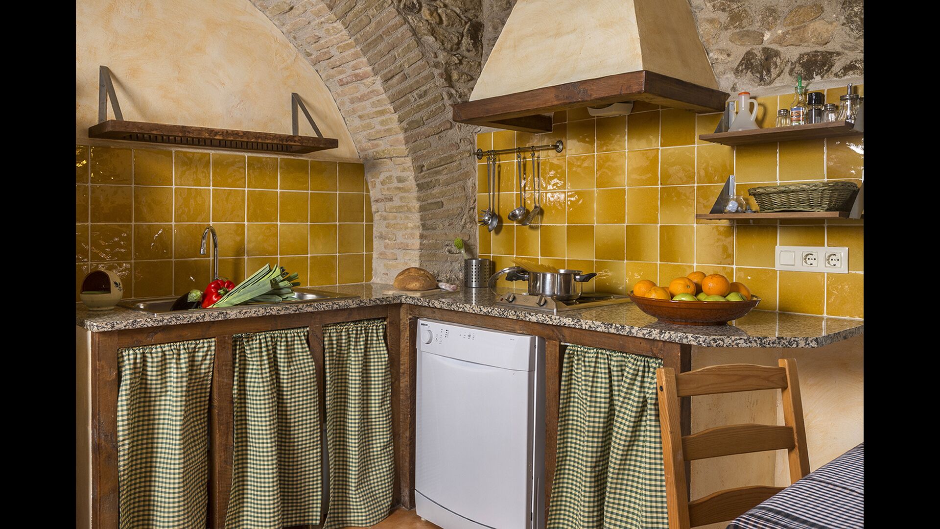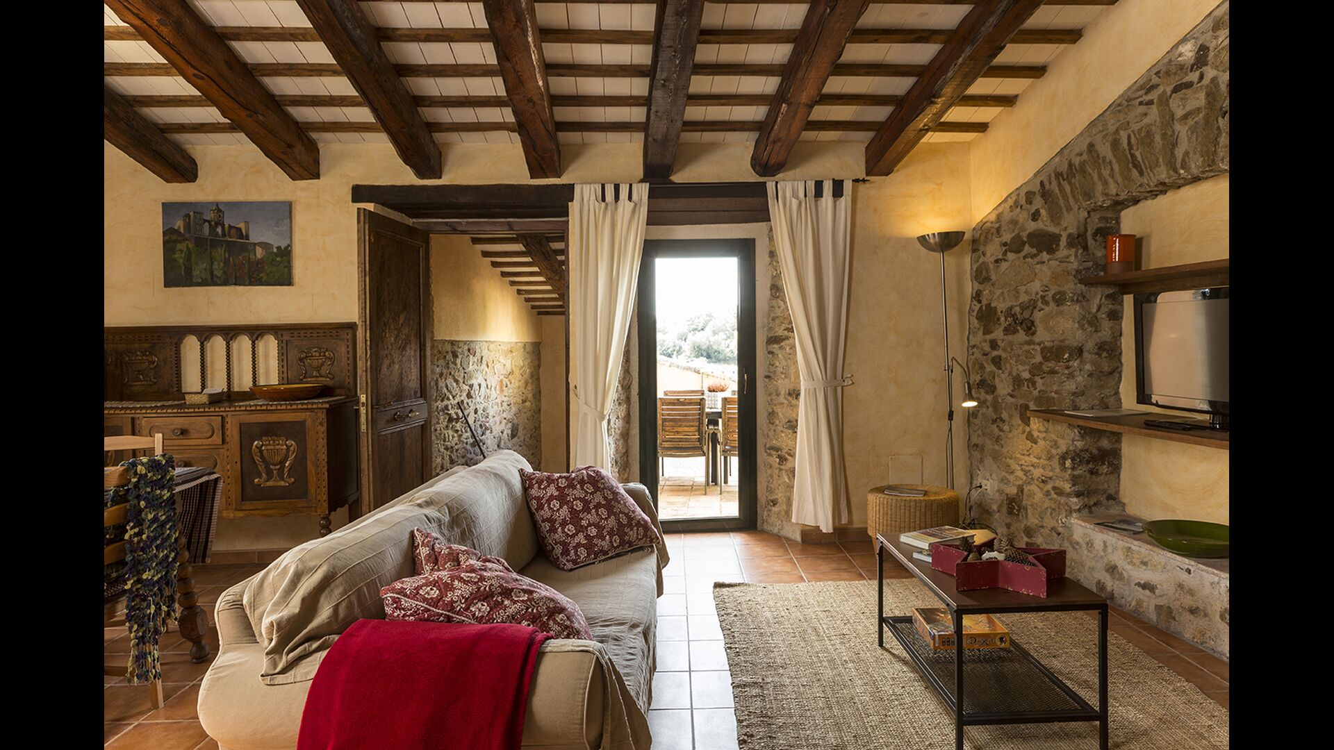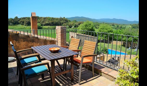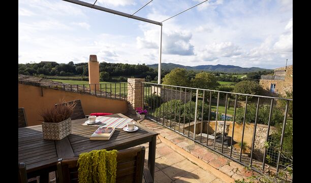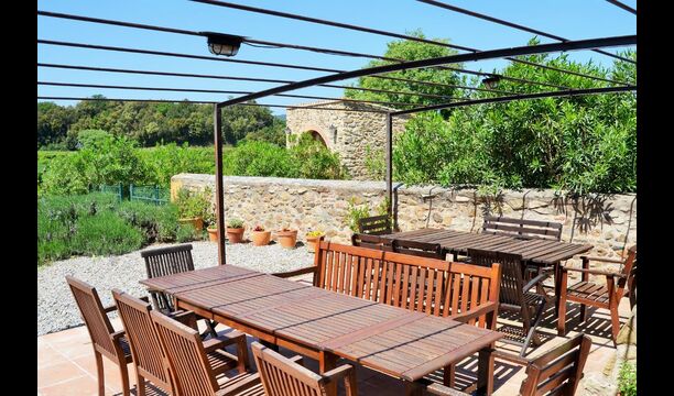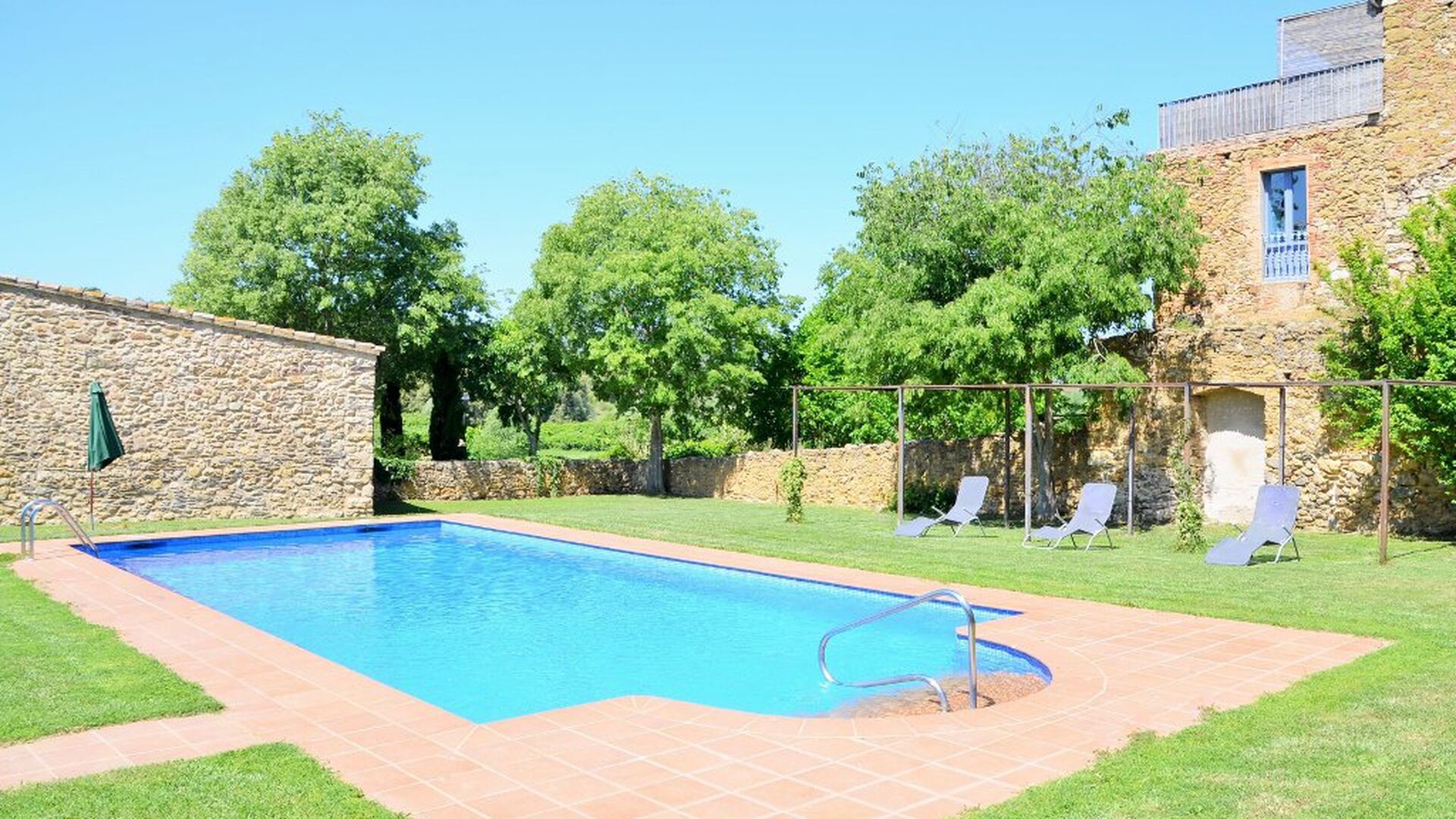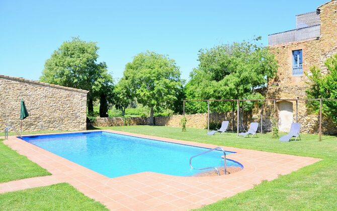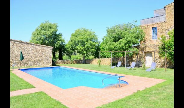 La maison a un très grand jardin avec une immense piscine, qui est sécurisée par une clôture et avec des chaises longues afin que vous puissiez vous détendre, seulement pour être interrompu par une baignade rafraîchissante. Dans le reste du jardin, il y a plusieurs terrasses et des orangers et des citronniers procurent à la fois de l'ombre et une touche de l'atmosphère méditerranéenne. Dans le village à distance de marche, il y a quelques restaurants et une boutique avec un peu de tout. Tous les jours à midi, un fourgon à pain se rend sur la place afin que vous puissiez acheter du pain frais pour le déjeuner. Il y a de plus grands supermarchés à La Bisbal, réputée pour ses poteries. Cette ville est à seulement 5 km de la maison.