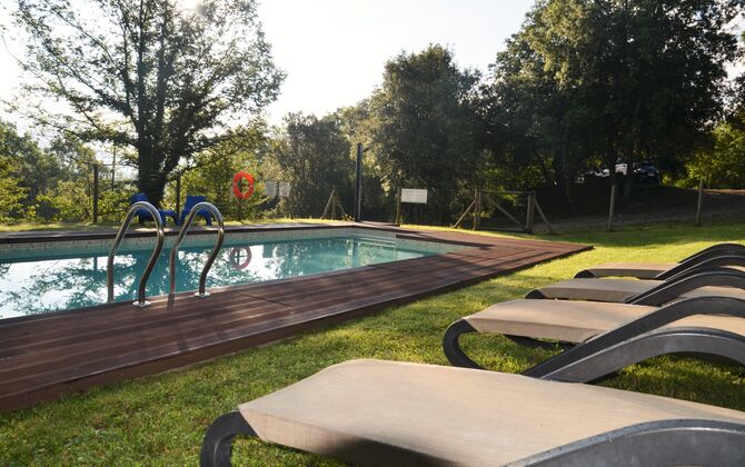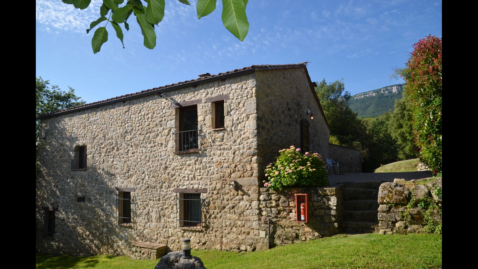 La maison de vacances est l'une des deux maisons de vacances de la propriété. Can Bosquita - Le Mirador est le plus petit des deux bâtiments qui composent Can Bosquita. Les deux bâtiments sont situés sur la propriété en pente, qui s'étend sur plus de 4 000 m2, où vous pourrez vous déplacer librement. First Can Bosquita - Epicéa et juste en face, séparés par une terrasse, Can Bosquita - Mirador. Les deux maisons ont leur propre terrasse privée, barbecue et espaces extérieurs, isolés de l'autre maison de vacances. La piscine commune se trouve un niveau au-dessous des deux maisons de vacances et est clôturée afin que les petits enfants ne puissent pas accéder seuls à la piscine. Des deux maisons, vous avez une vue fantastique sur la vallée en contrebas, où la rivière Brugent descend vers Gérone et au-dessus de la maison s'élève le magnifique massif des Guilleries.