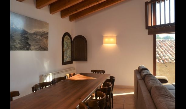 De plus, il y a une cuisine bien équipée au rez-de-chaussée, une salle de bains et un salon avec vue panoramique avec télévision à écran plat et vue sur Pedraforca. En montant à l'étage supérieur, vous trouverez, outre les chambres, une salle de bain avec baignoire ainsi qu'une terrasse confortable offrant une vue magnifique et un coin salon où vous pourrez vous détendre le soir en regardant le charmant catalan. le coucher du soleil. La maison est décorée dans un style catalan traditionnel, ce qui vous permet d'explorer encore plus la culture catalane.