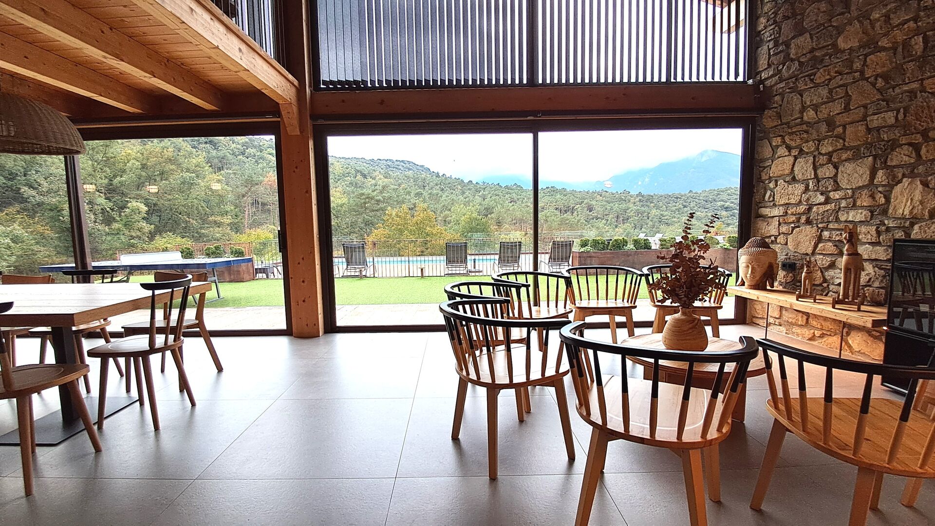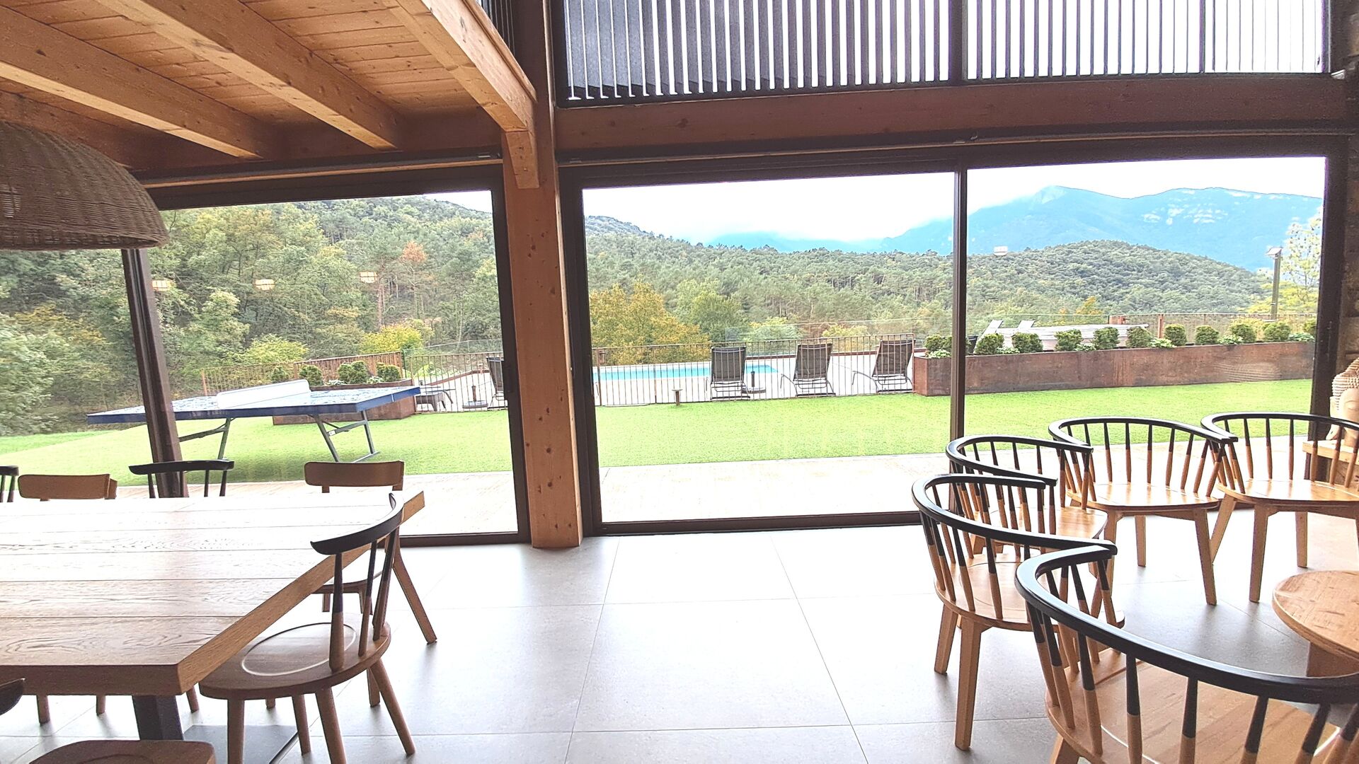 À l'étage, une jolie mezzanine avec des jeux ravira les plus petits. À l'extérieur, la masia s'ouvre sur un vaste espace naturel, conçu pour mettre en valeur la beauté de la région. La piscine privée et le grand jardin offrent une vue imprenable sur les montagnes, tandis que l'espace barbecue et les terrasses ensoleillées vous invitent à savourer pleinement l'air pur de la montagne.